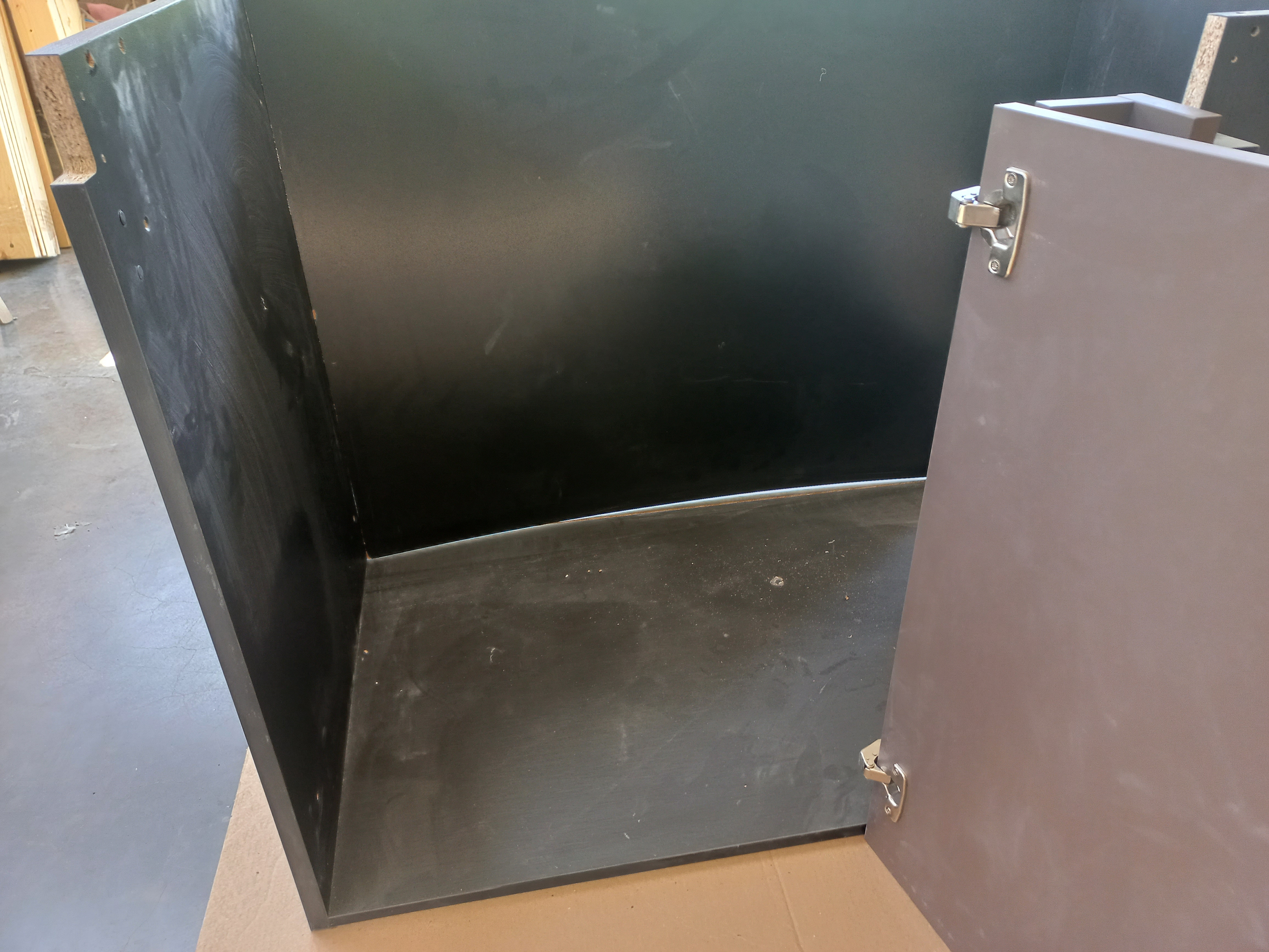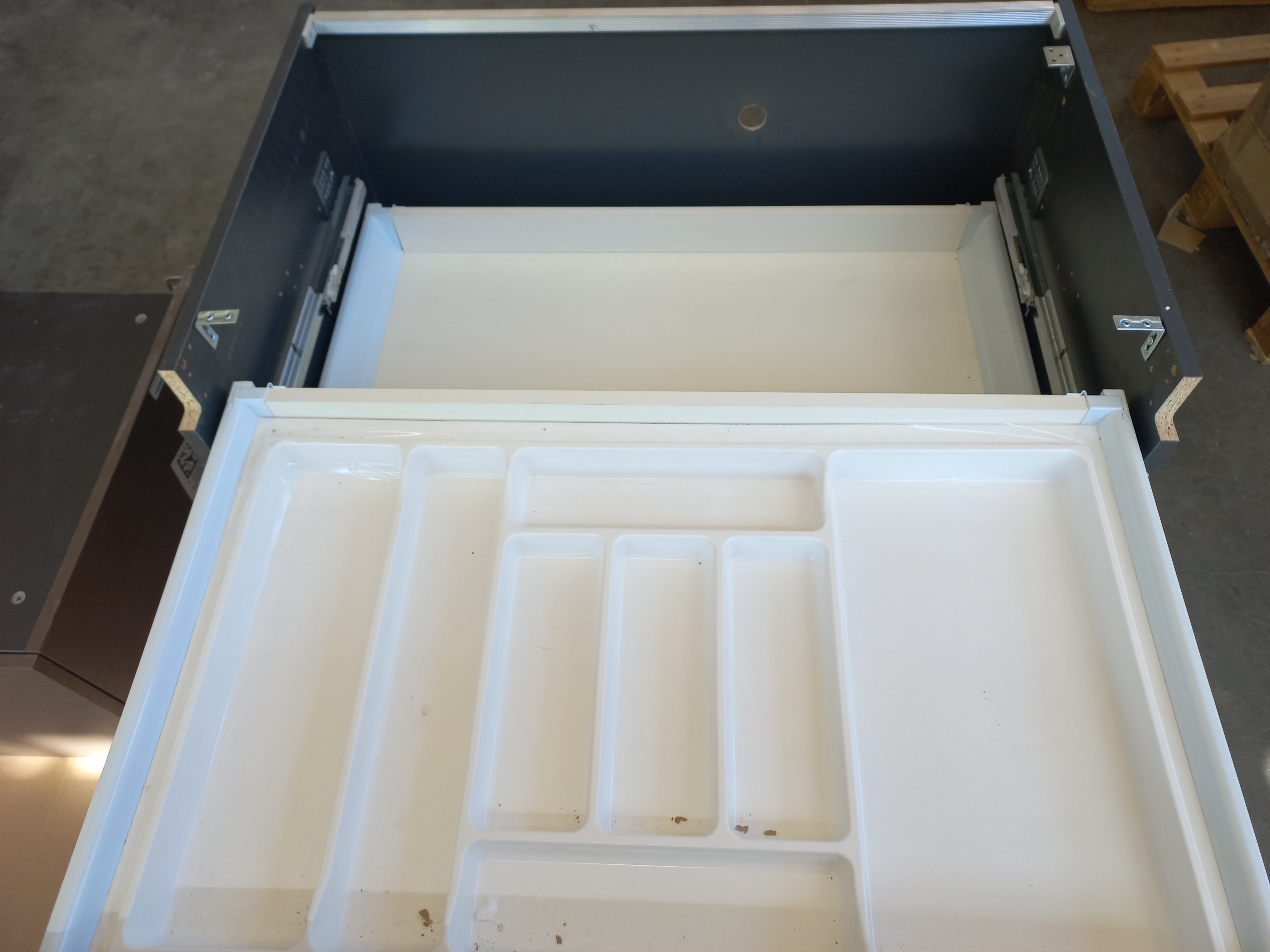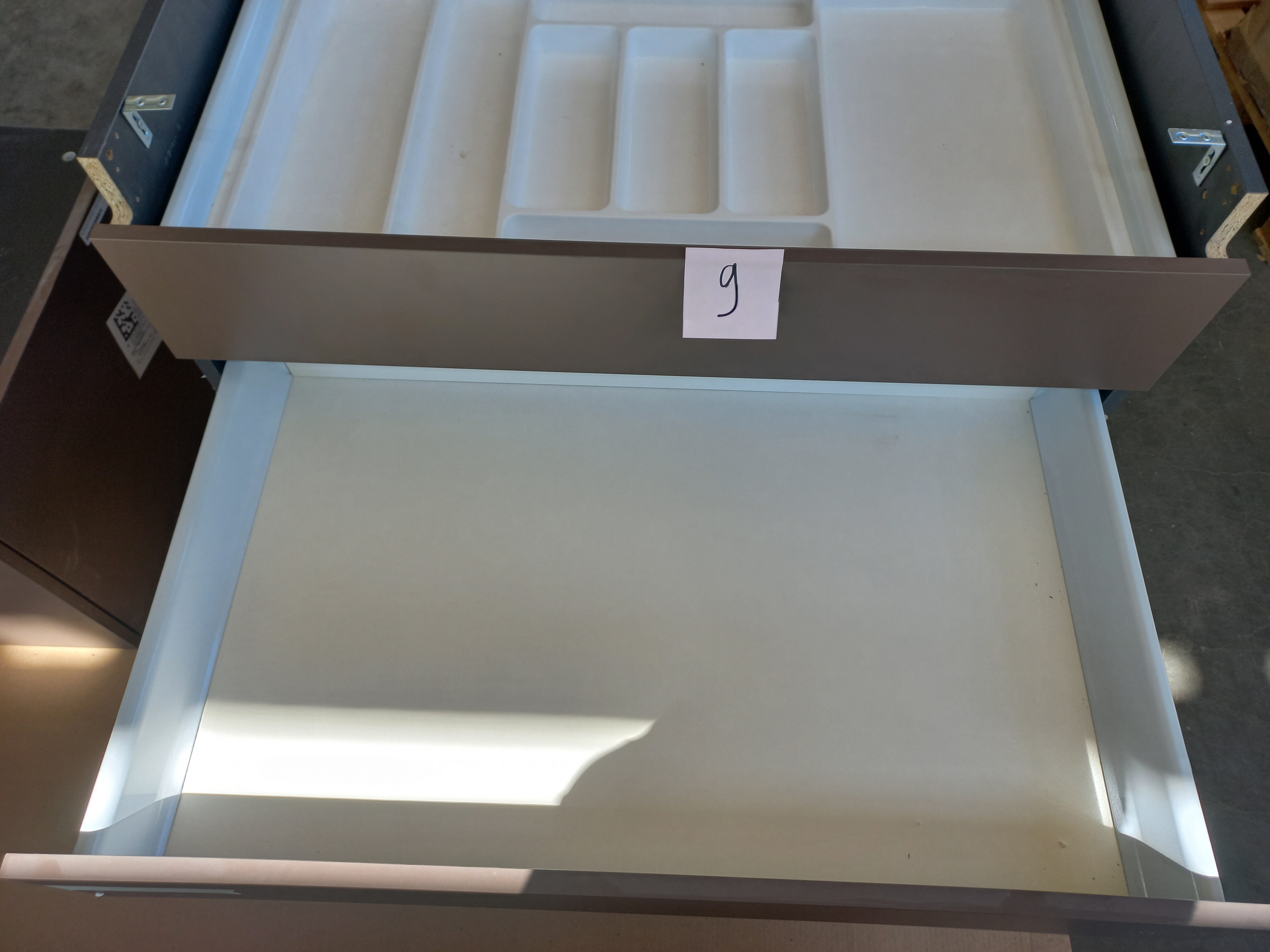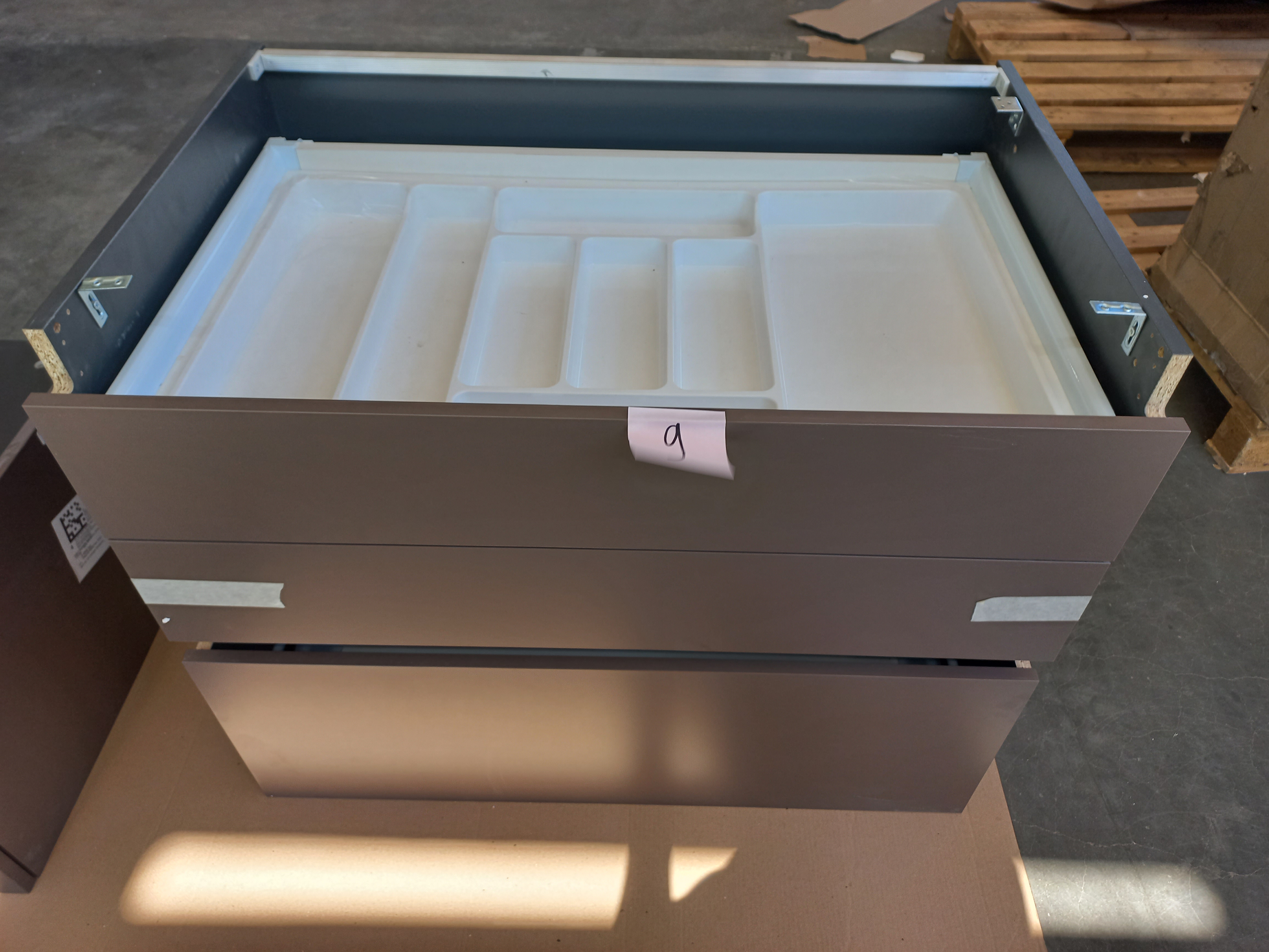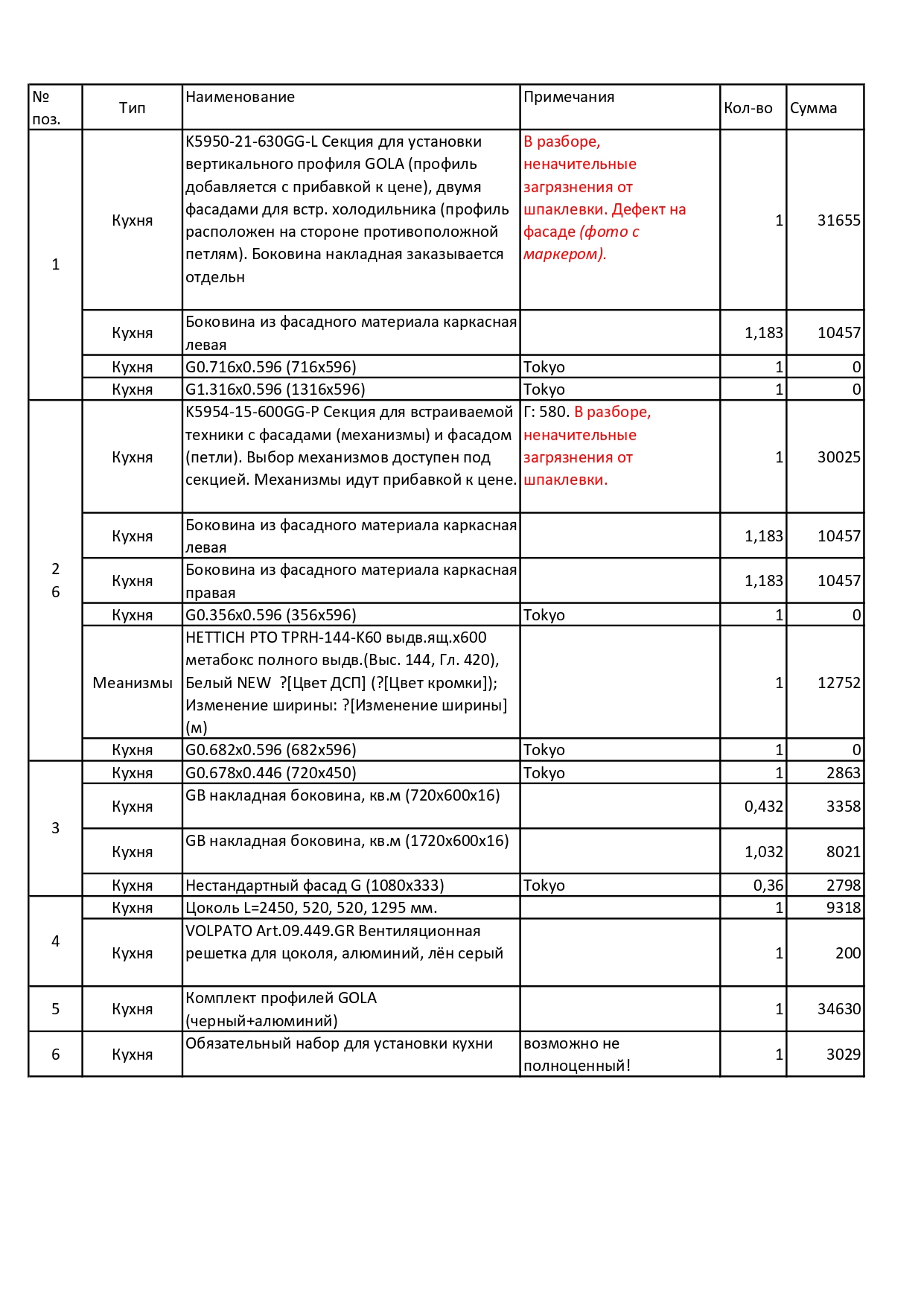 Внешний вид, описание дефектов: Кухонный гарнитур устанавливался! Имеются установочные отверстия. Загрязнения в виде шпаклевки. Дефект на фасаде (фото с маркером) на секции №1. Во всех остальных позициях незначительные царапины. Все секции модульные, возможно изменение конфигурации в рамках данных комплектующих.