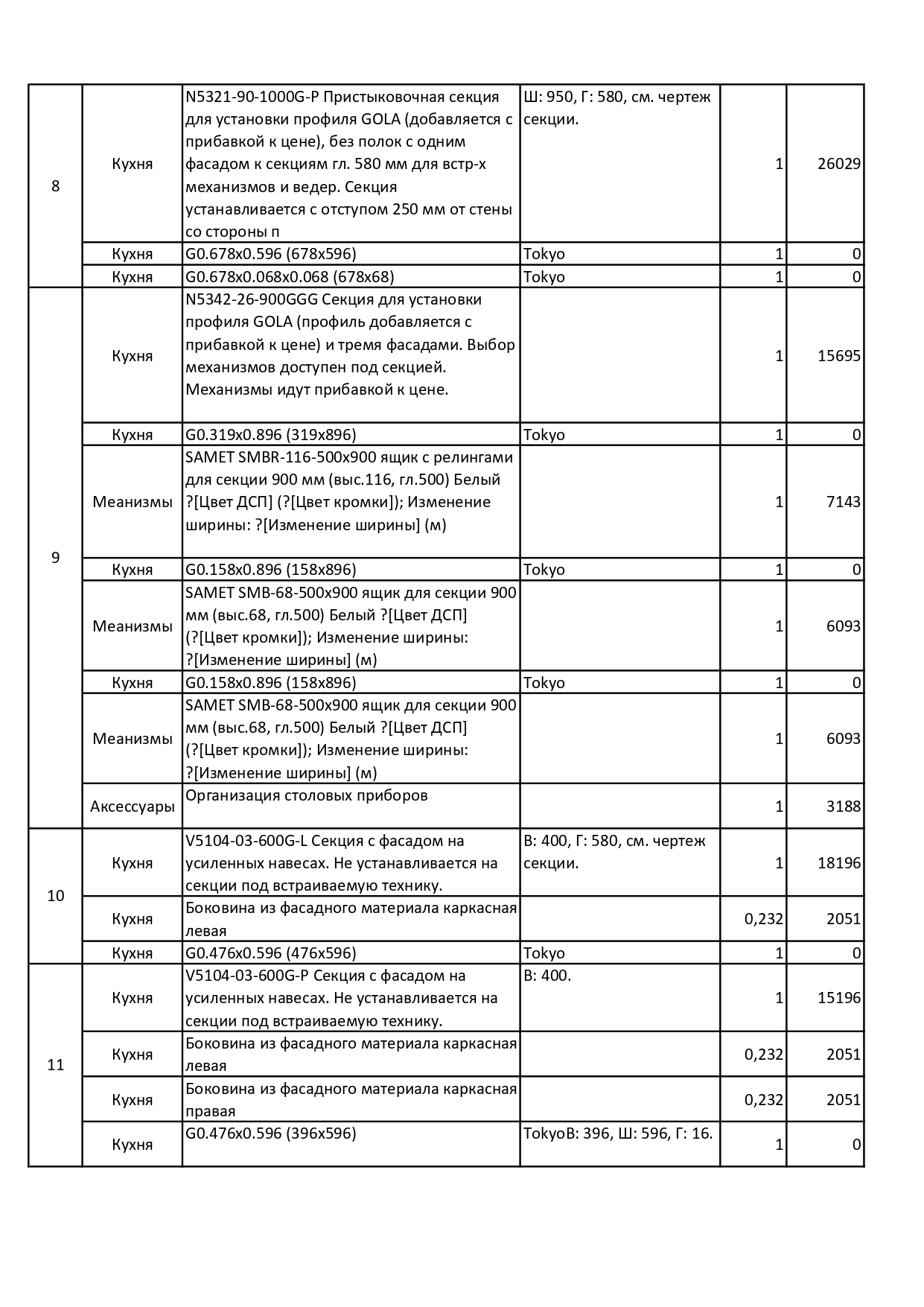 Подробный перечень комплектующих данной кухни - в спецификации/характеристиках товара.