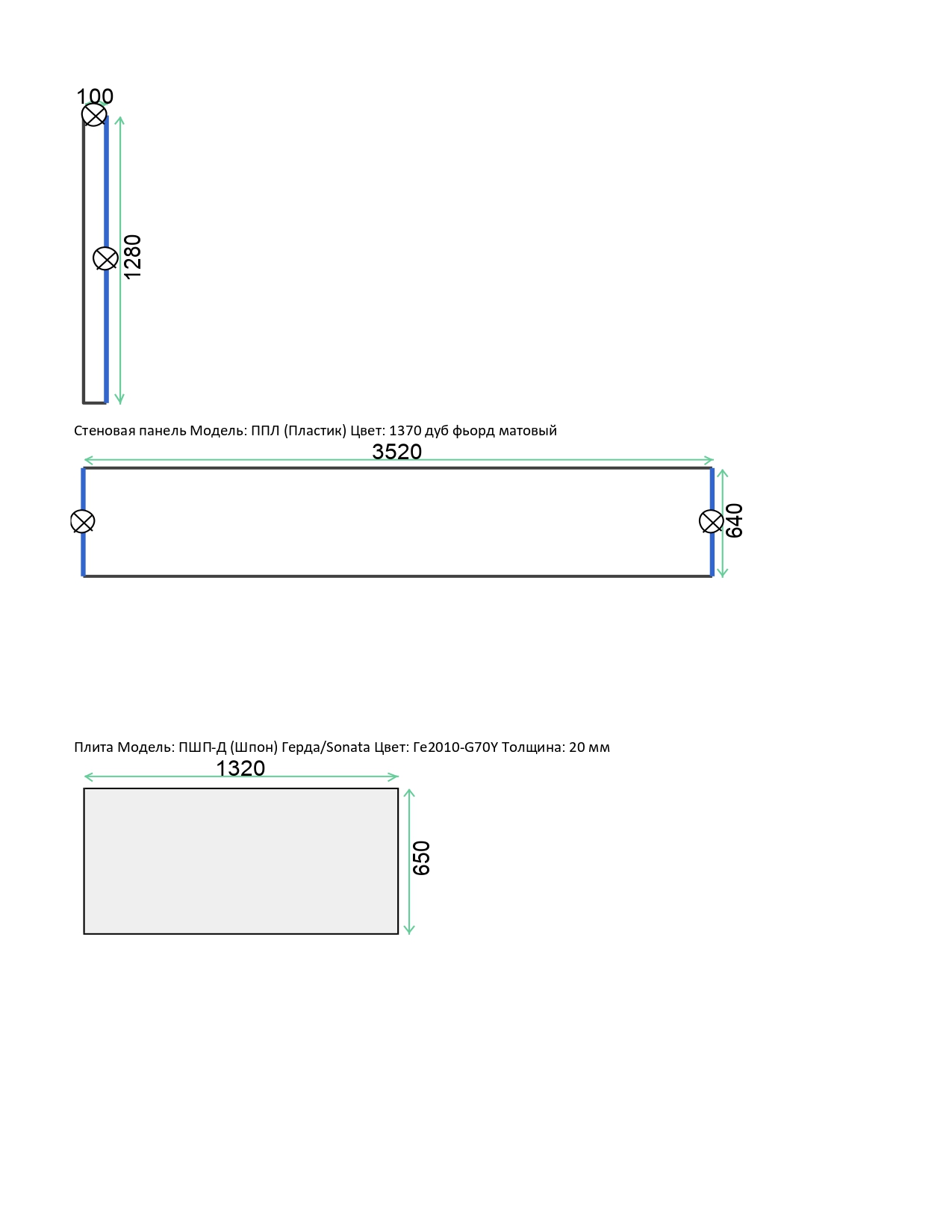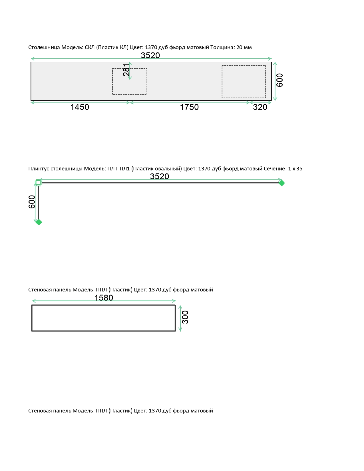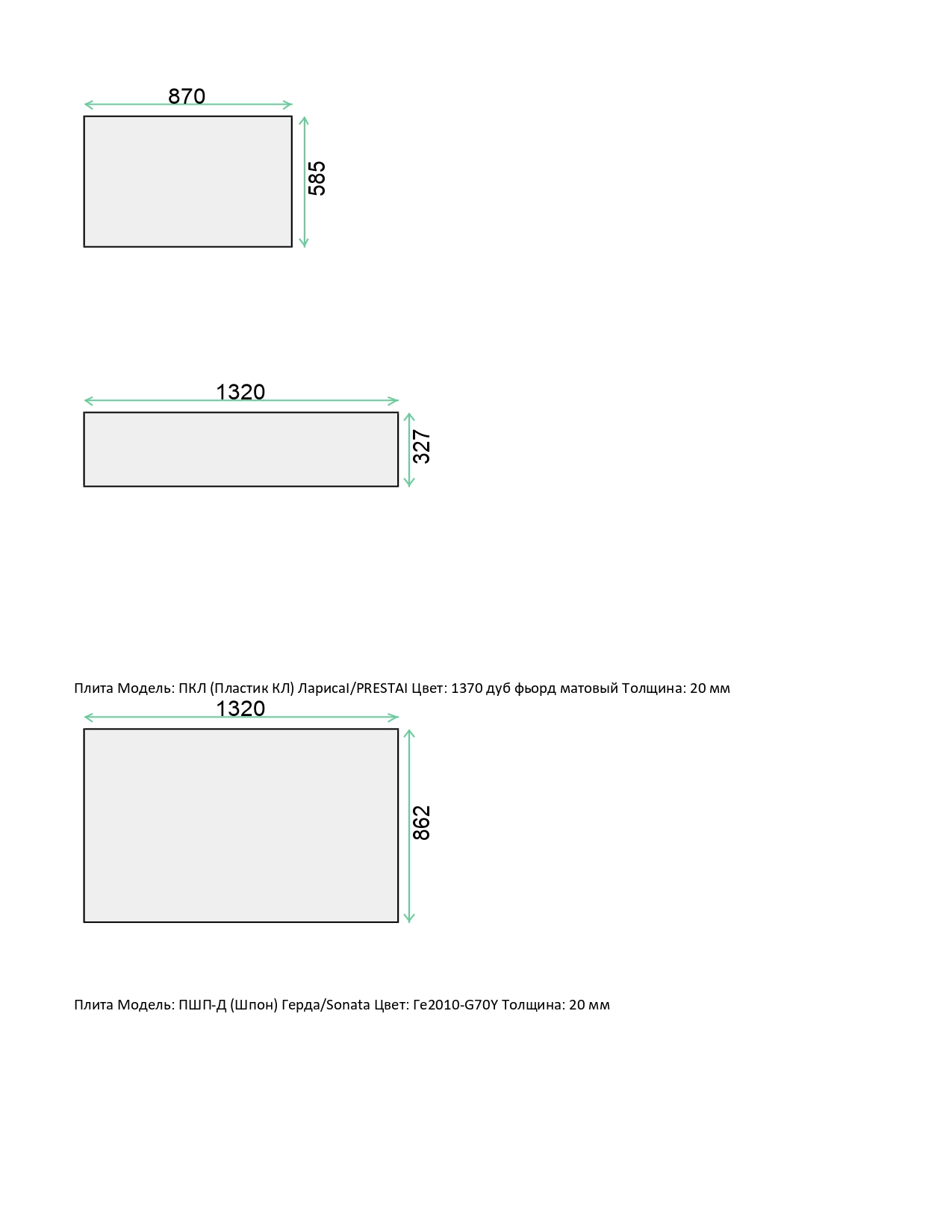Цвет столешницы: ДСП 1370 дуб фьорд матовый, толщиной 20мм