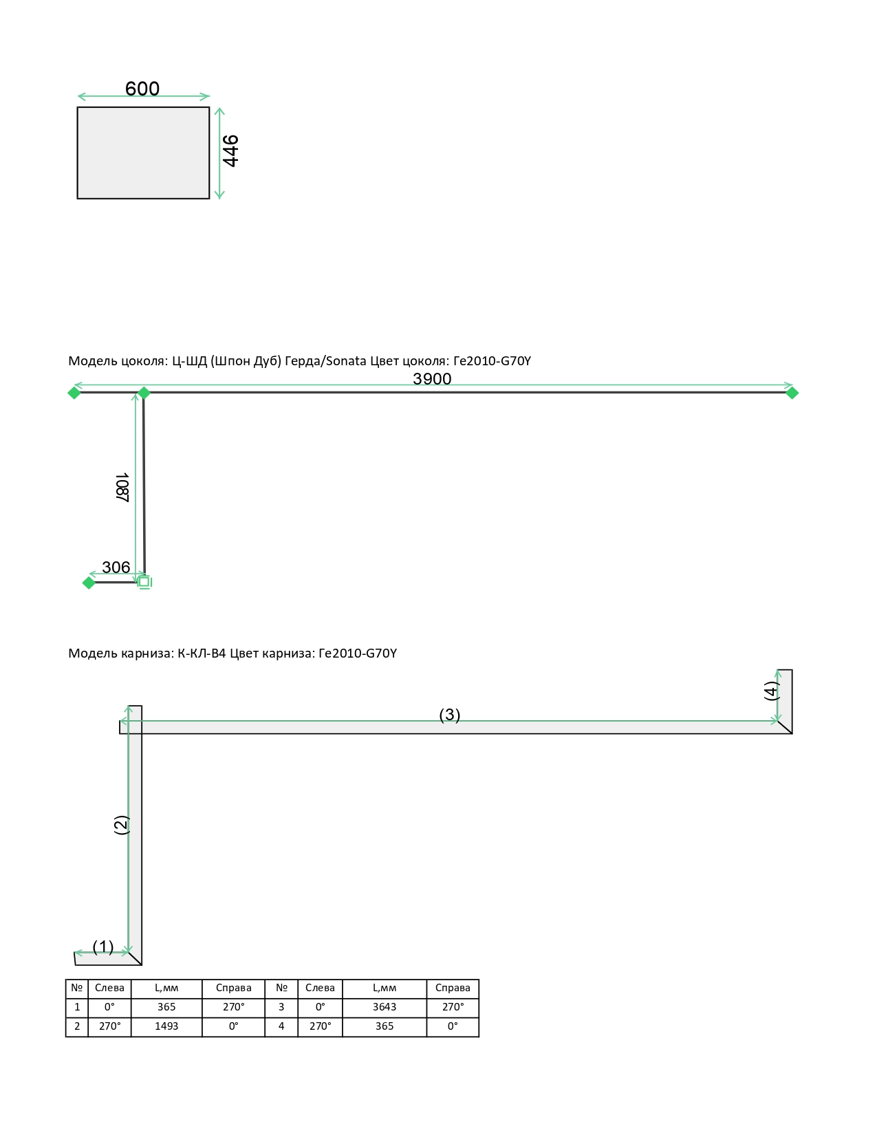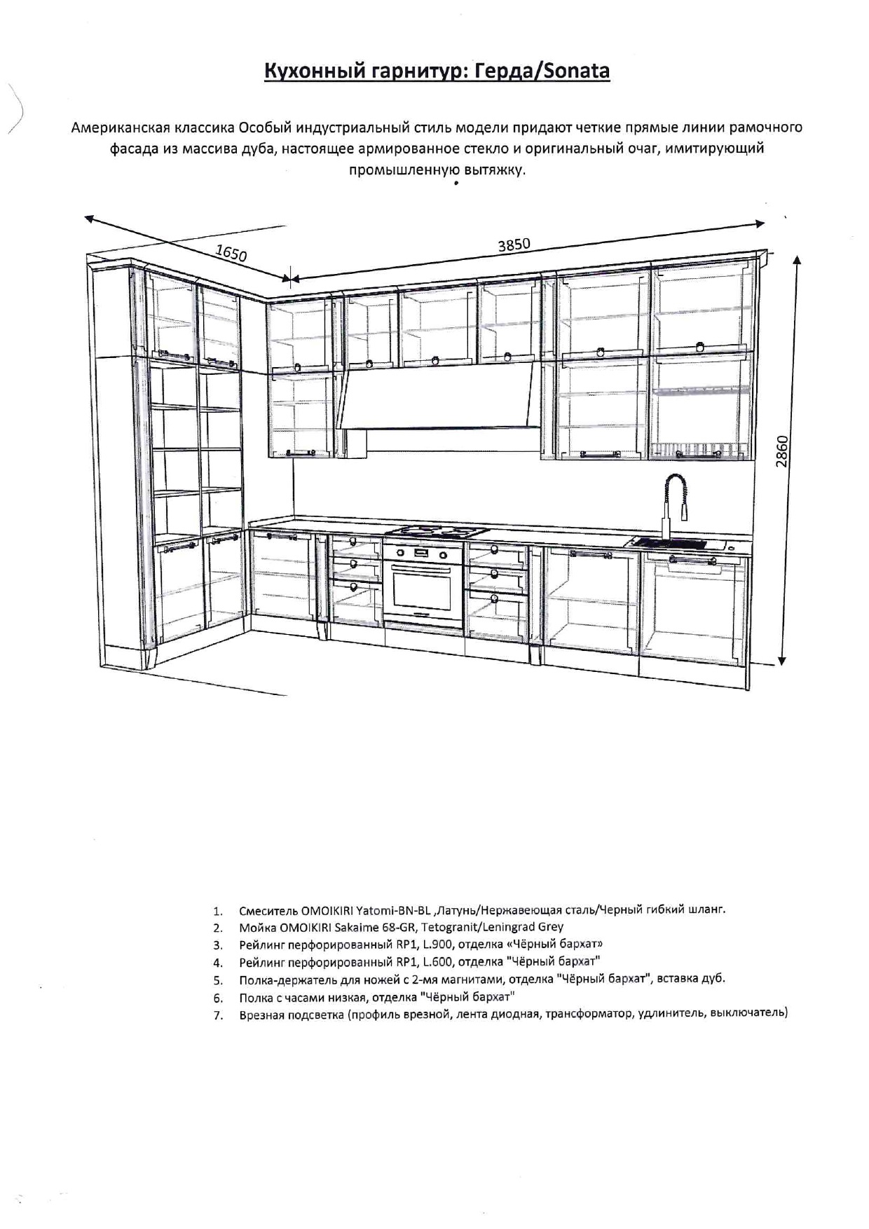 Размер Кухни слева направо: (В/Ш/Г) 1650*3850/2860/600