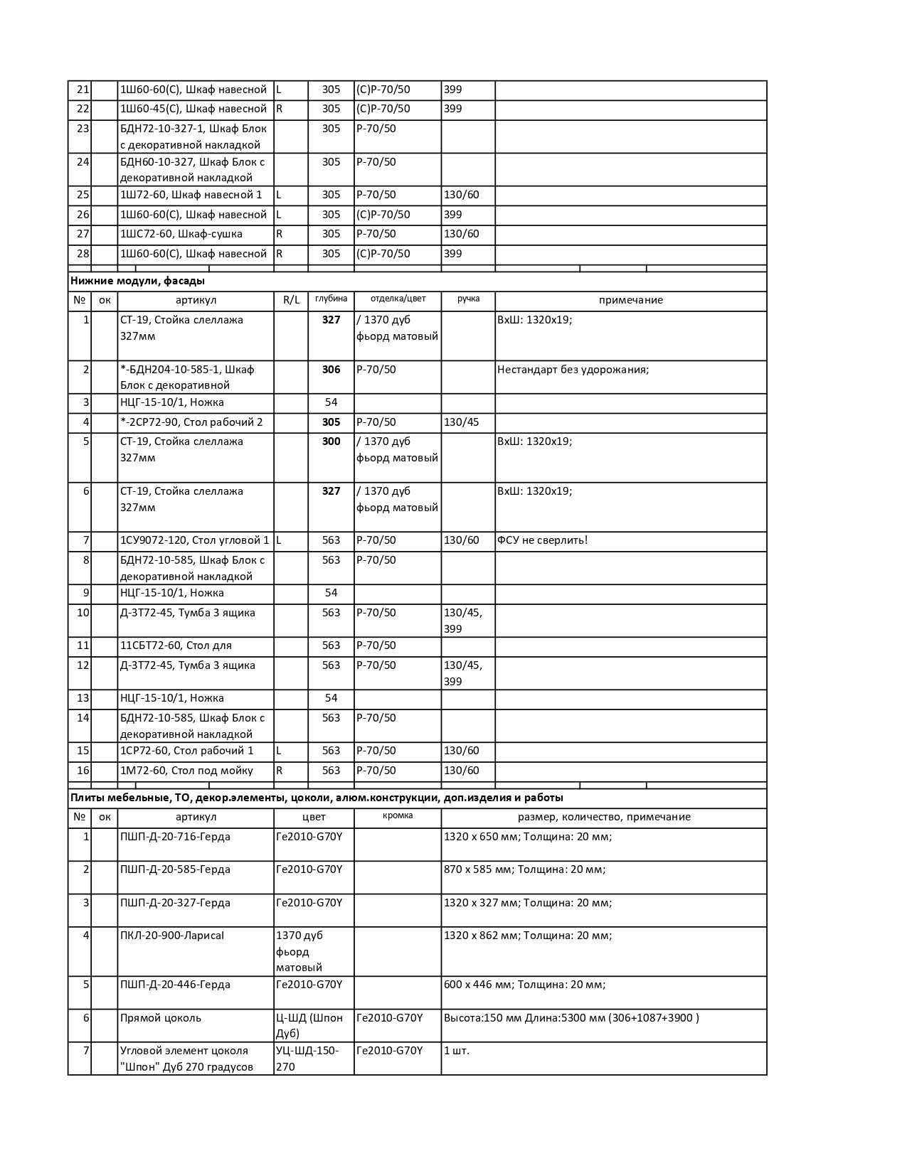 - (18 шт.) секции с фасадами (петли в комплекте) + накладные боковины