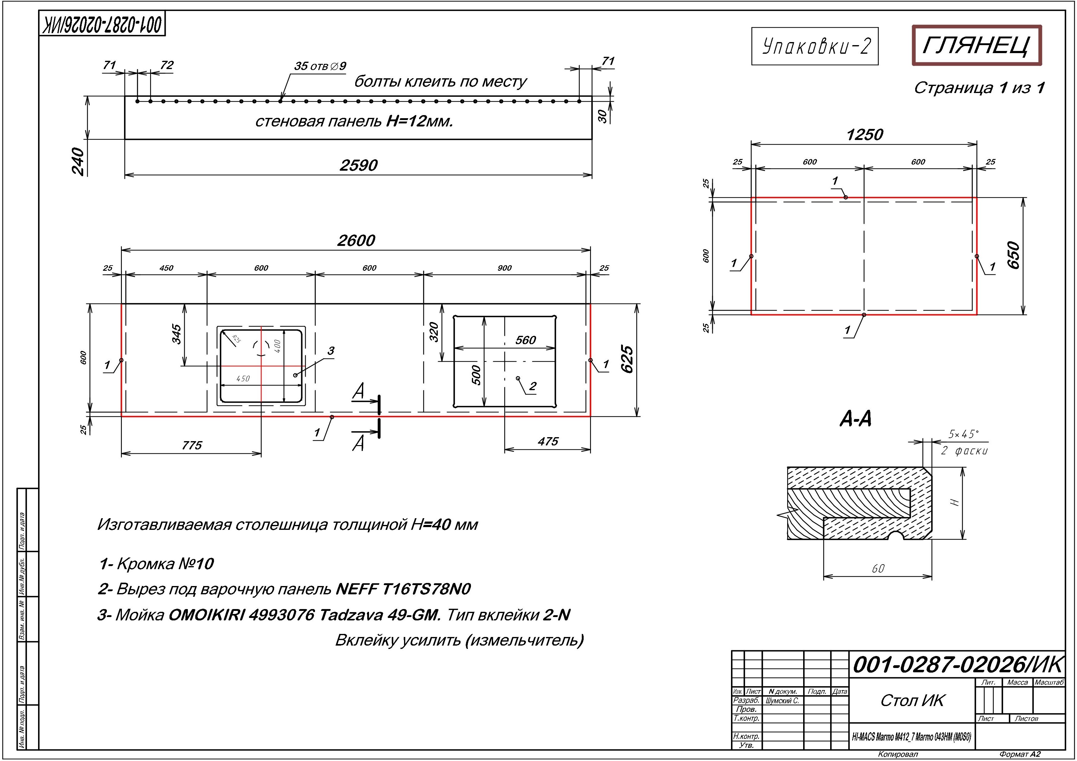 При покупке данного КГ, необходимо будет оформить платный дозаказ комплекта для склейки столешницы из искусственного камня, через менеджера студии Мария (который свяжется с вами сразу после приобретения КГ).