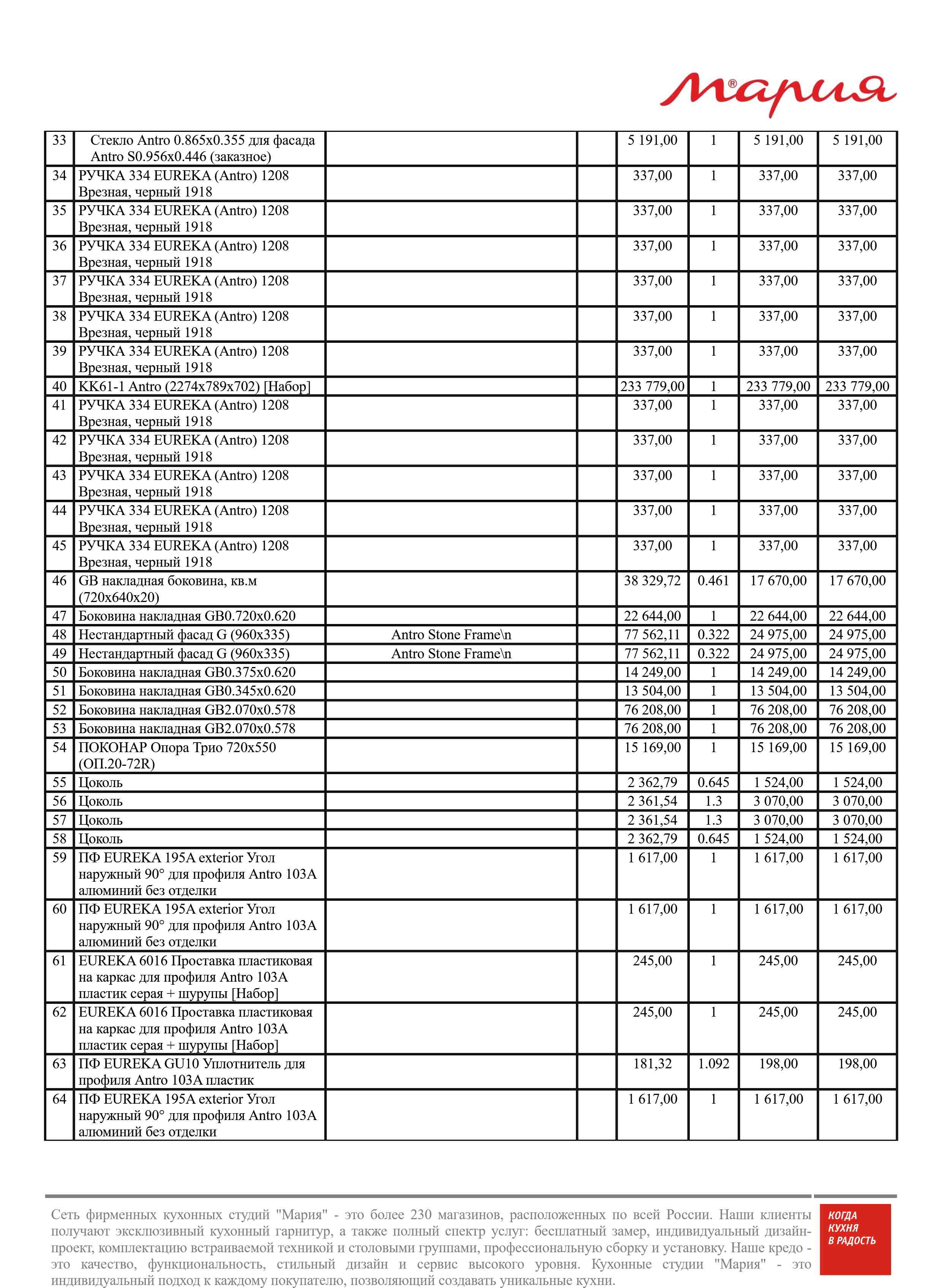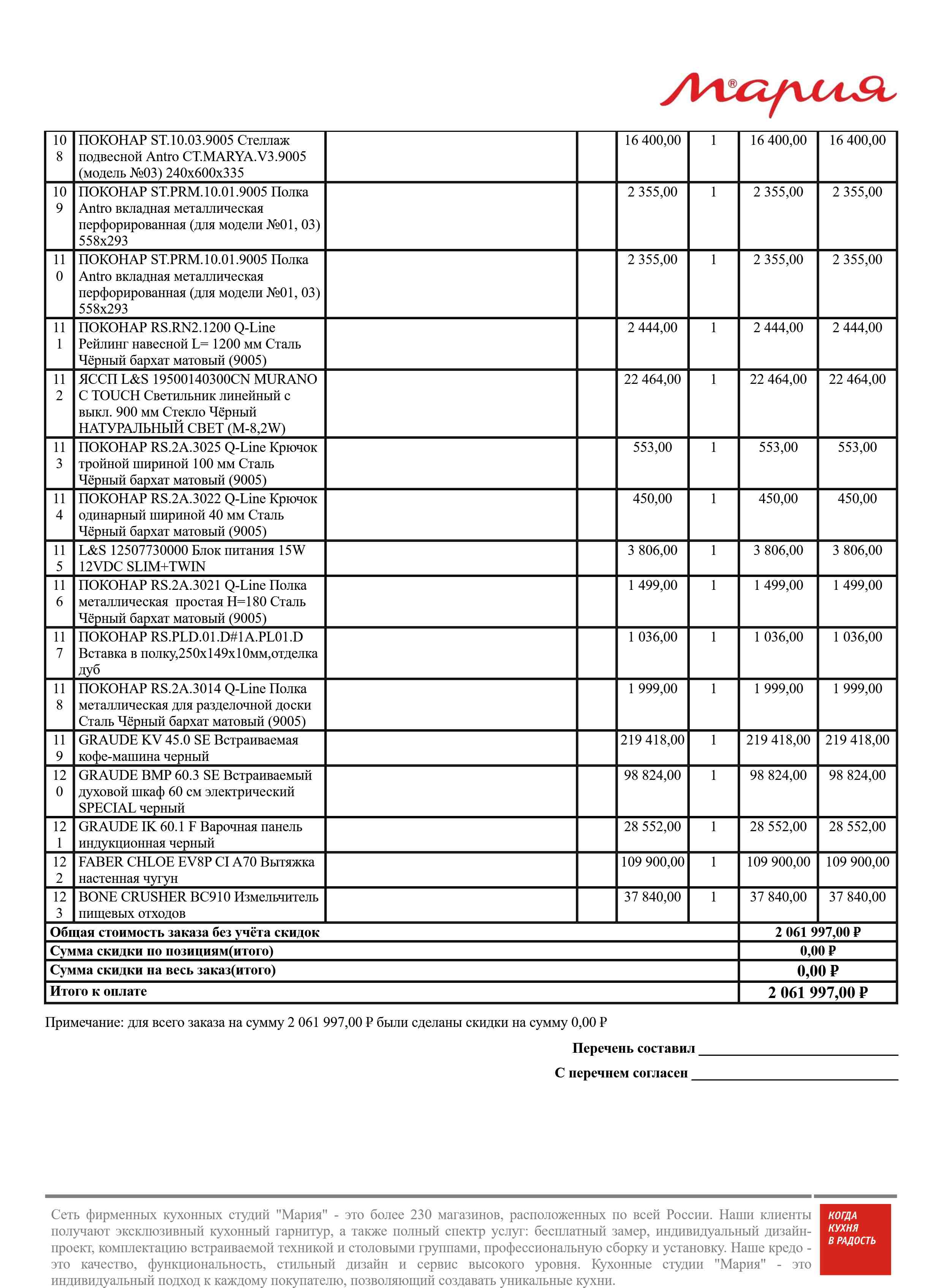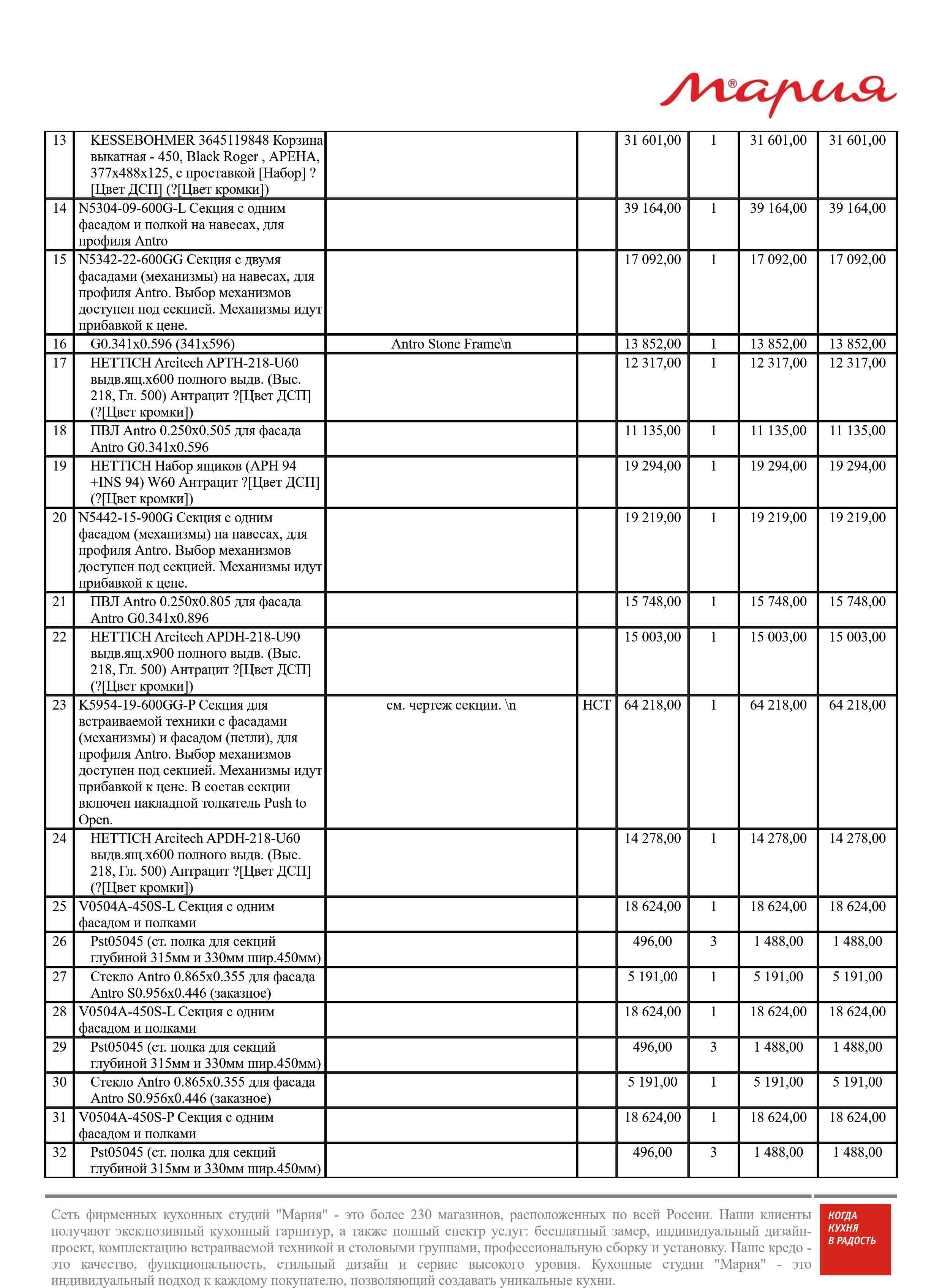 Стоимость данной кухни складывается из: