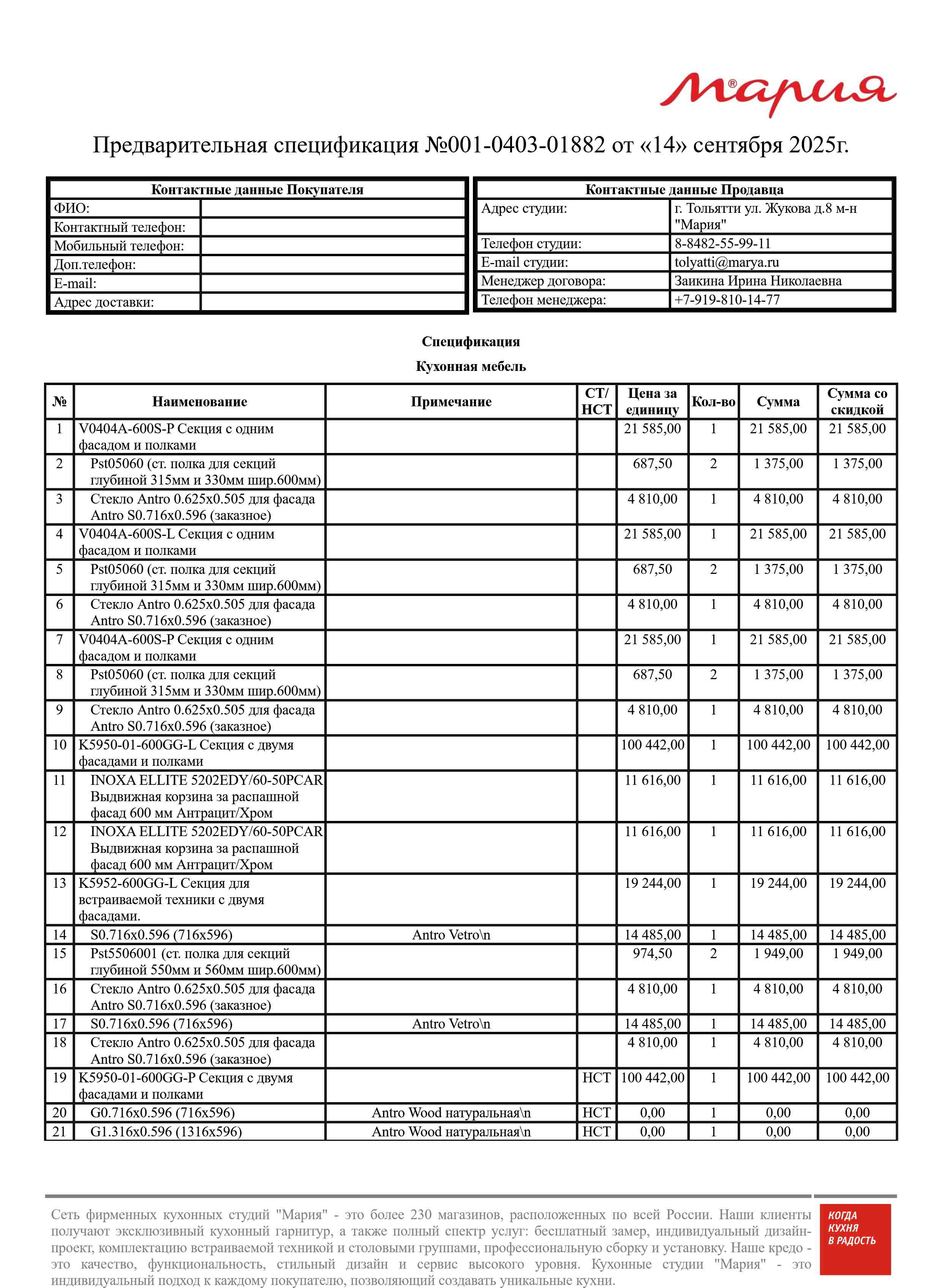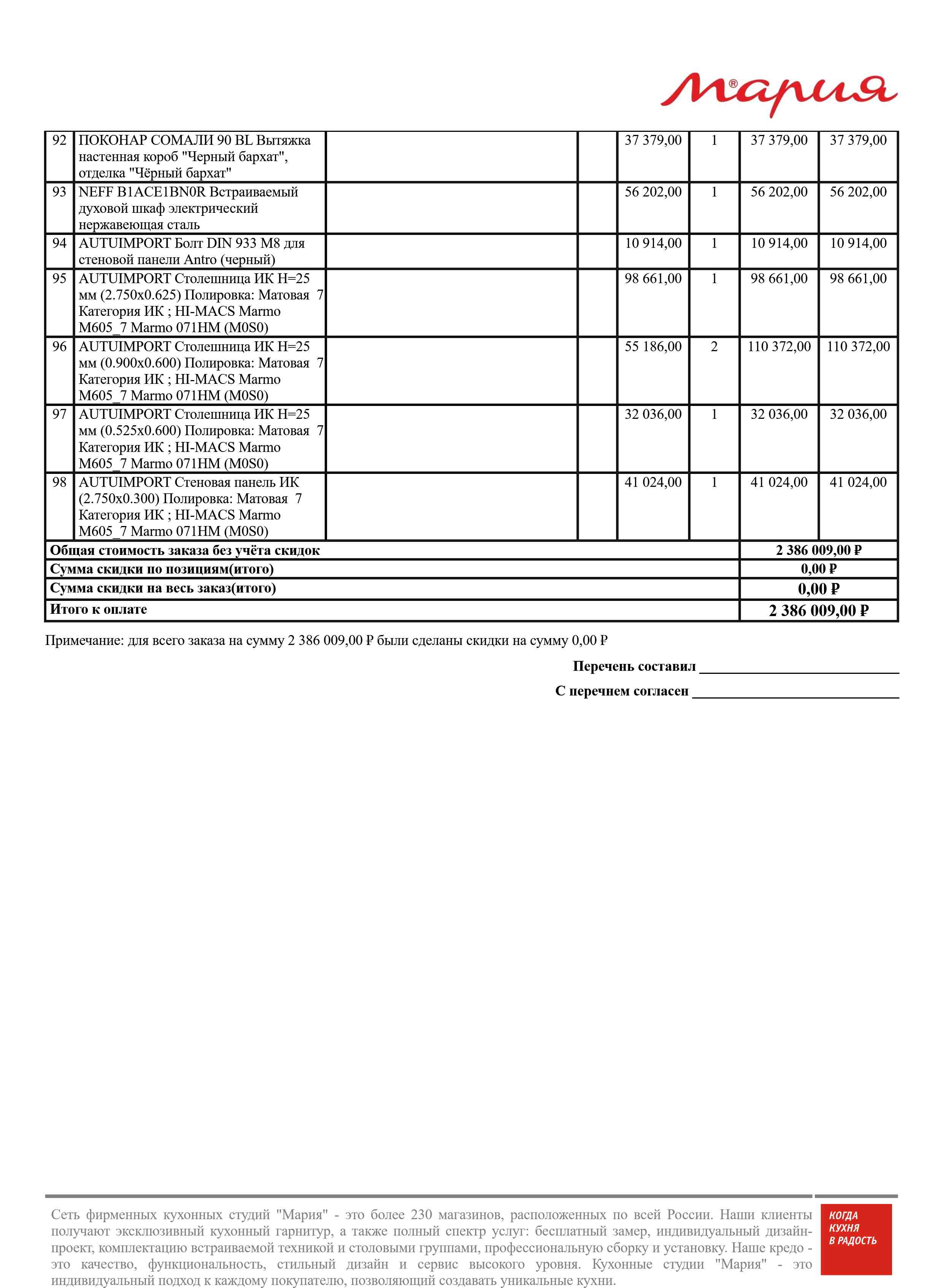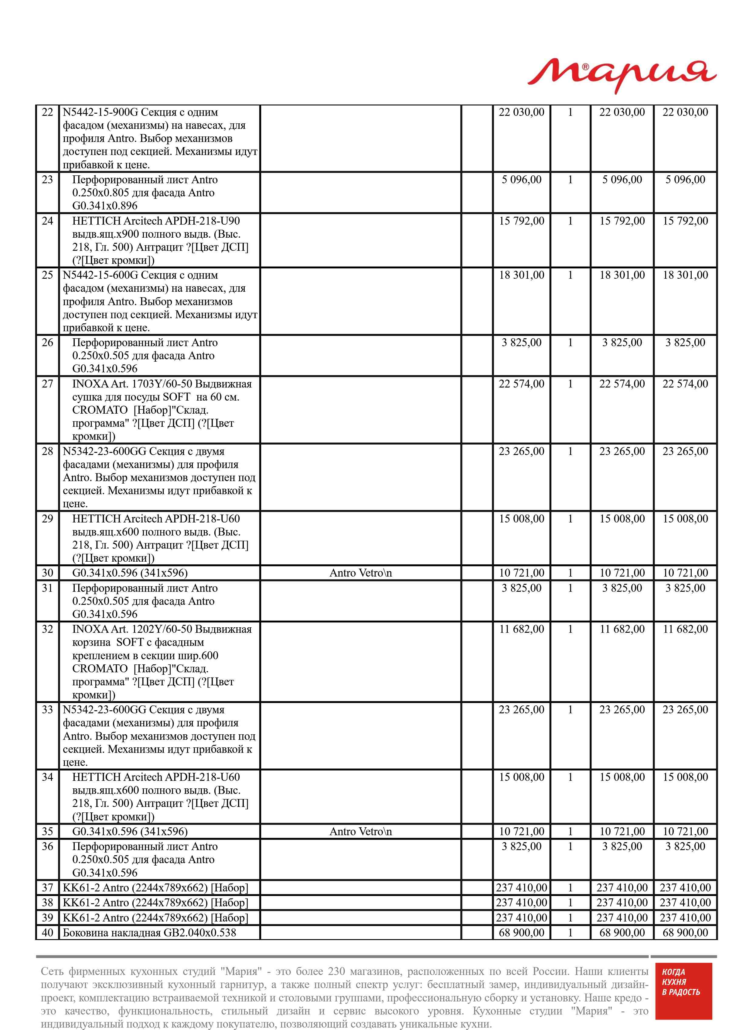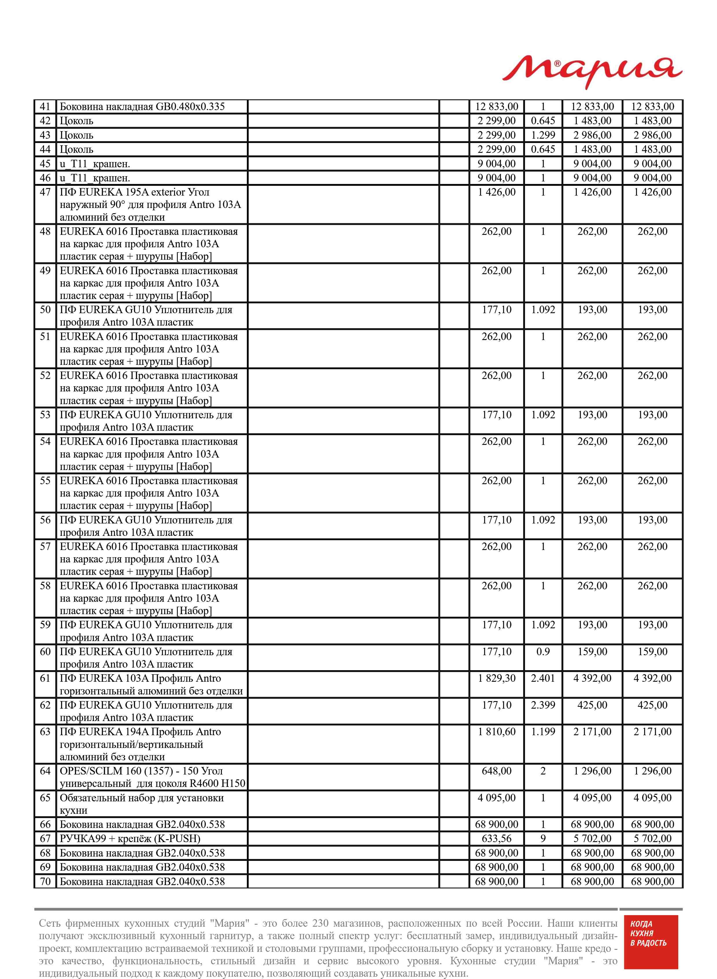 Стоимость данной кухни складывается из: