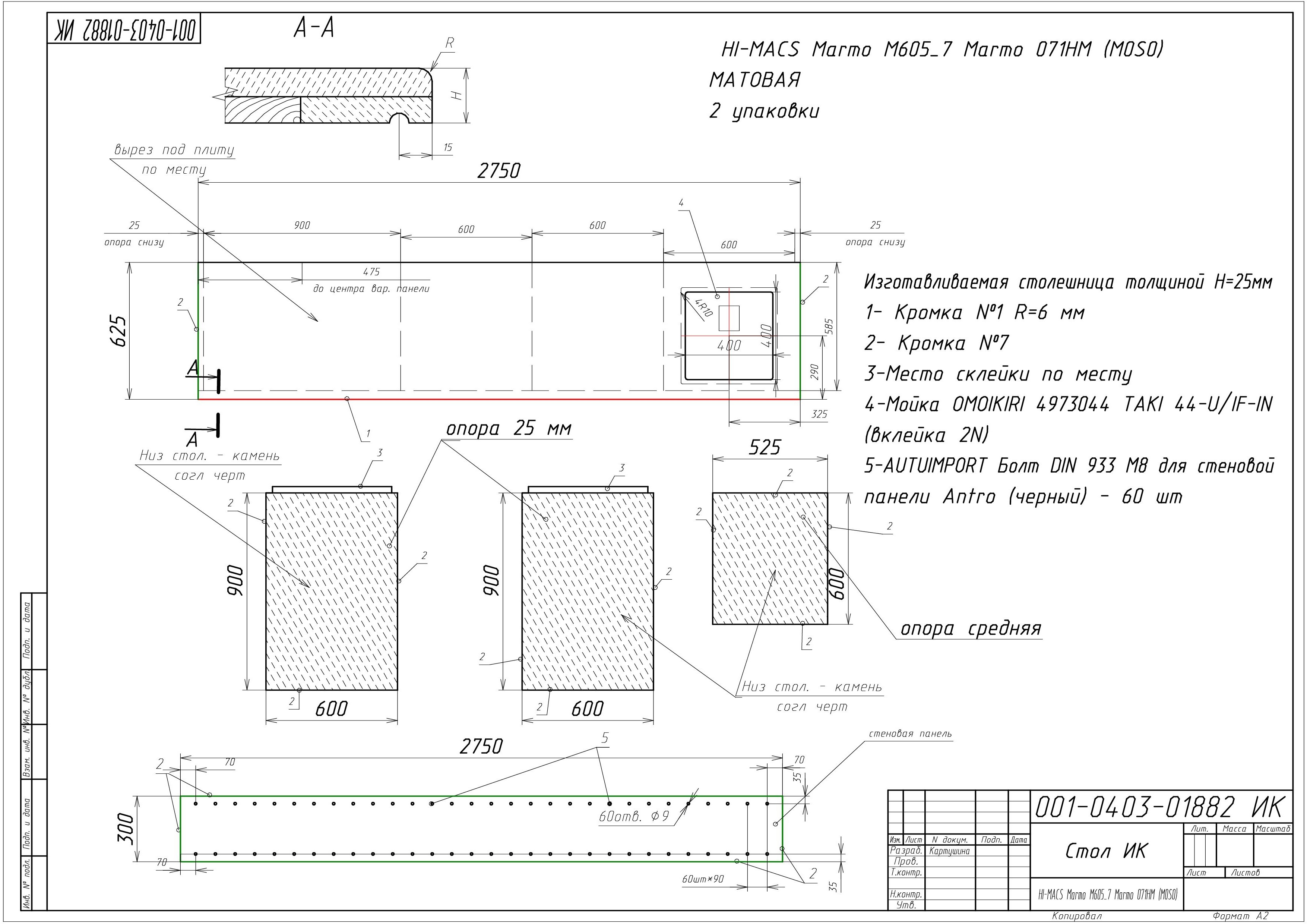 При покупке данного КГ, необходимо будет оформить платный дозаказ комплекта для склейки столешницы из искусственного камня, через менеджера студии Мария (который свяжется с вами сразу после приобретения КГ).