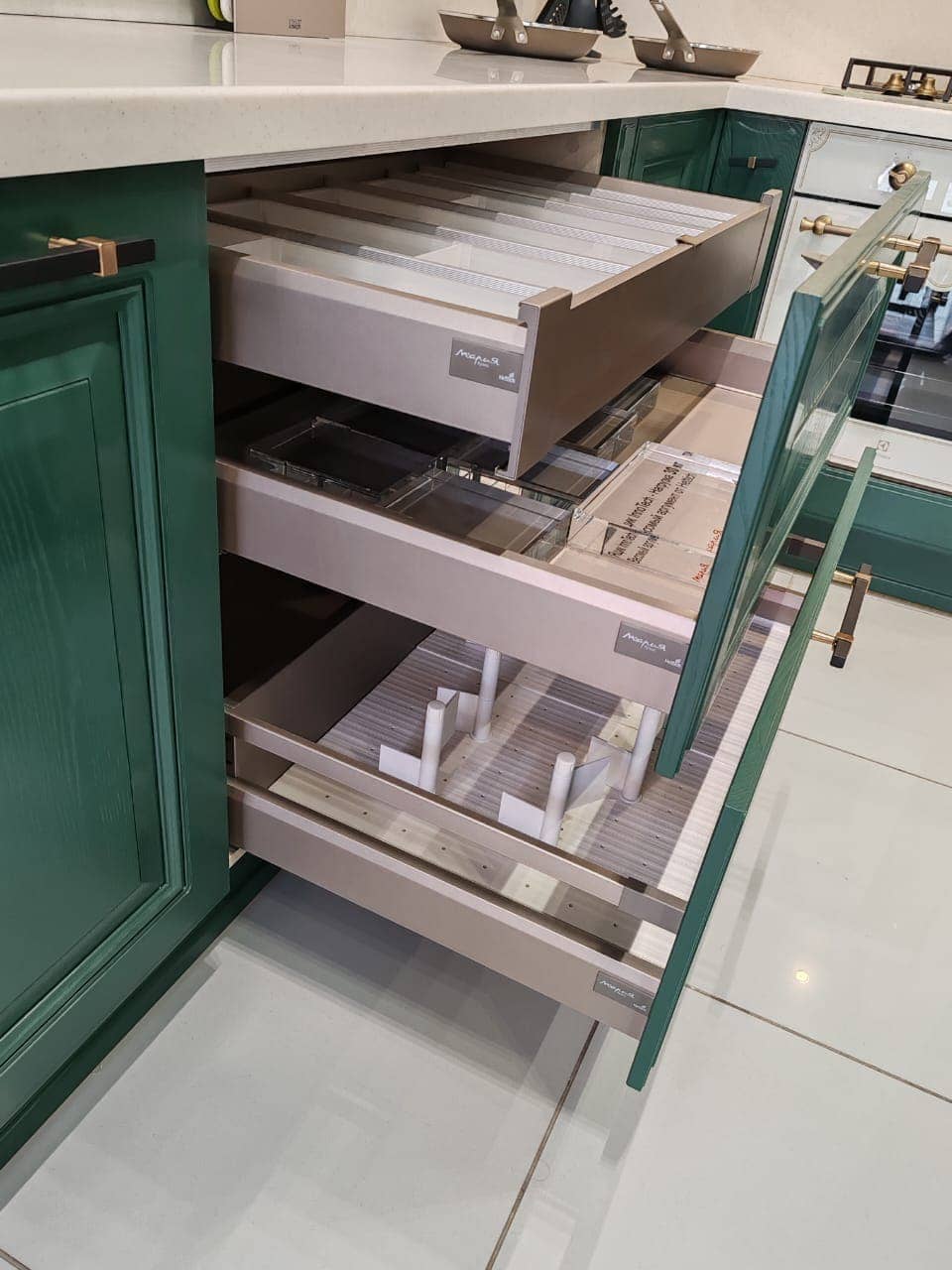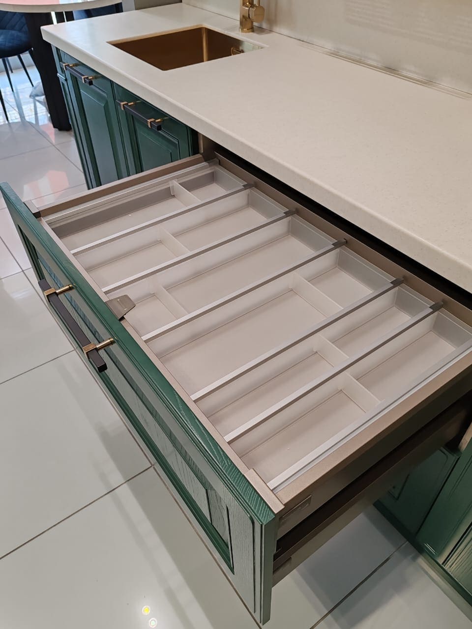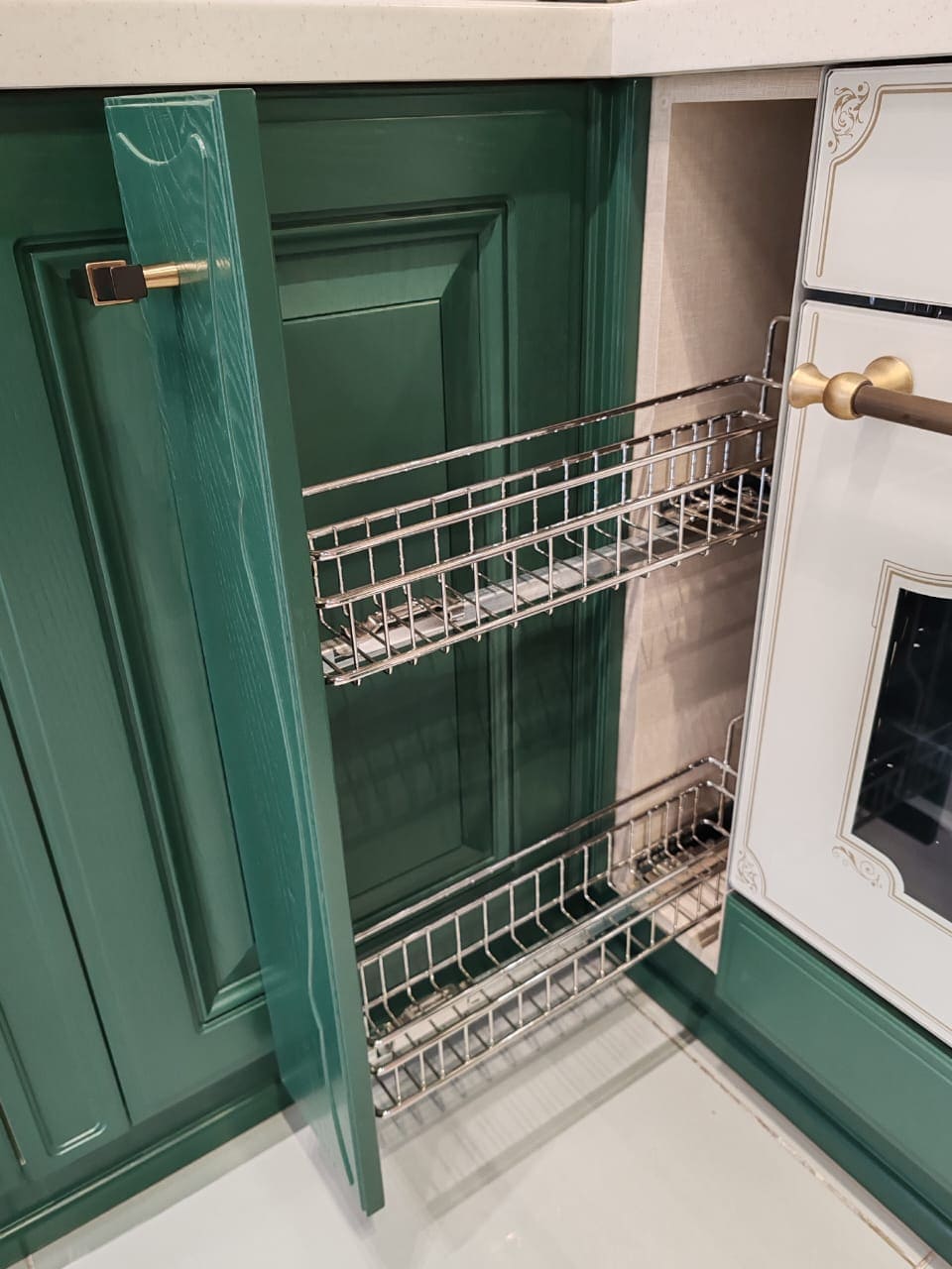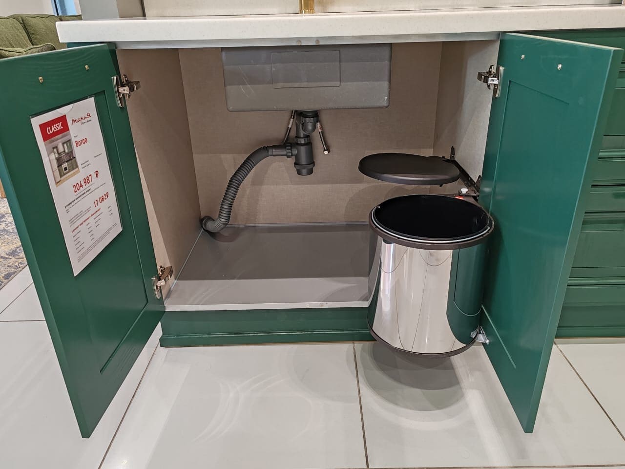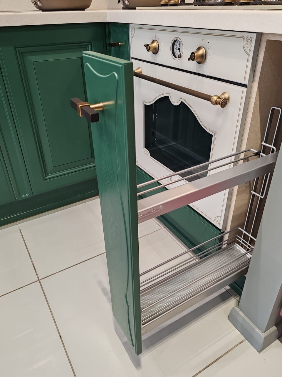 Внешний вид, описание дефектов: Могут присутствовать незначительные потертости, сколы, царапины. На выдвижном механизме точечно повреждено покрытие. Одна ручка расклеилась. Аксессуары не входят в данный комплект кухонного гарнитура.