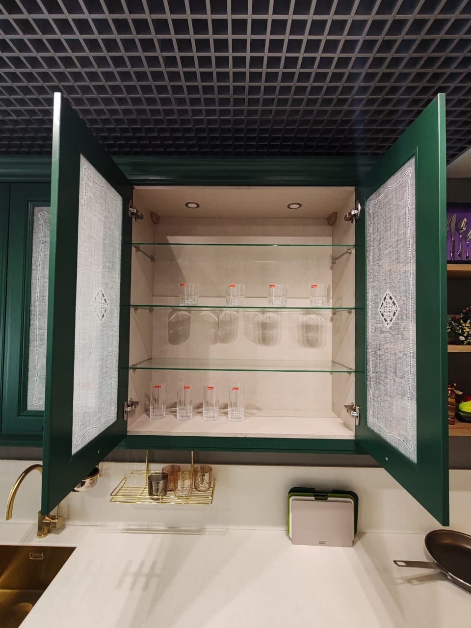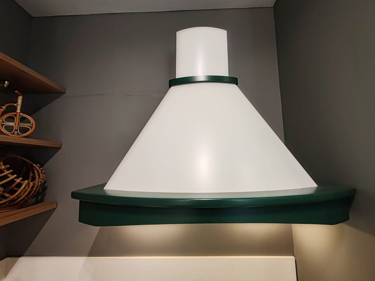 - Вытяжка купольная обклады под цвет фасада кухни Борго RAL 6028 ELIKOR РОТОНДА 900 бежевый корпус