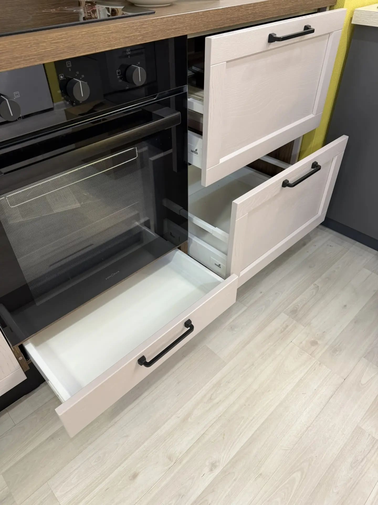 Фурнитура Hettich (Германия) с доводчиками, сушка для посуды INOXA (Италия).
