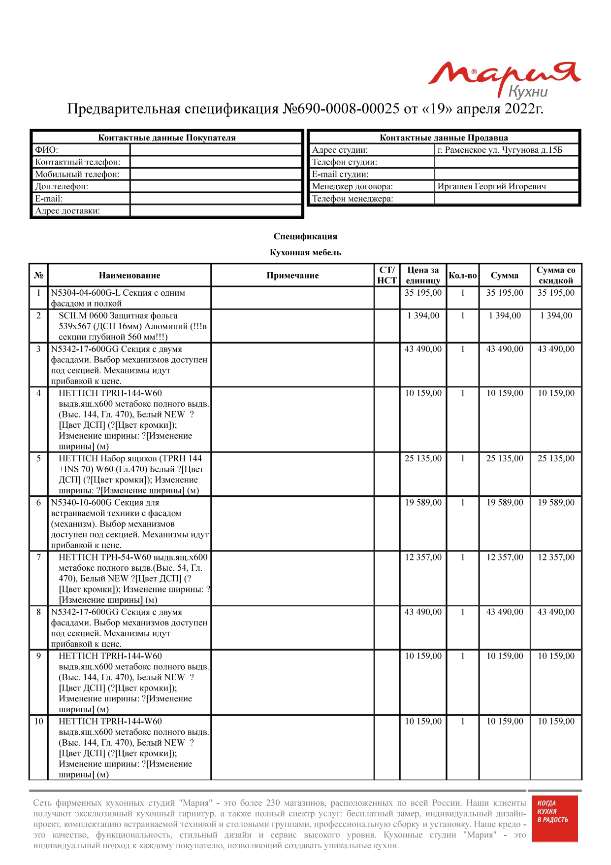 Стоимость данной кухни складывается из: