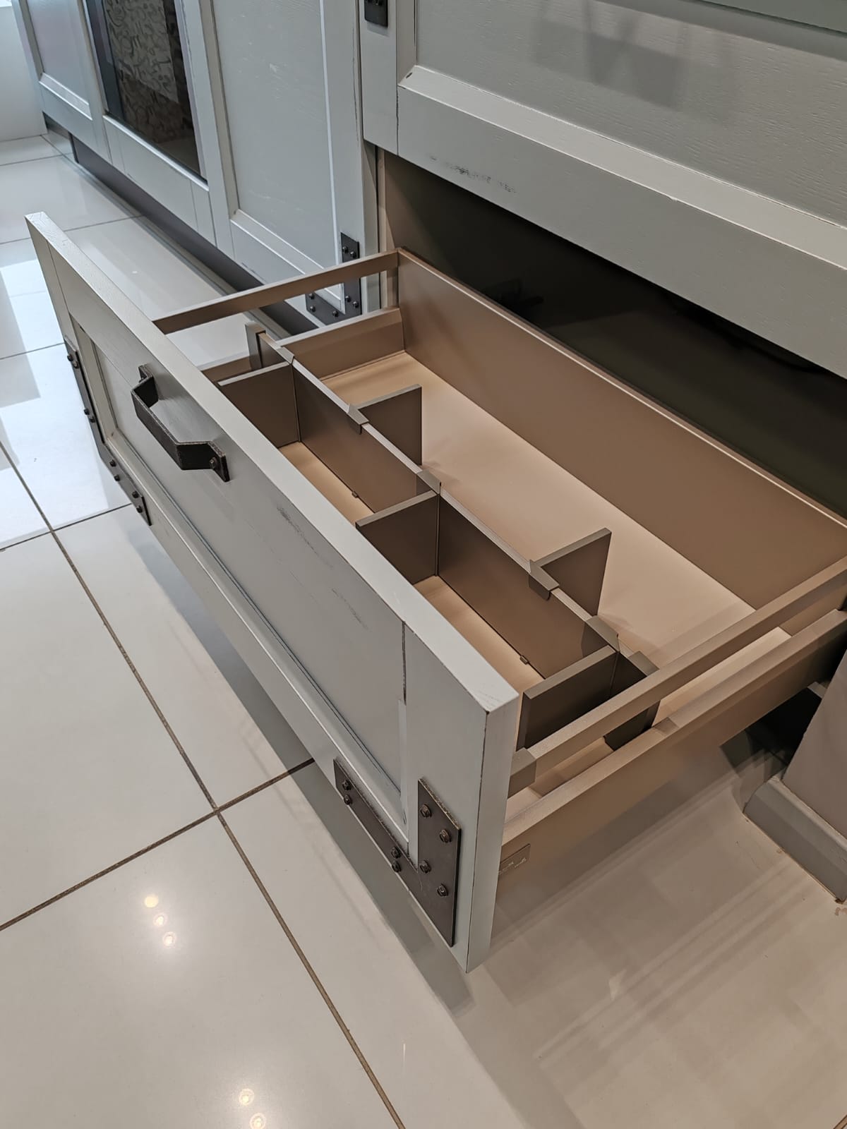 Рамочные фасады толщиной 24 мм изготовлены из массива ясеня с ярко выраженными порами и текстурой дерева.