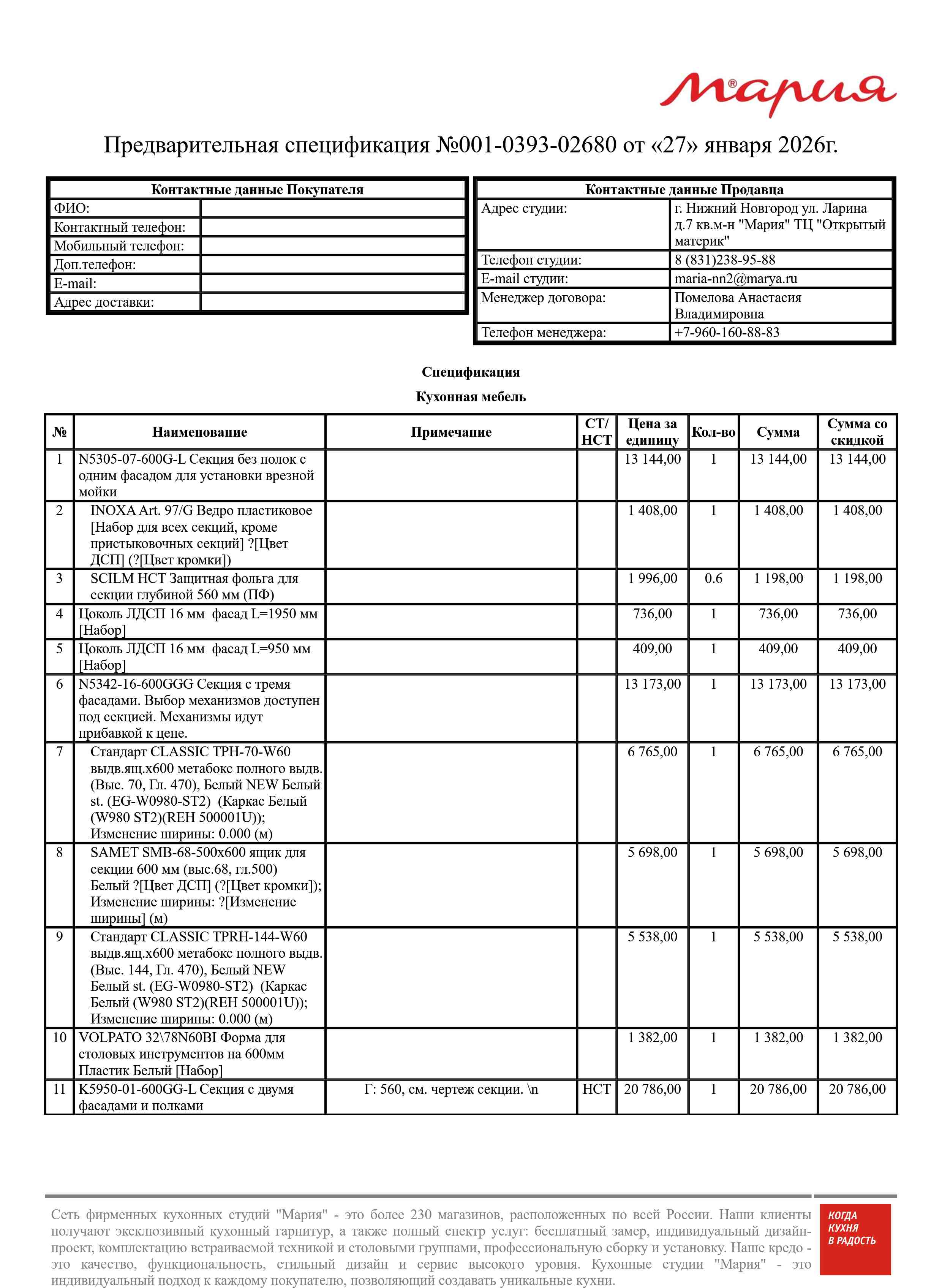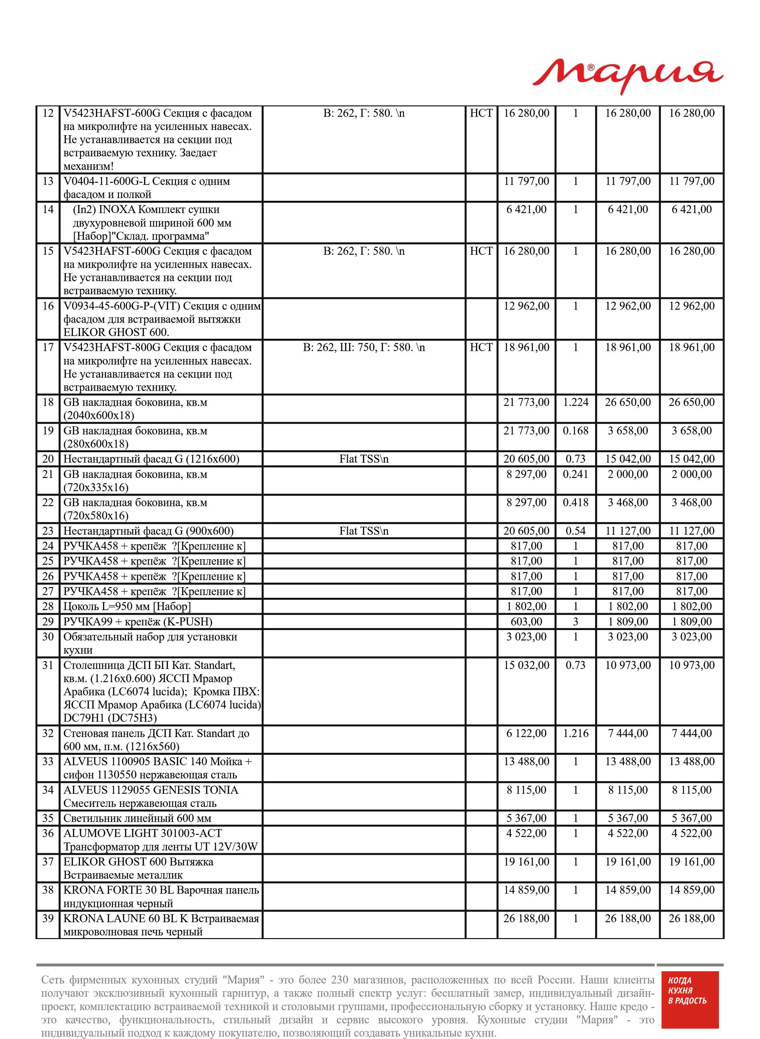 Стоимость данной кухни складывается из: