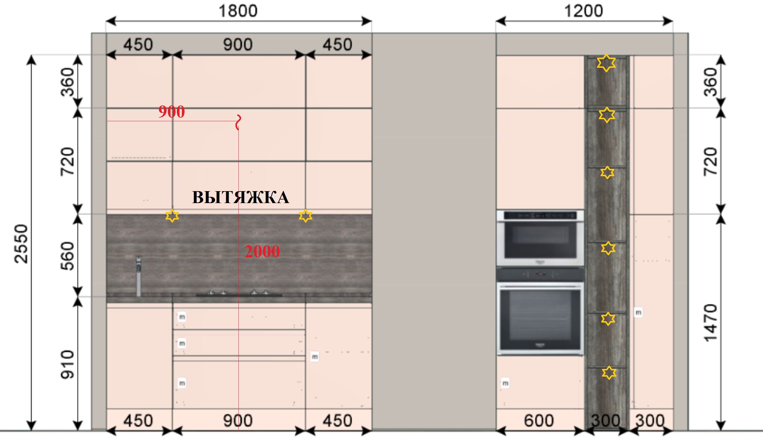 Размер Кухни: 1800 мм.