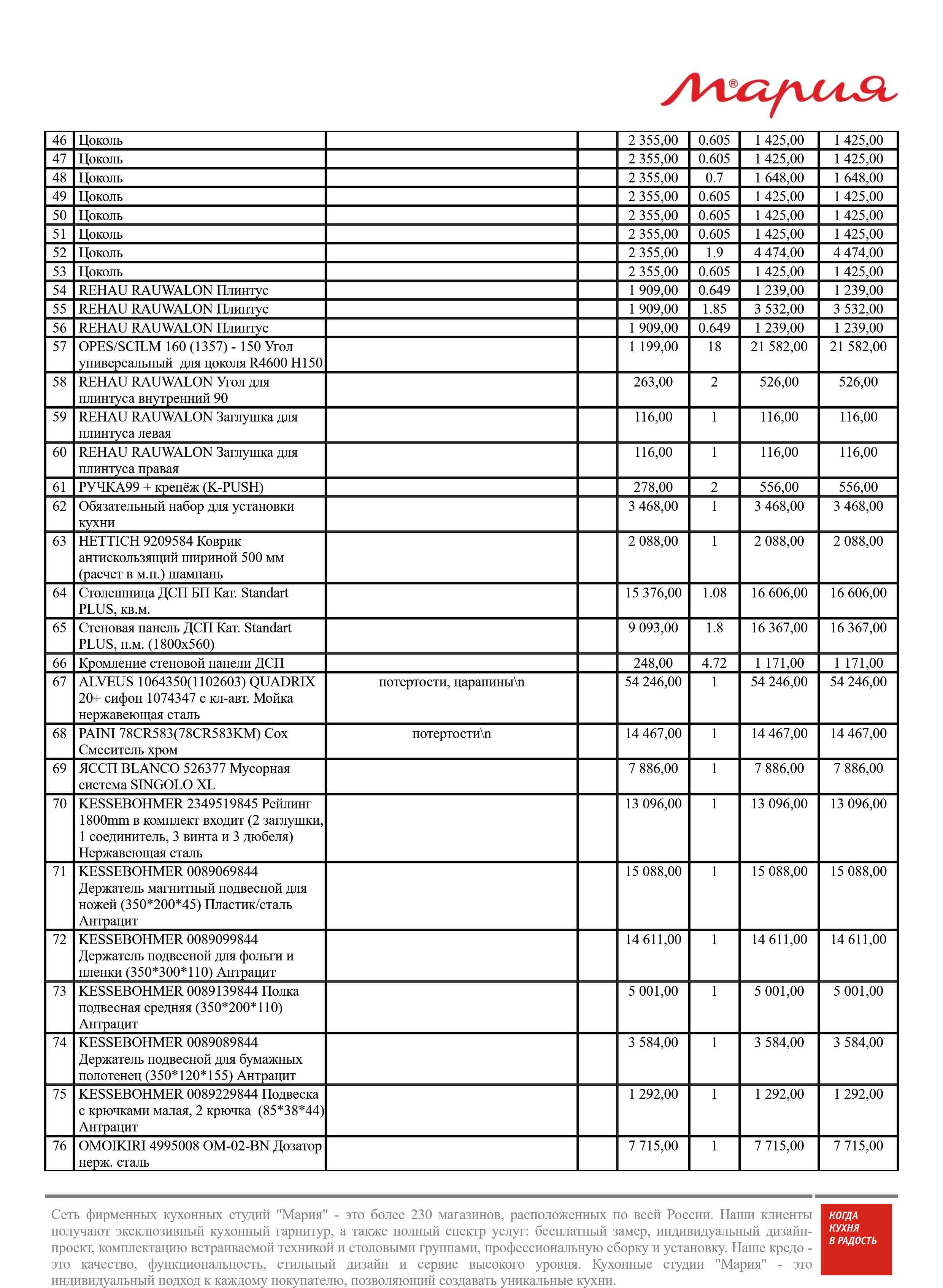 Стоимость данной кухни складывается из: