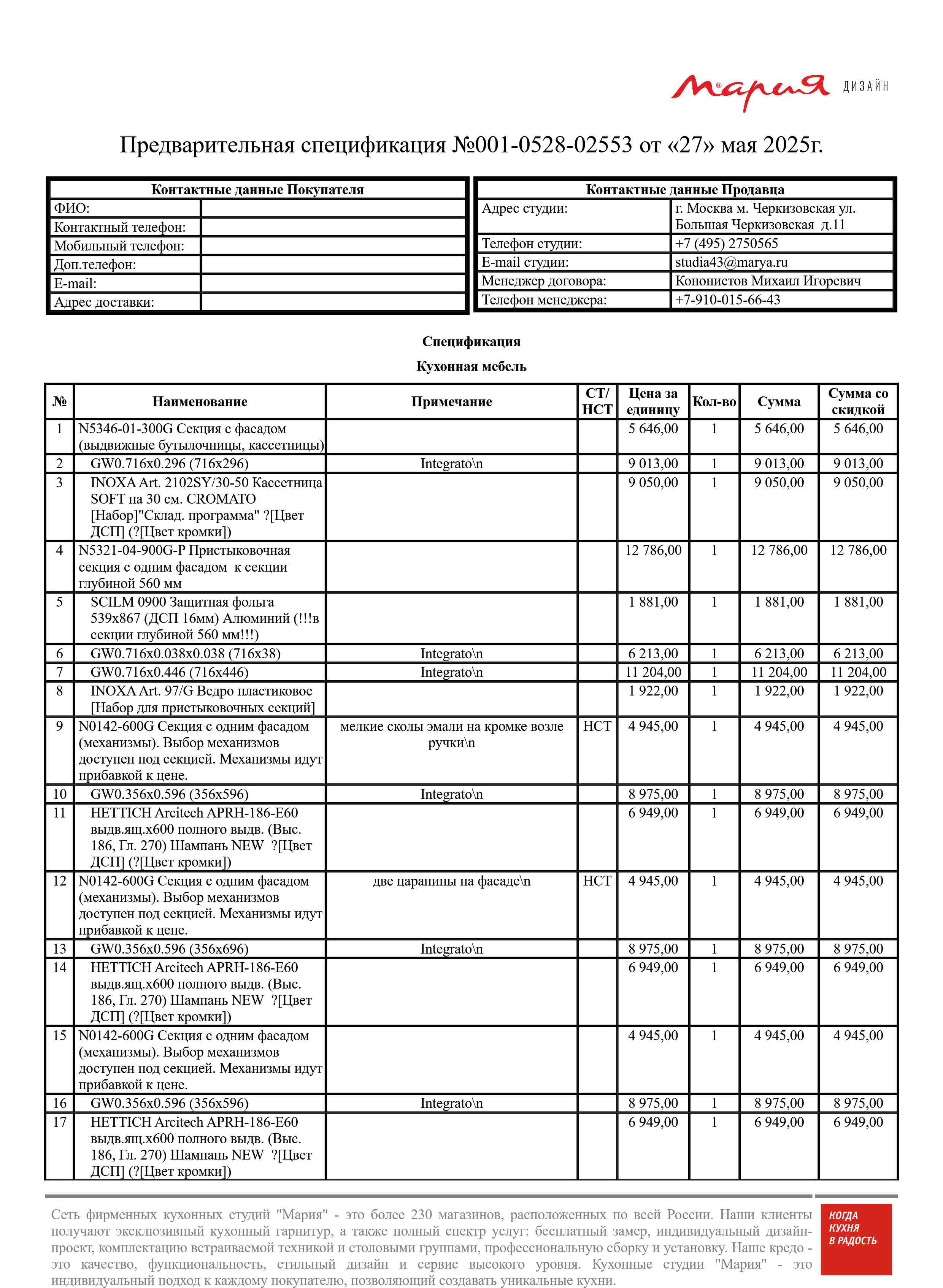 Стоимость данной кухни складывается из: