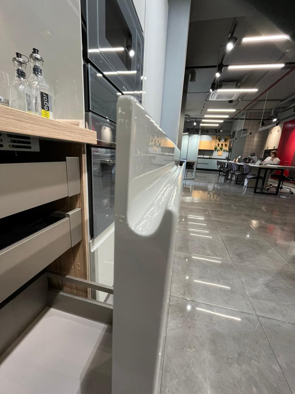 Описание модели IntegratoМодель Integrato — это актуальный лаконичный дизайн и минимализм в деталях. Фасады кухни изготовлены из МДФ толщиной 22 мм и покрыты сверху прочной и стойкой эмалью. На выбор покупателям предлагается сразу несколько вариантов отделки: глянцевая, матовая, суперматовая и фактурная. Специально для фасадов этой модели дизайнеры «Марии» подобрали восемь оттенков в пастельных тонах. Для ценителей индивидуальных решений доступно еще 2000 цветов из каталогов RAL и NCS. Вместо накладных и врезных ручек в Integrato используется специальный глубокий паз, вырезанный на одной из сторон фасада. Такое решение позволяет сохранить монолитный образ кухни и удобно открывать дверцы и ящики мебели.