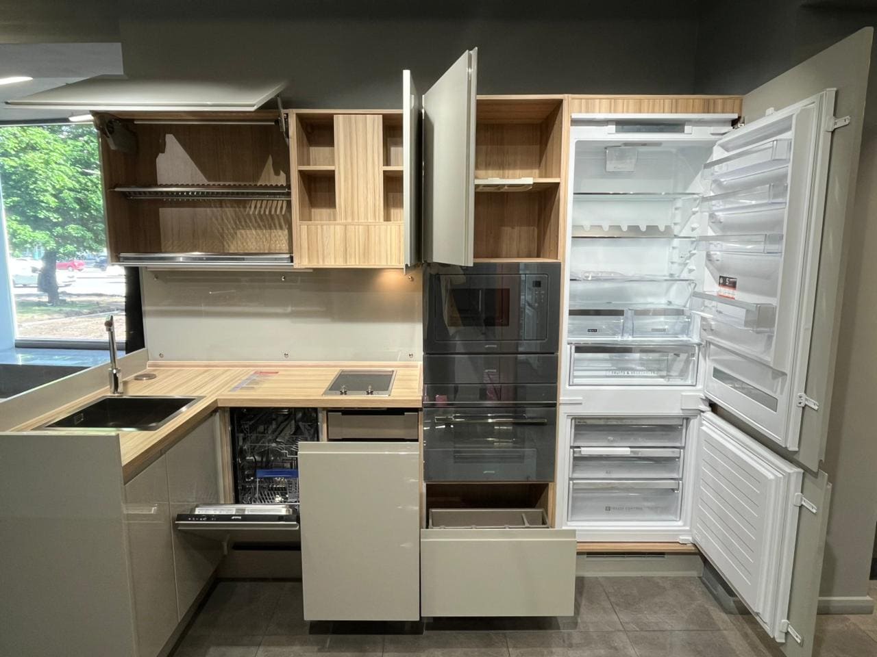 Integrato — это лаконичный образ модели в современном стиле. Особенность модели — оригинальное исполнение фасадов с глубоким вырезом с одной стороны. Вырез исполняет функцию ручек, за счет чего удается сохранить единство образа кухни.