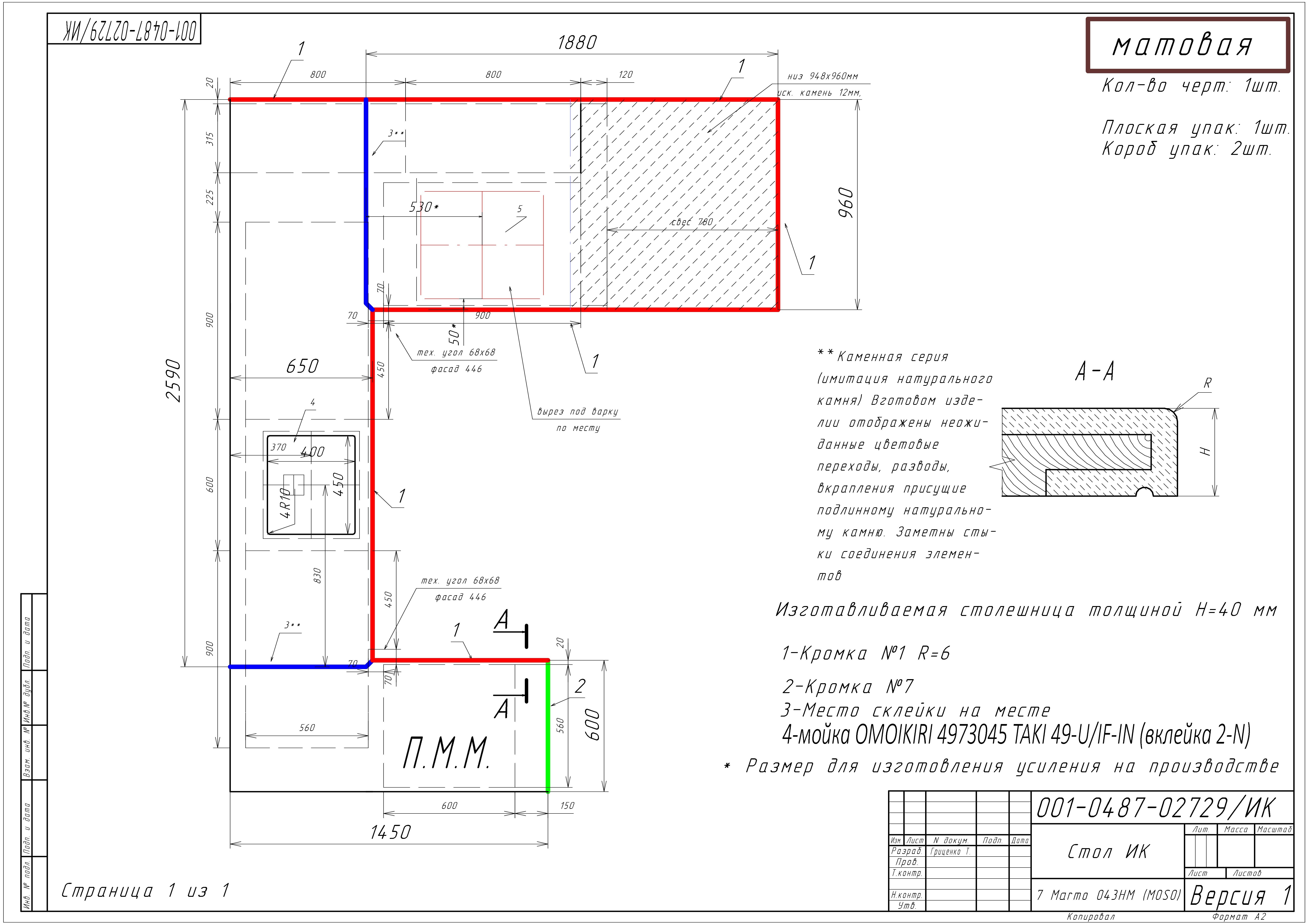 При покупке данного КГ, необходимо будет оформить платный дозаказ комплекта для склейки столешницы из искусственного камня, через менеджера студии Мария (который свяжется с вами сразу после приобретения КГ).