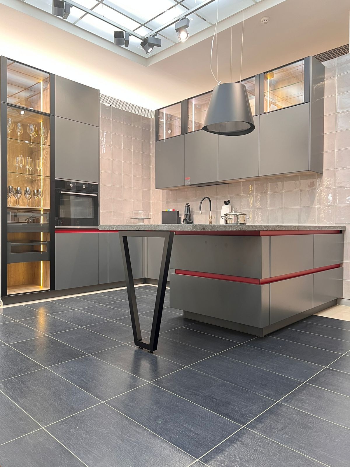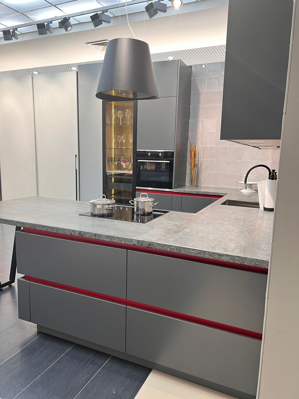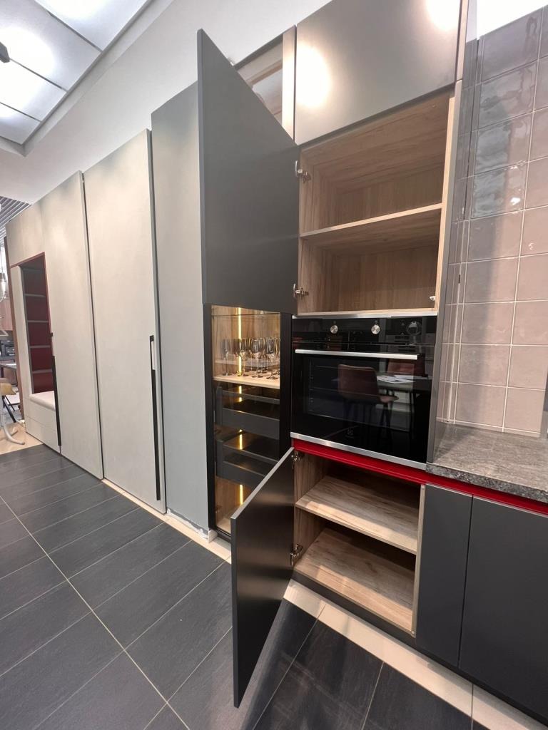 Богемная лаконичность и глянец модели Intuit достигаются отсутствием ручек — вместо них в нижних секциях используется профиль Gola, а в верхних секциях в дно каркаса интегрирована алюминиевая ручка. Особенностями, создающими индивидуальность кухонь Intuit являются: боковые накладные фасады, крайние секции, которые предназначены вместо открытых взгляду боковин каркаса.