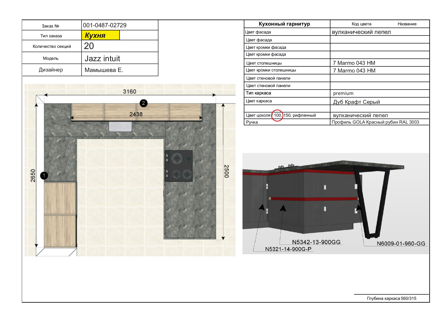 Размер Кухни слева направо: 2650/3160/2500 мм.