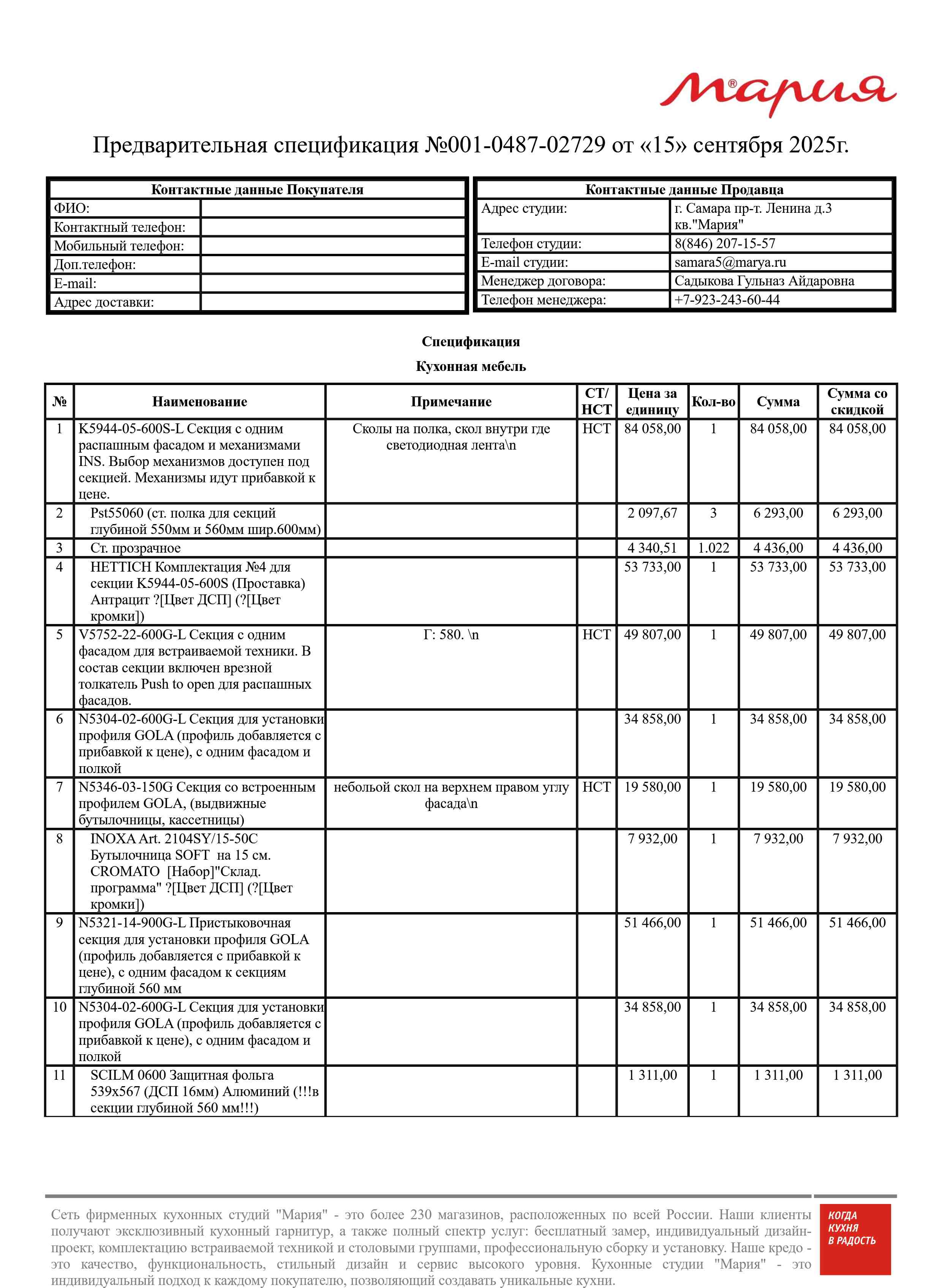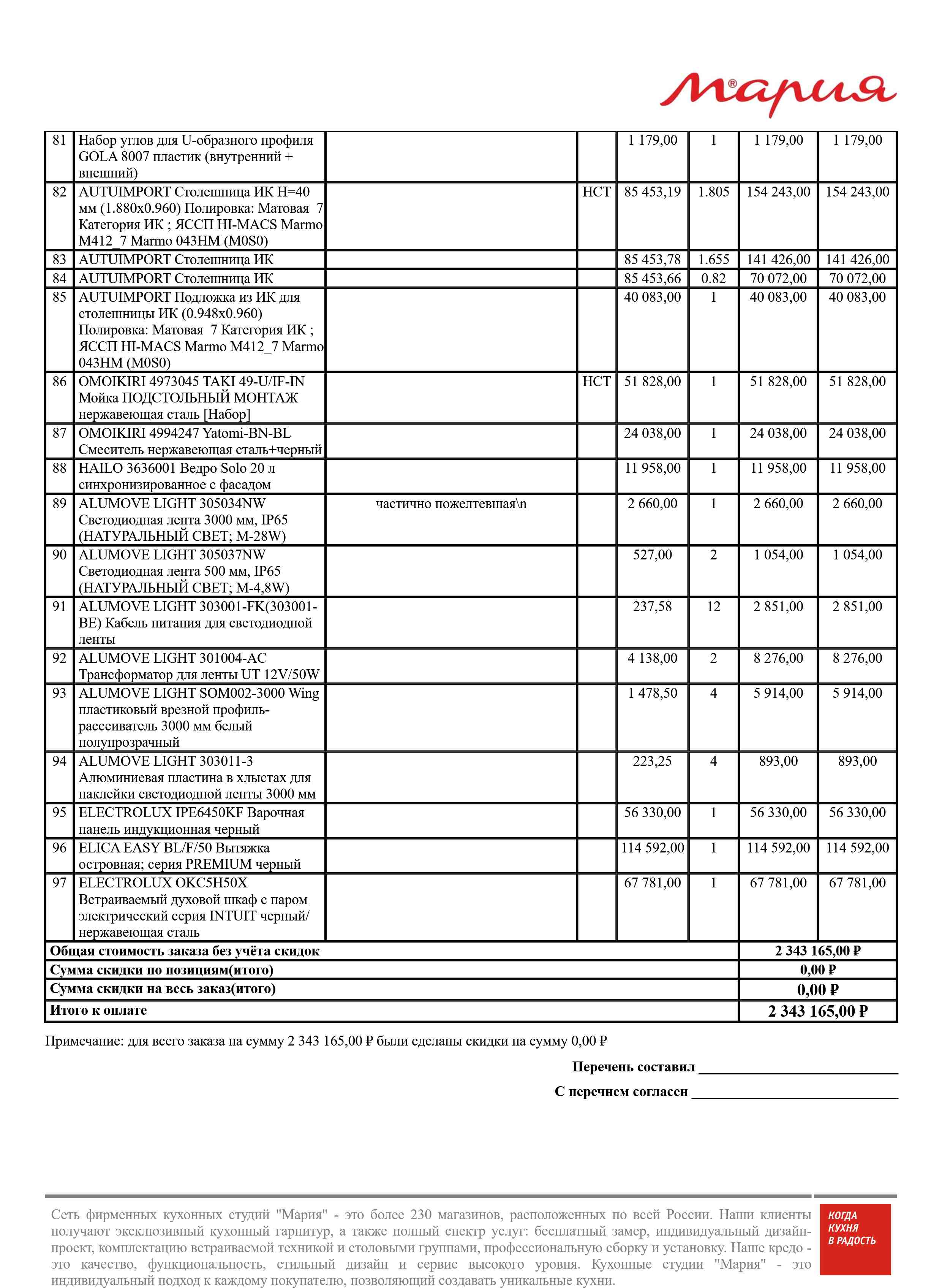 Стоимость данной кухни складывается из: