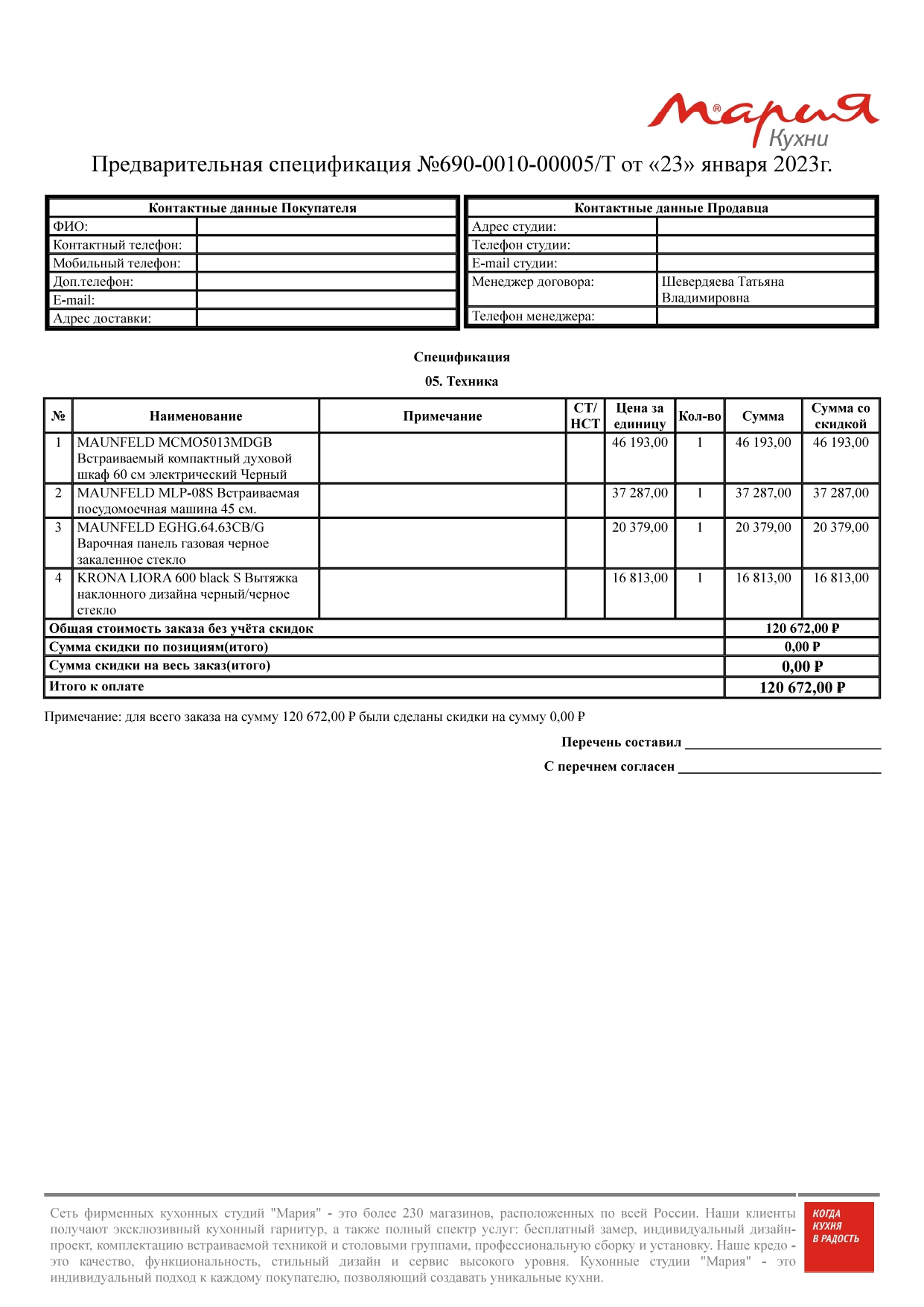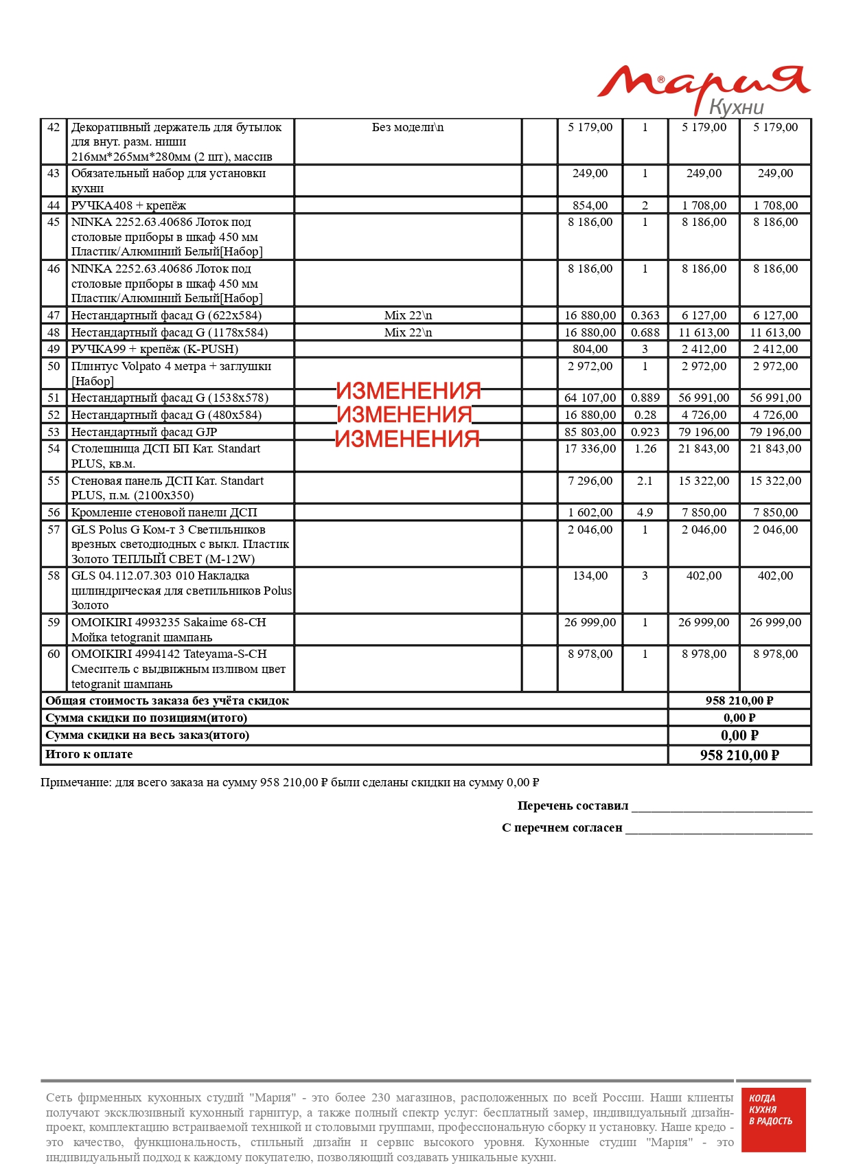 Стоимость данной кухни складывается из: