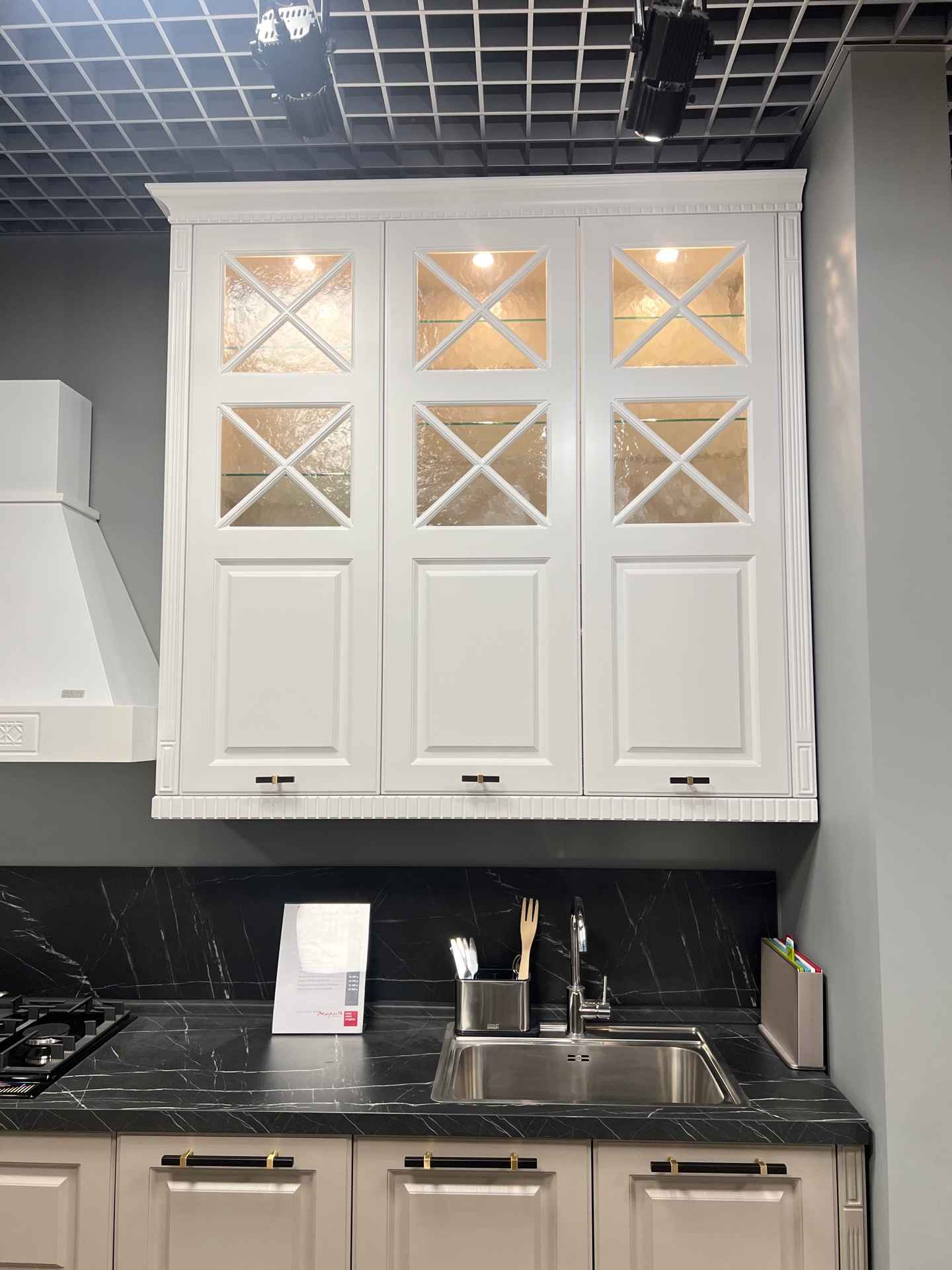 Материал фасада: МДФ в эмали (верхние фасады) и МДФ в термопластике (нижние фасады)