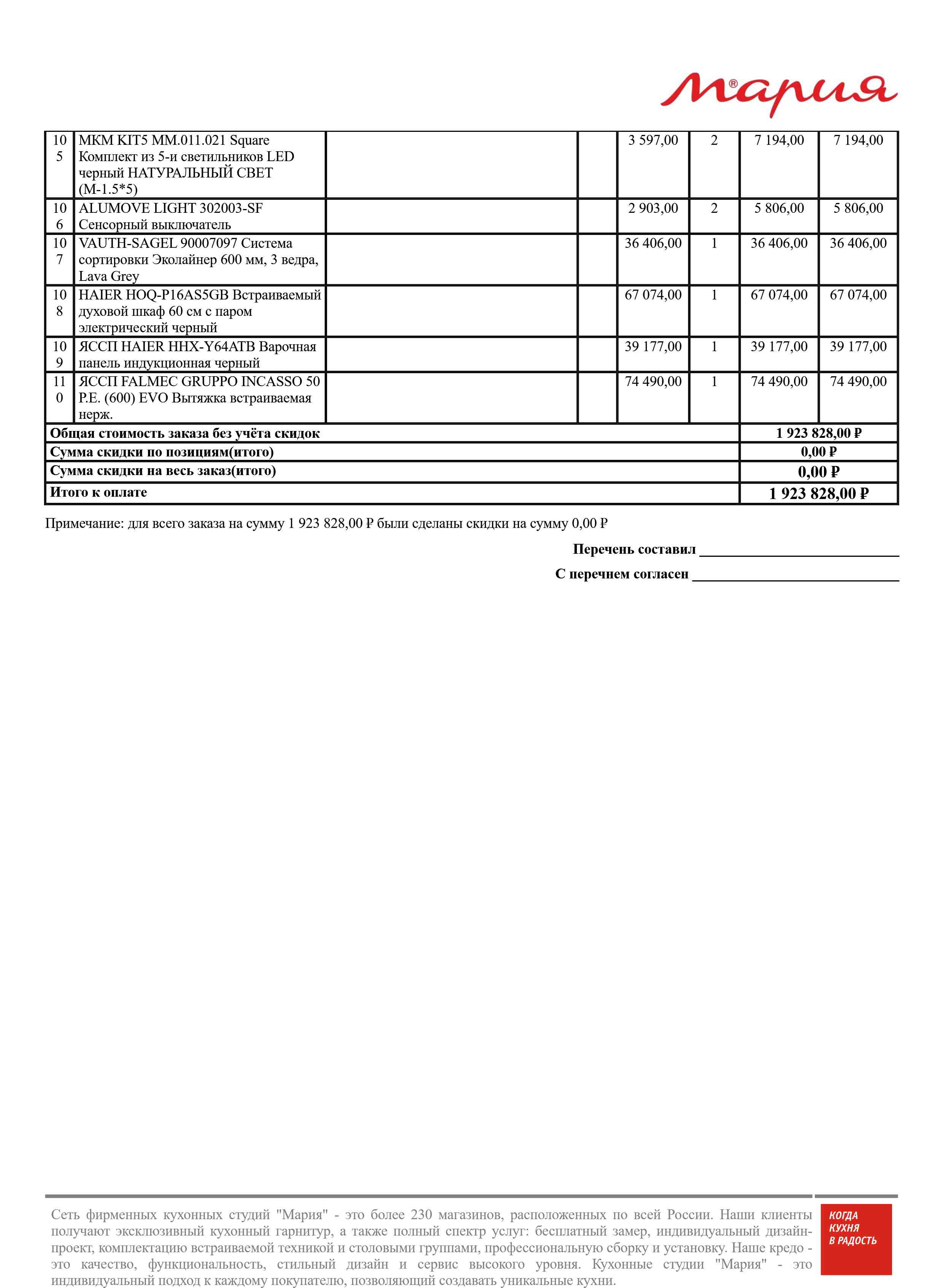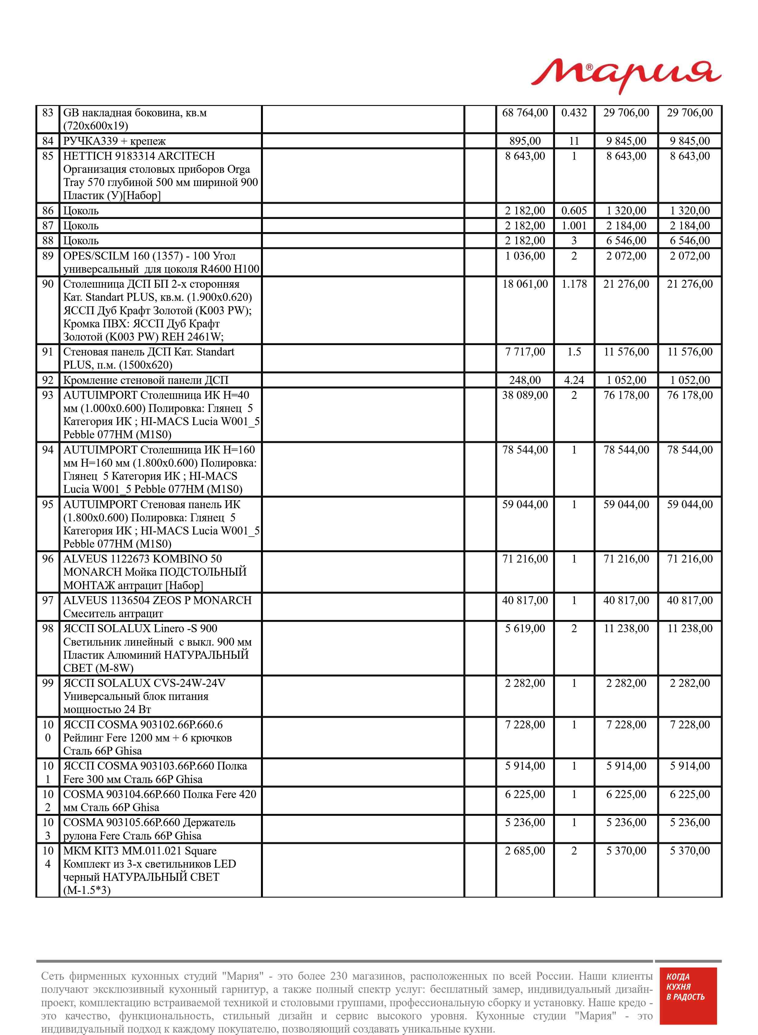 Стоимость данной кухни складывается из: