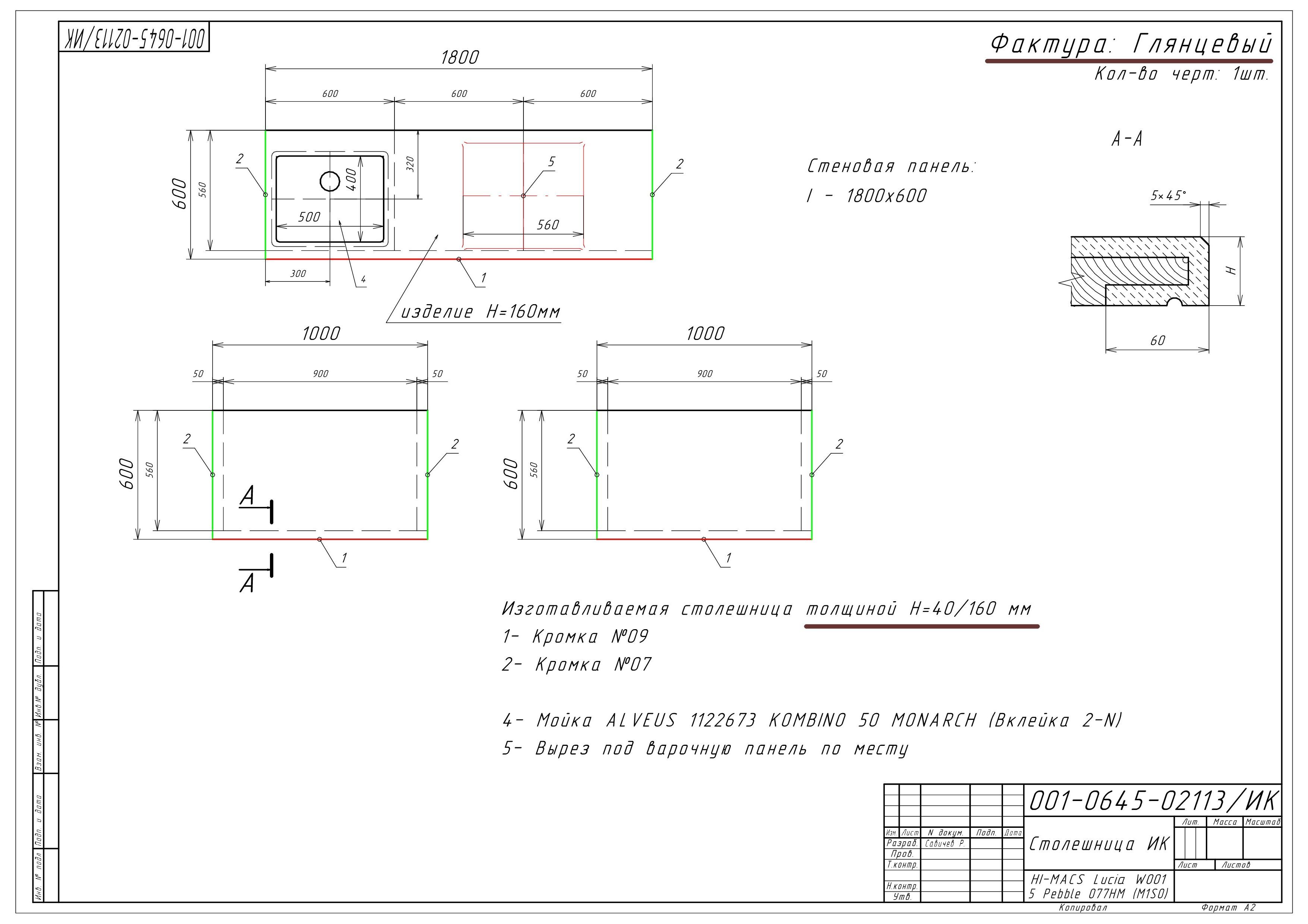 - Столешница и стеновая панель из искусственного камня "HI-MACS"