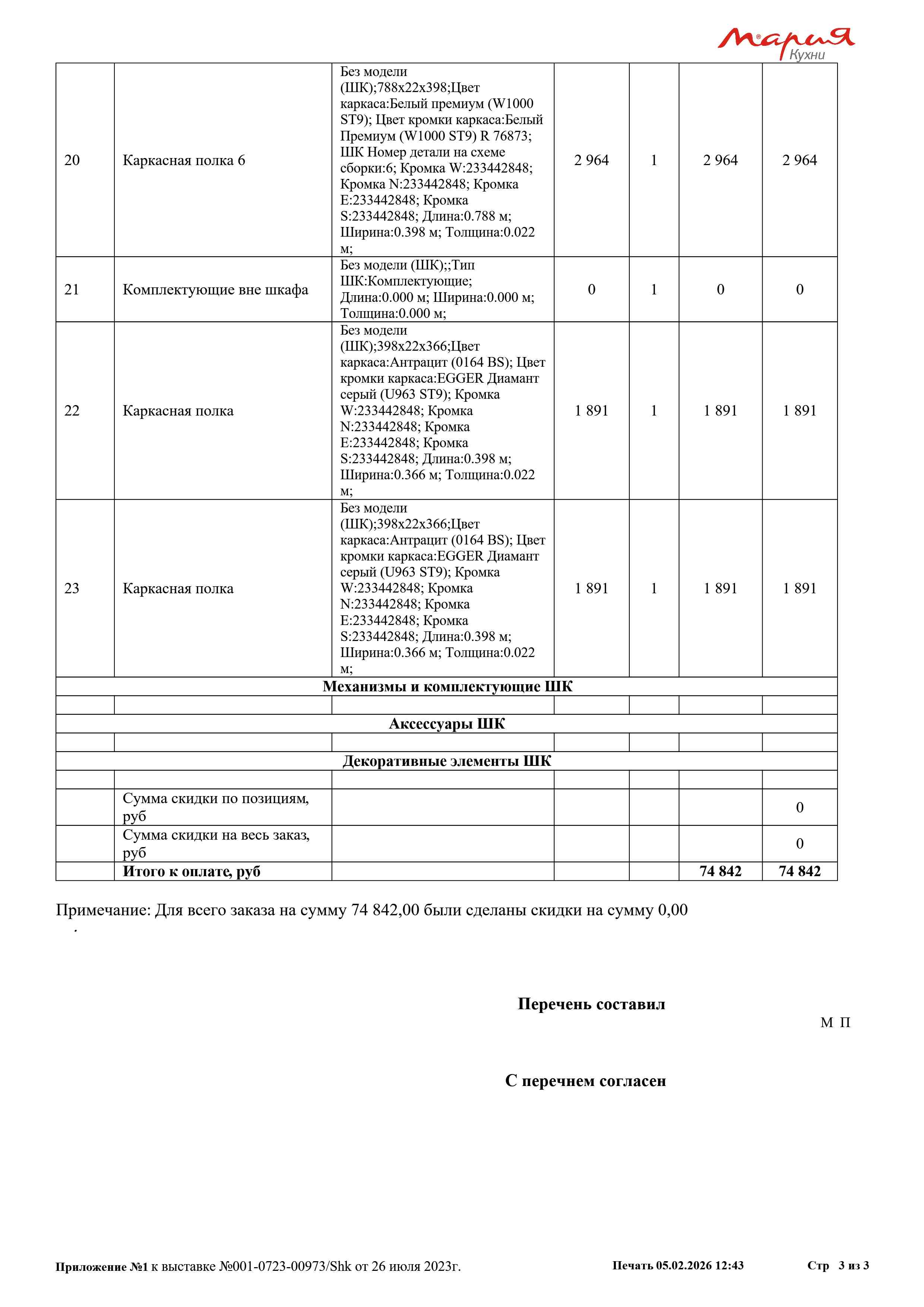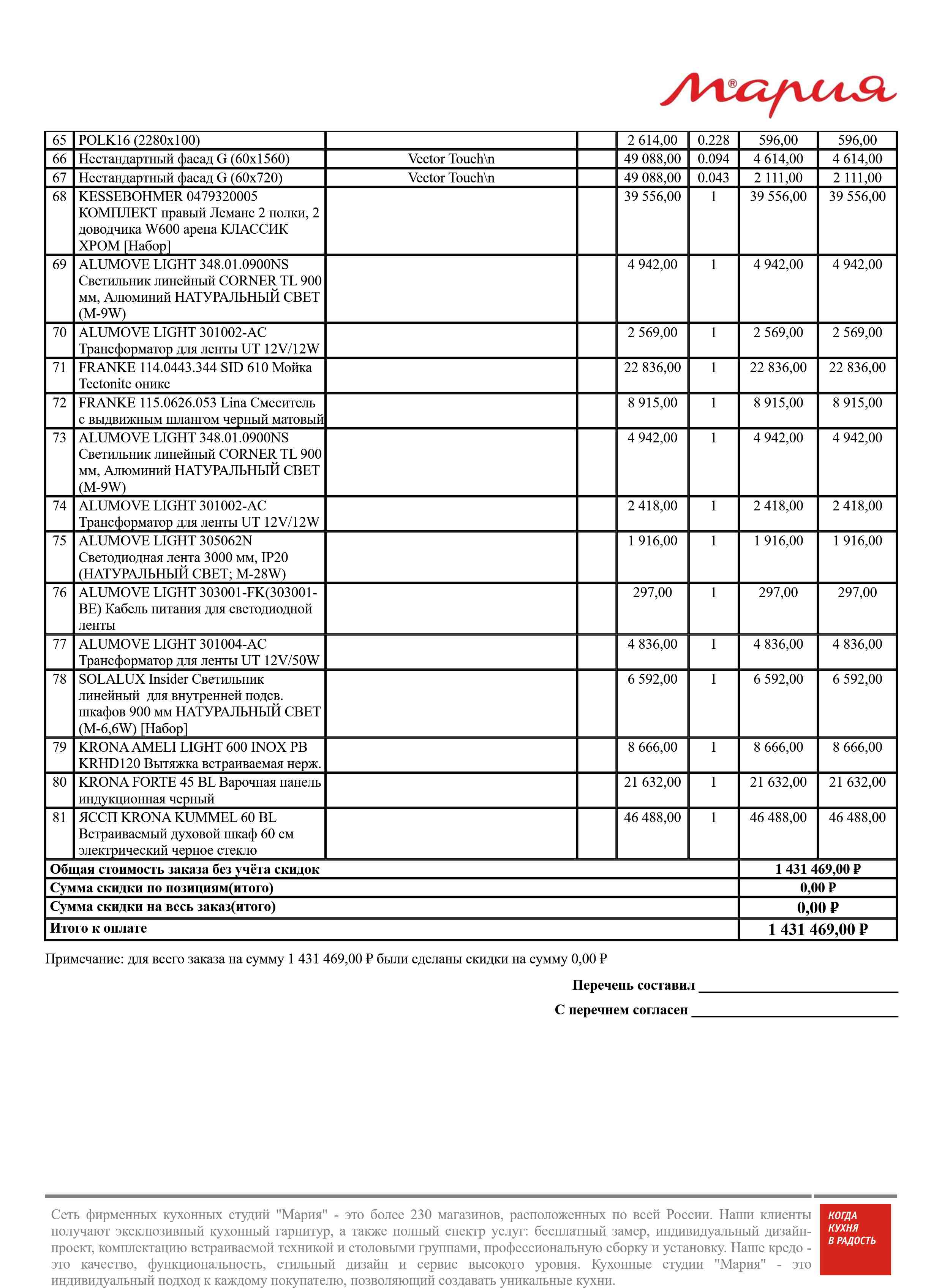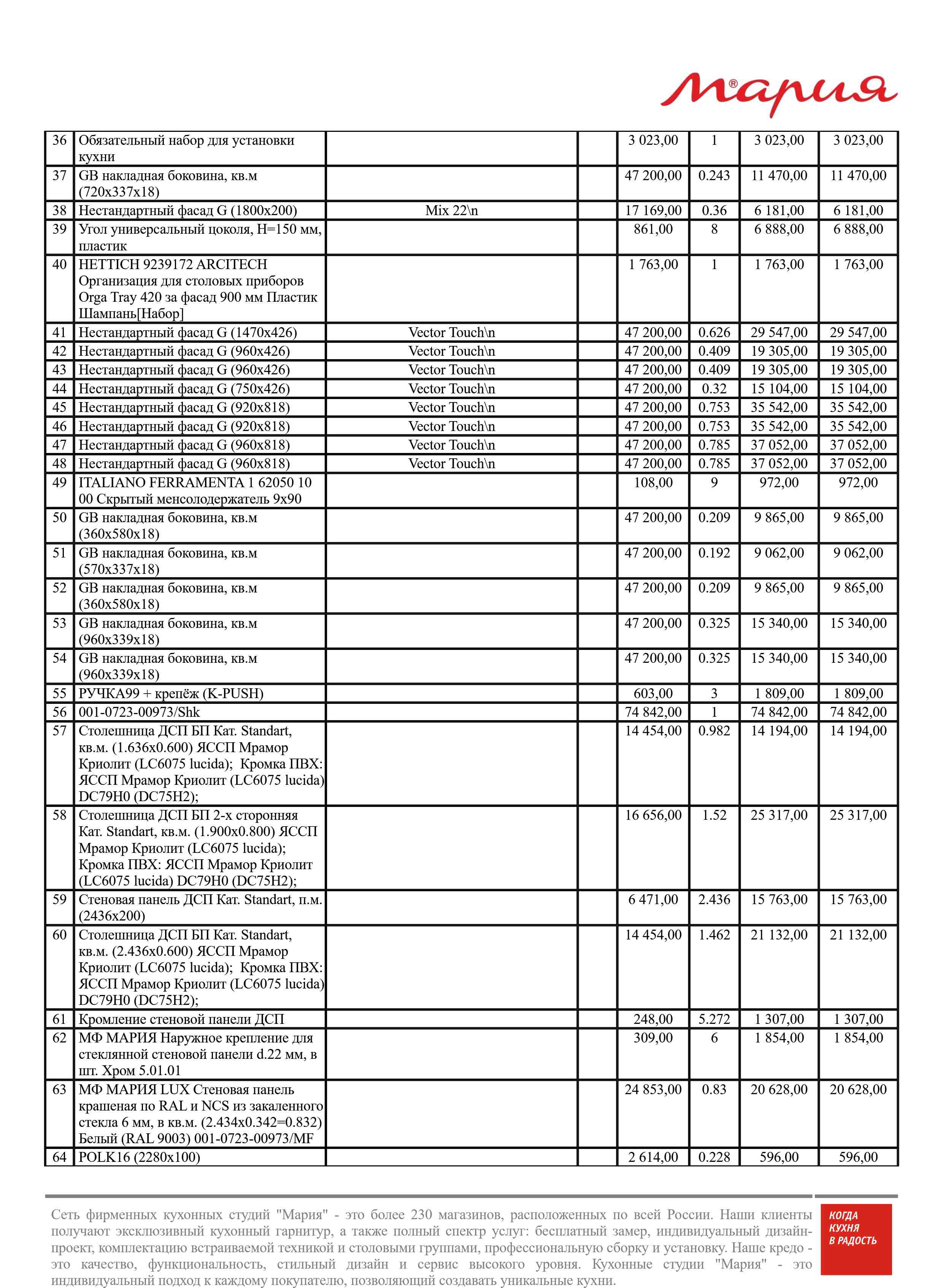Стоимость данной кухни складывается из: