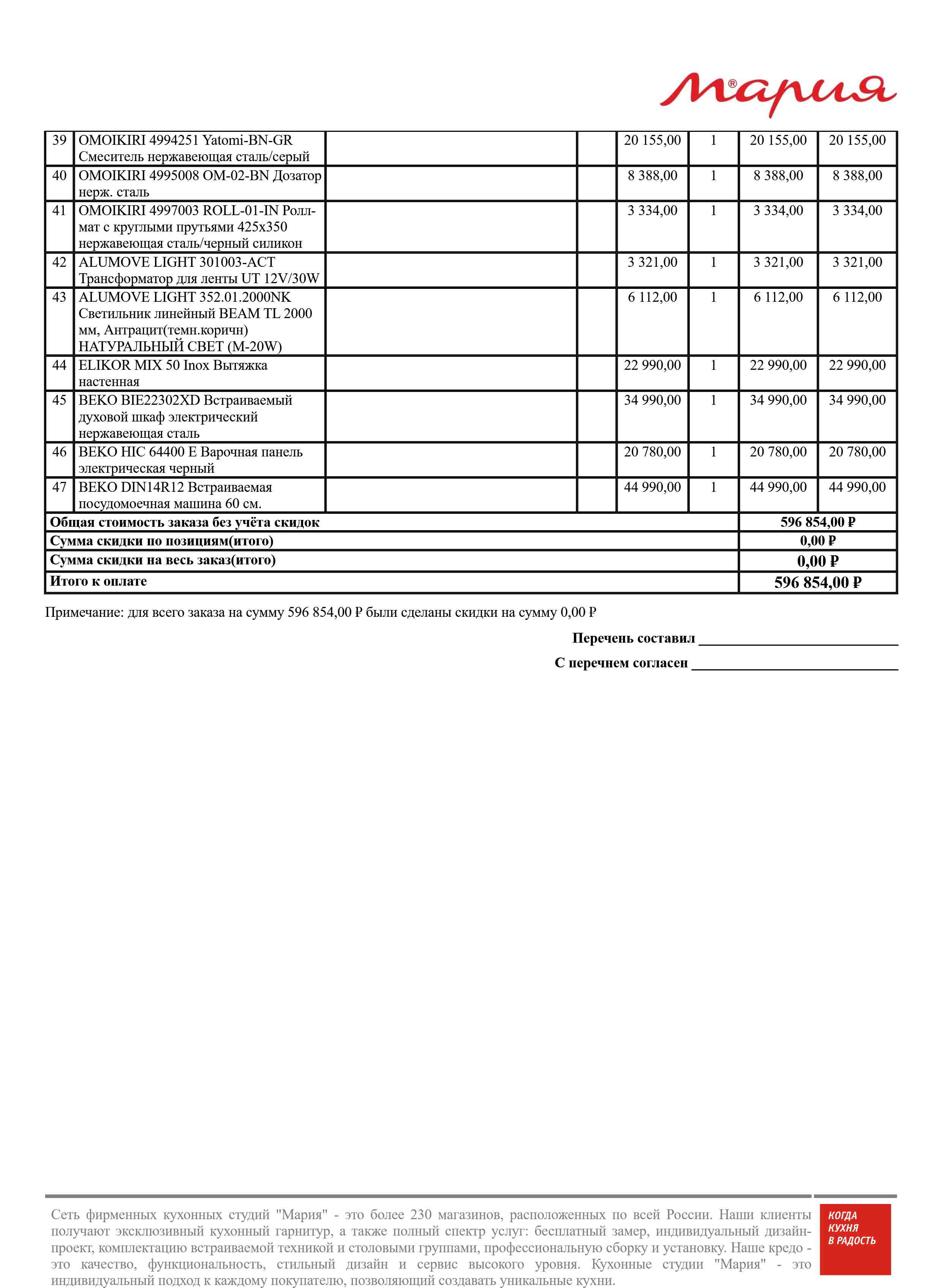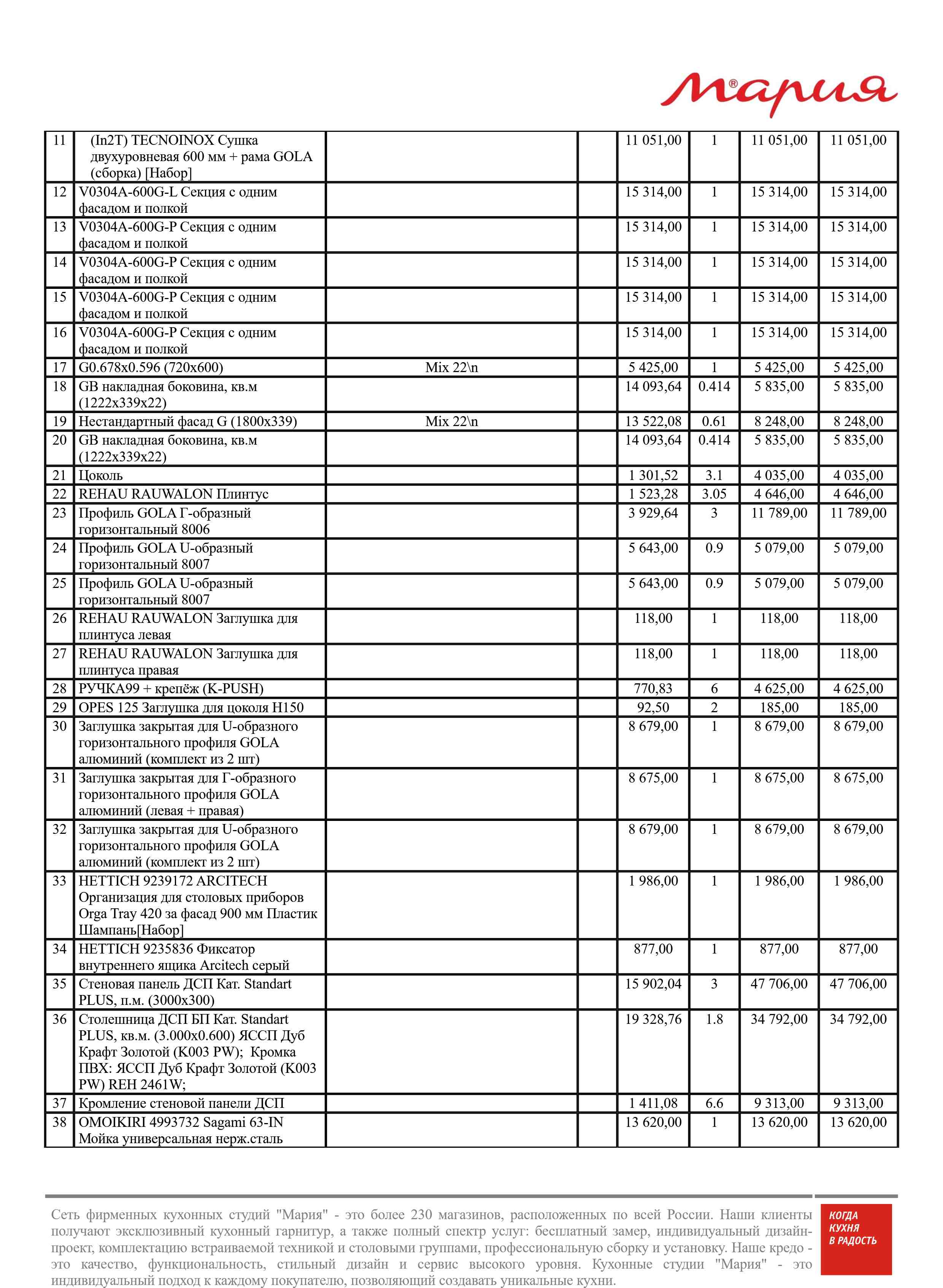 Стоимость данной кухни складывается из: