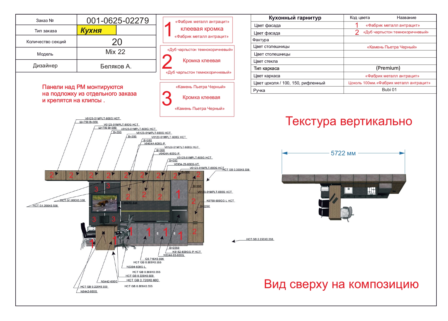 Размер Кухни: 5722 мм. (стол 1800/600 мм.)