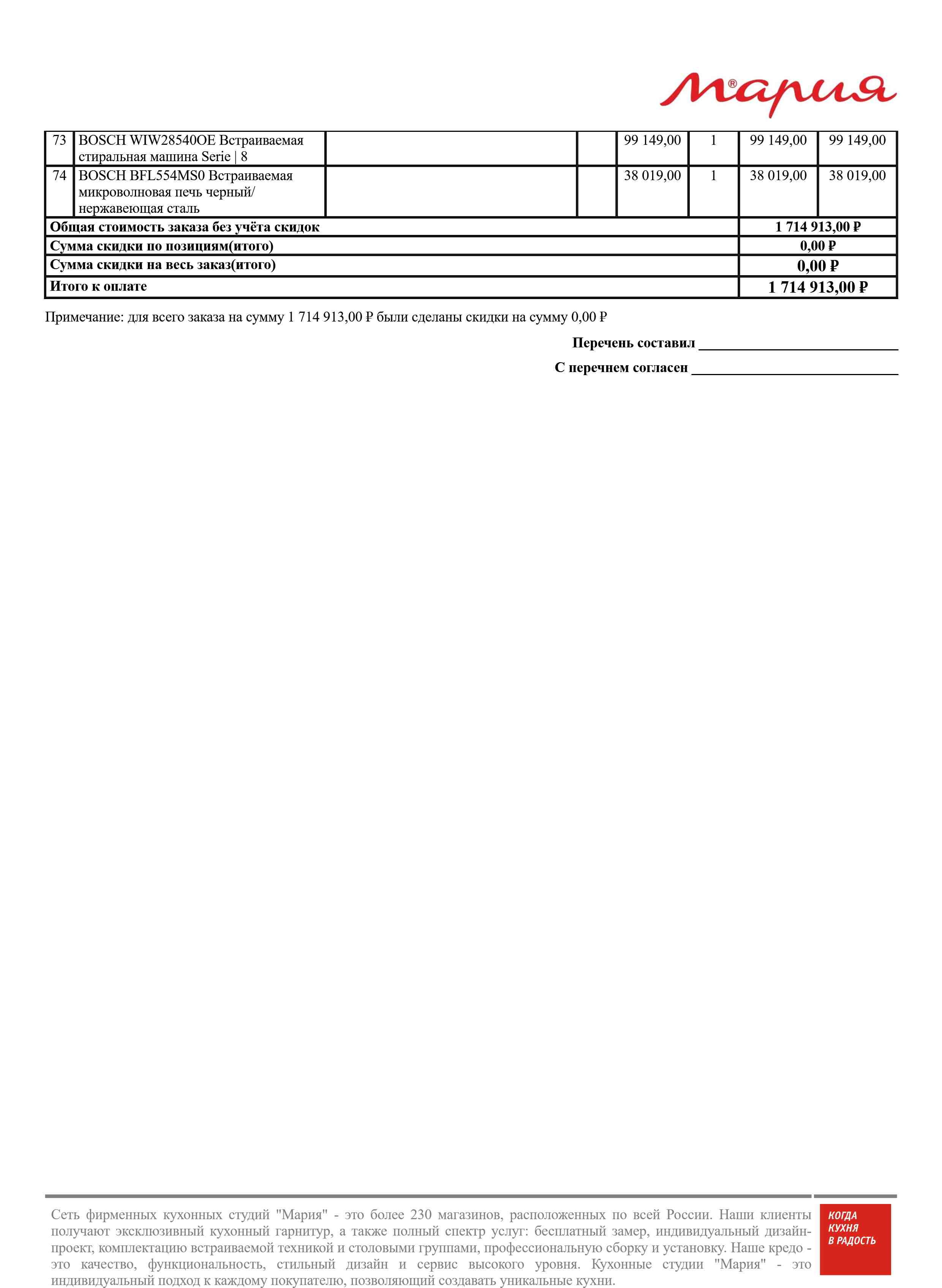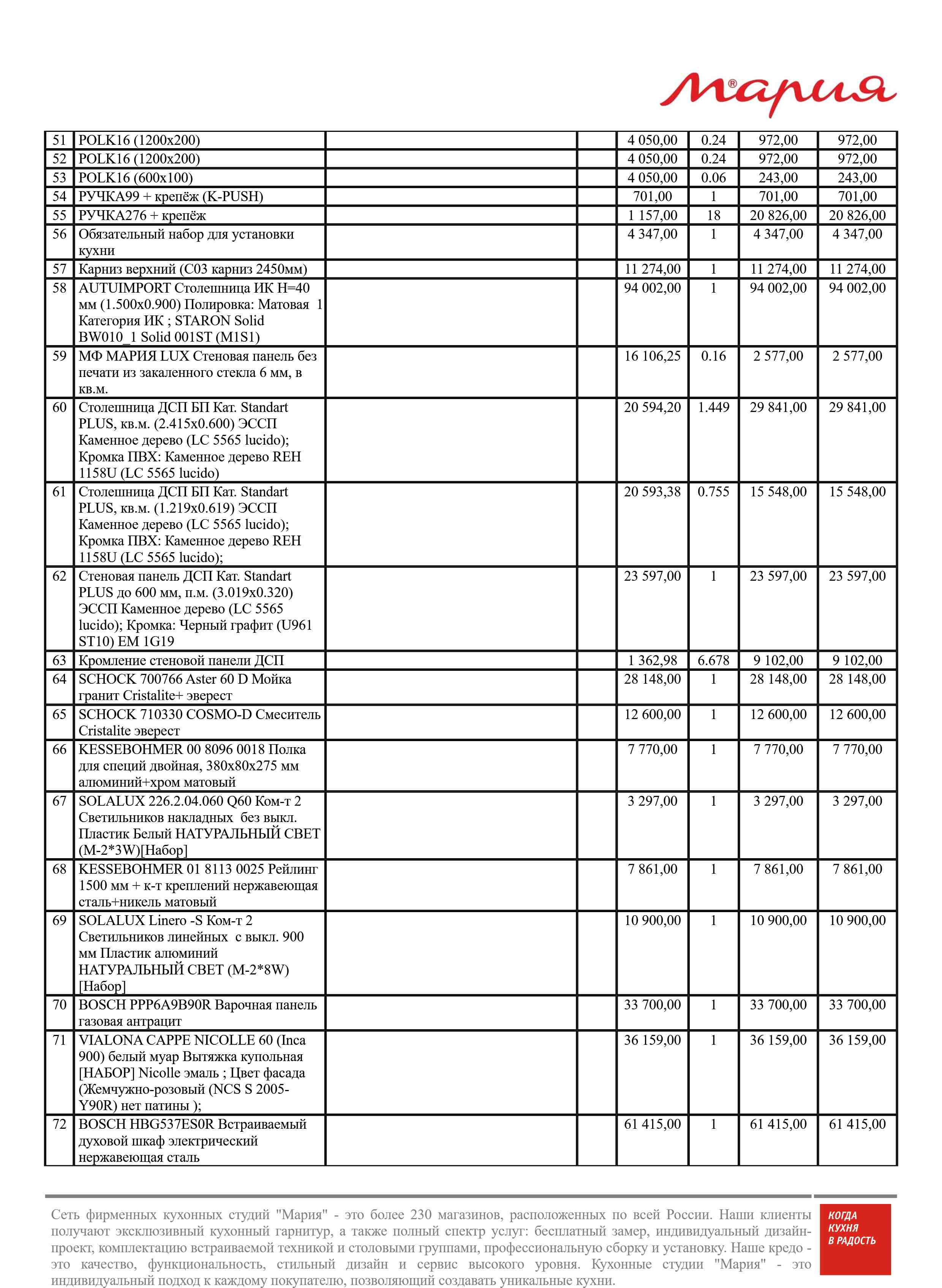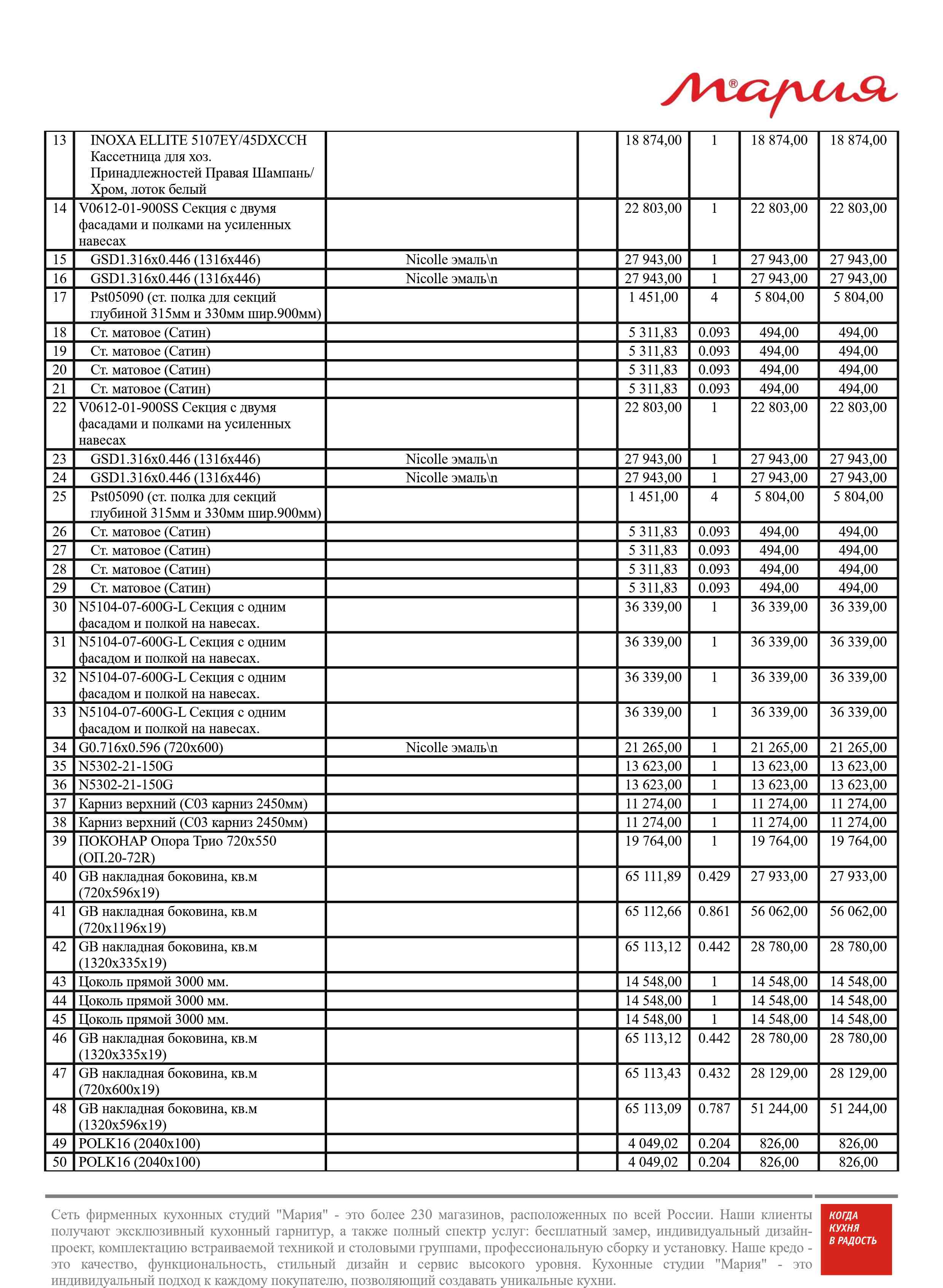 Стоимость данной кухни складывается из: