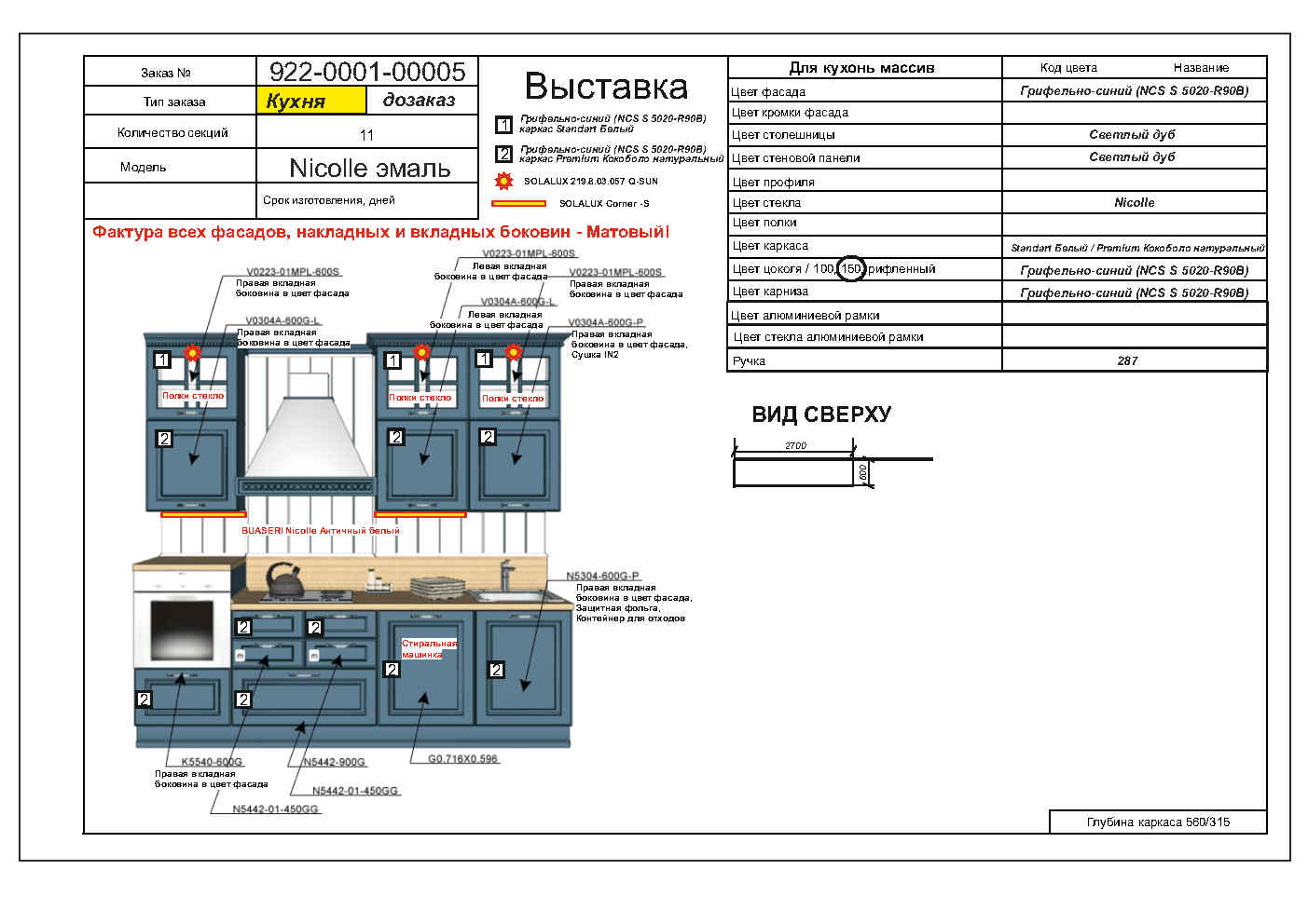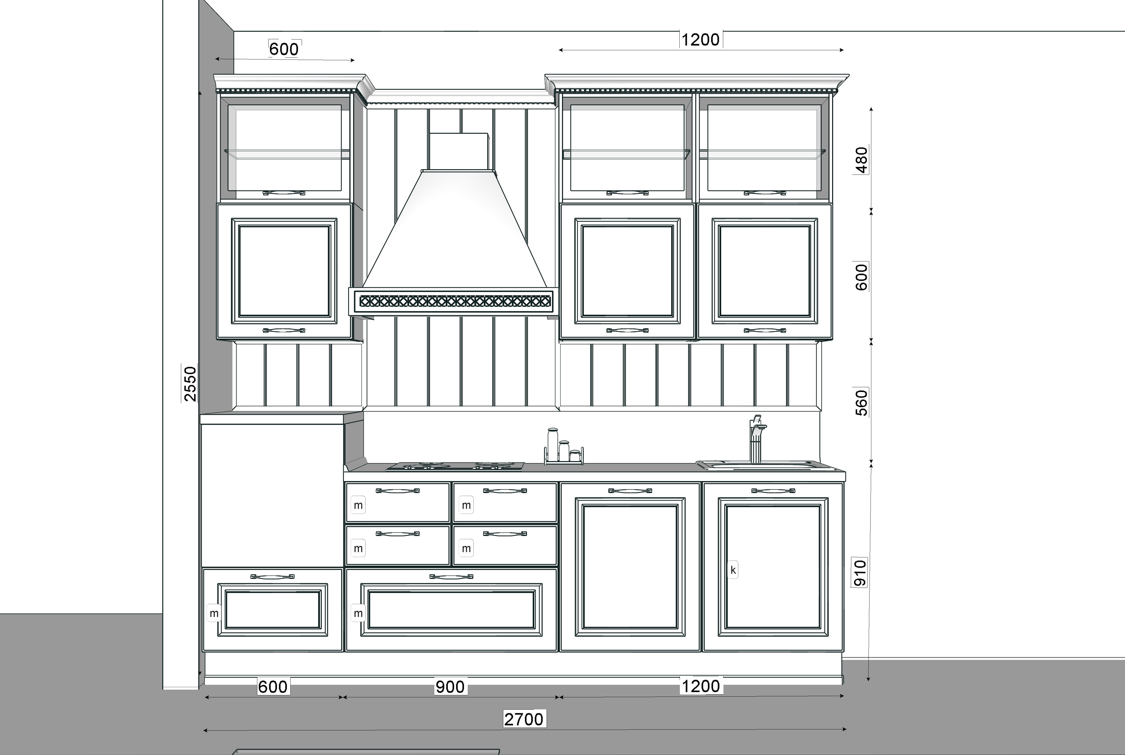 Высота Кухонного гарнитура - 2 550 мм + карниз