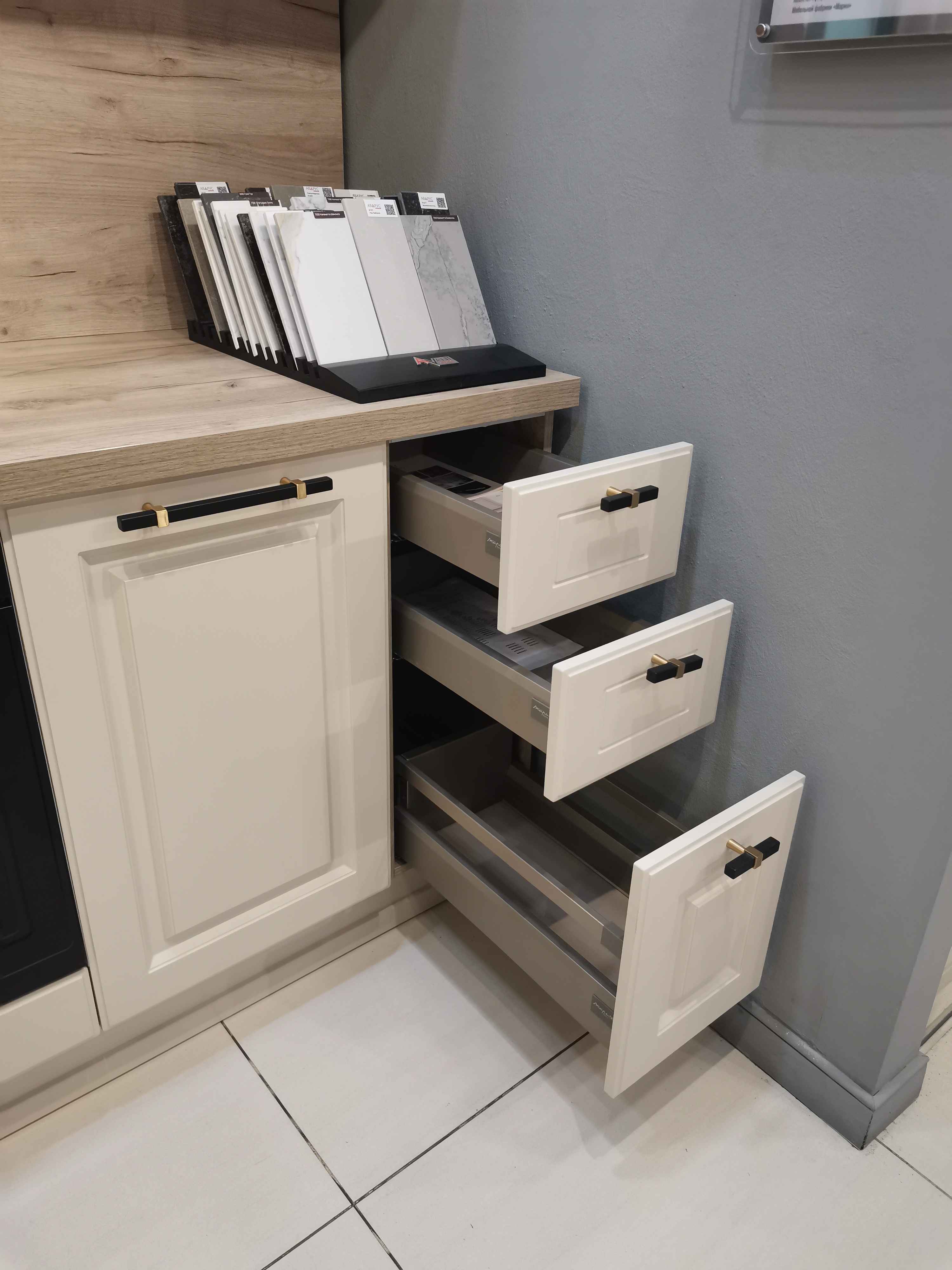 Термопластик обладает рядом преимуществ: большой выбор цветов и текстур, долговечность и прочность к механическим повреждениям, экологичность. Фасады изготавливаются путем облицовывания пластиком основы из МДФ методом вакуумного прессования.Фасады, выполненные из МДФ 19 мм. Покрытие: матовая эмаль, дополнительное покрытие: глянец, мат. Внутренняя сторона матовая, в цвет фасада. Фасады могут патинироваться.