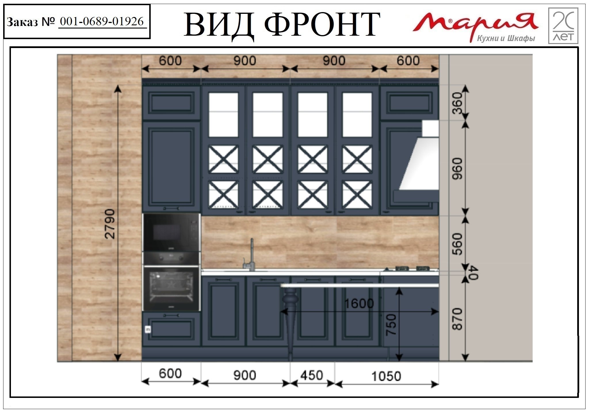 Размер Кухни слева направо: 3000/2450/1600 мм.