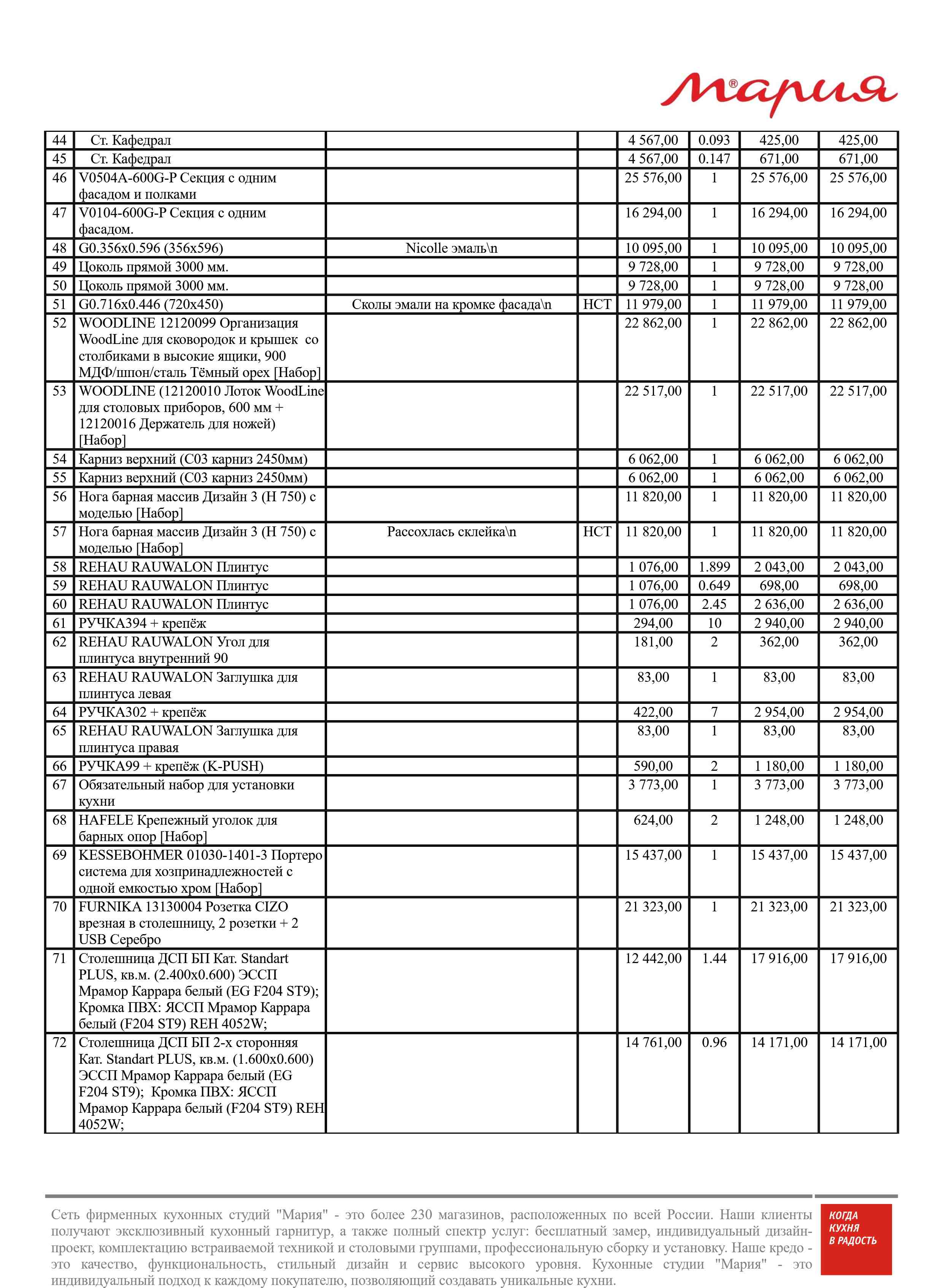 Стоимость данной кухни складывается из: