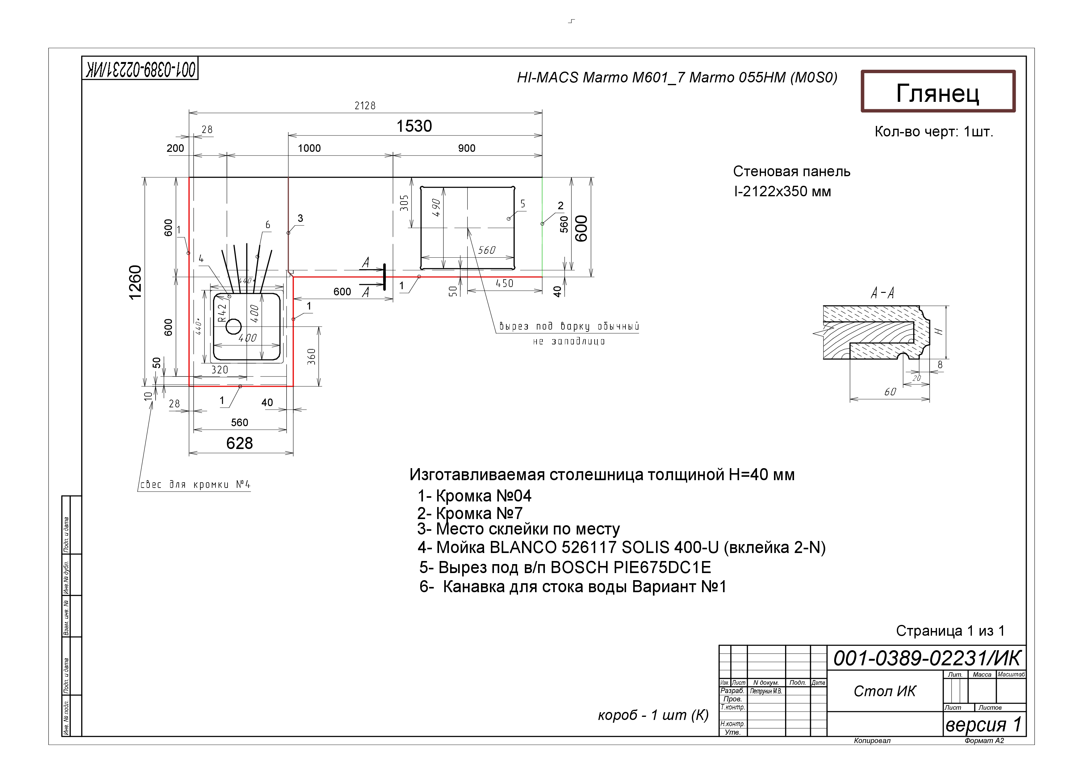 - Столешница и стеновая панель из искусственного камня "HI-MACS"