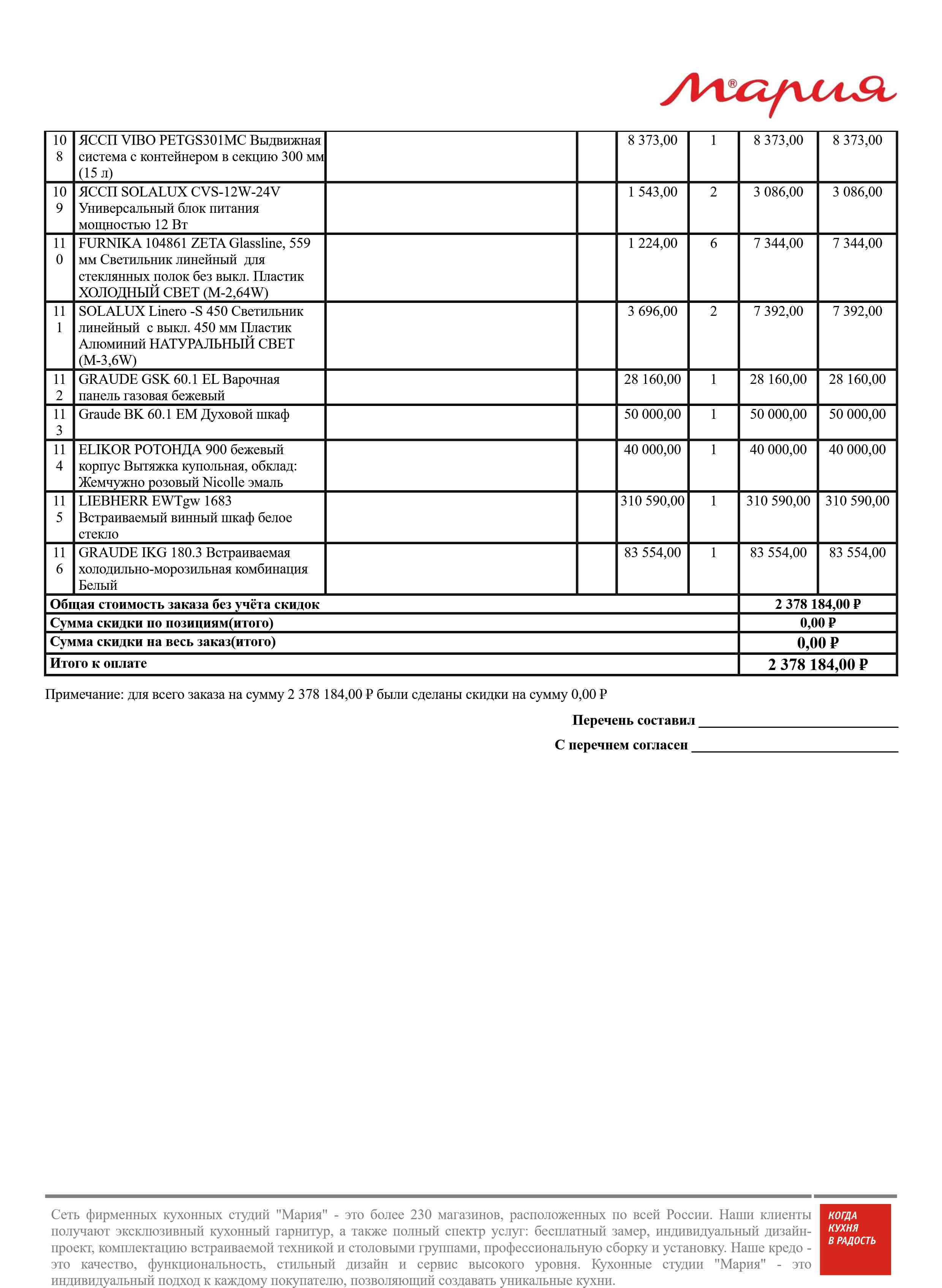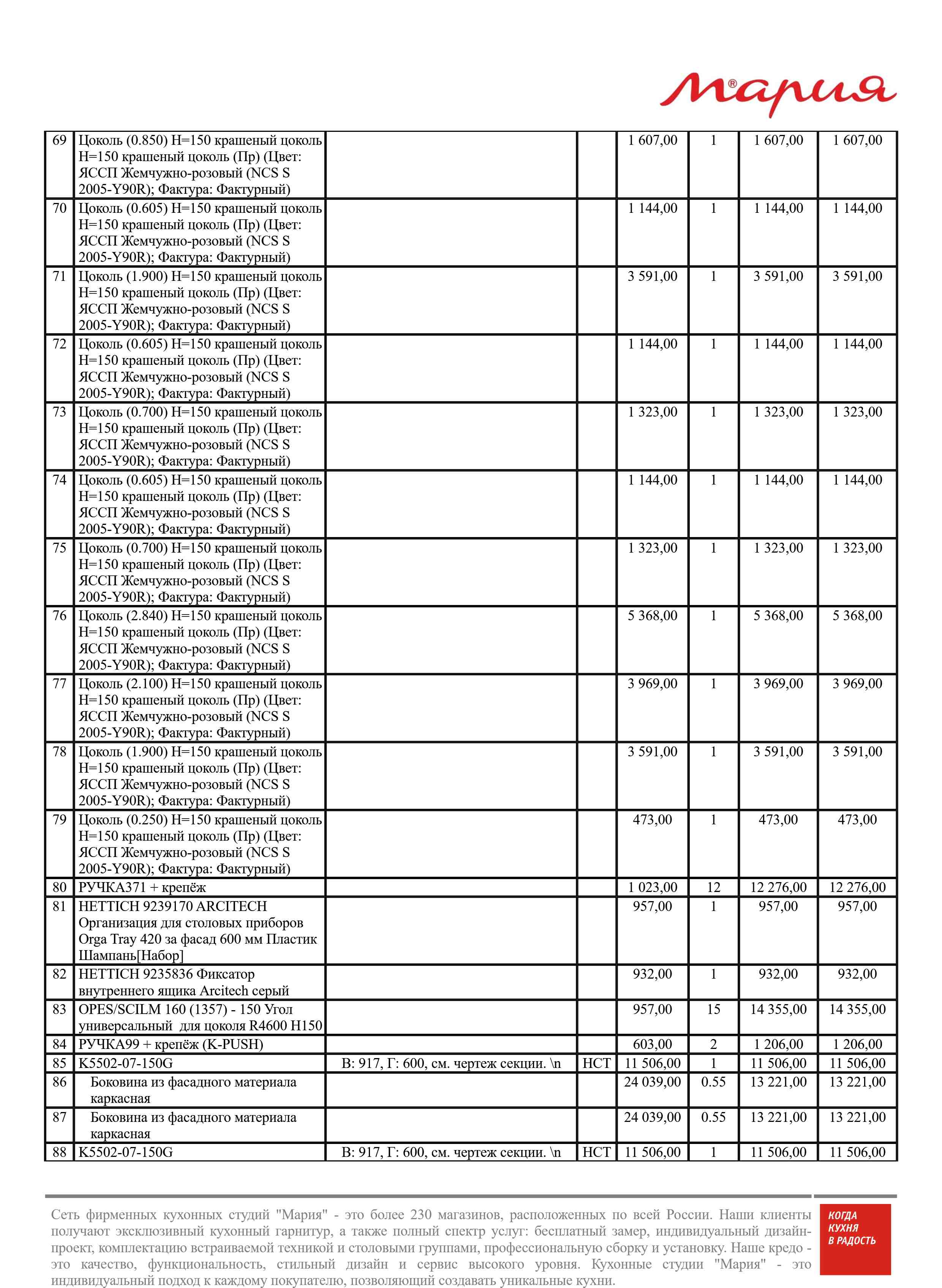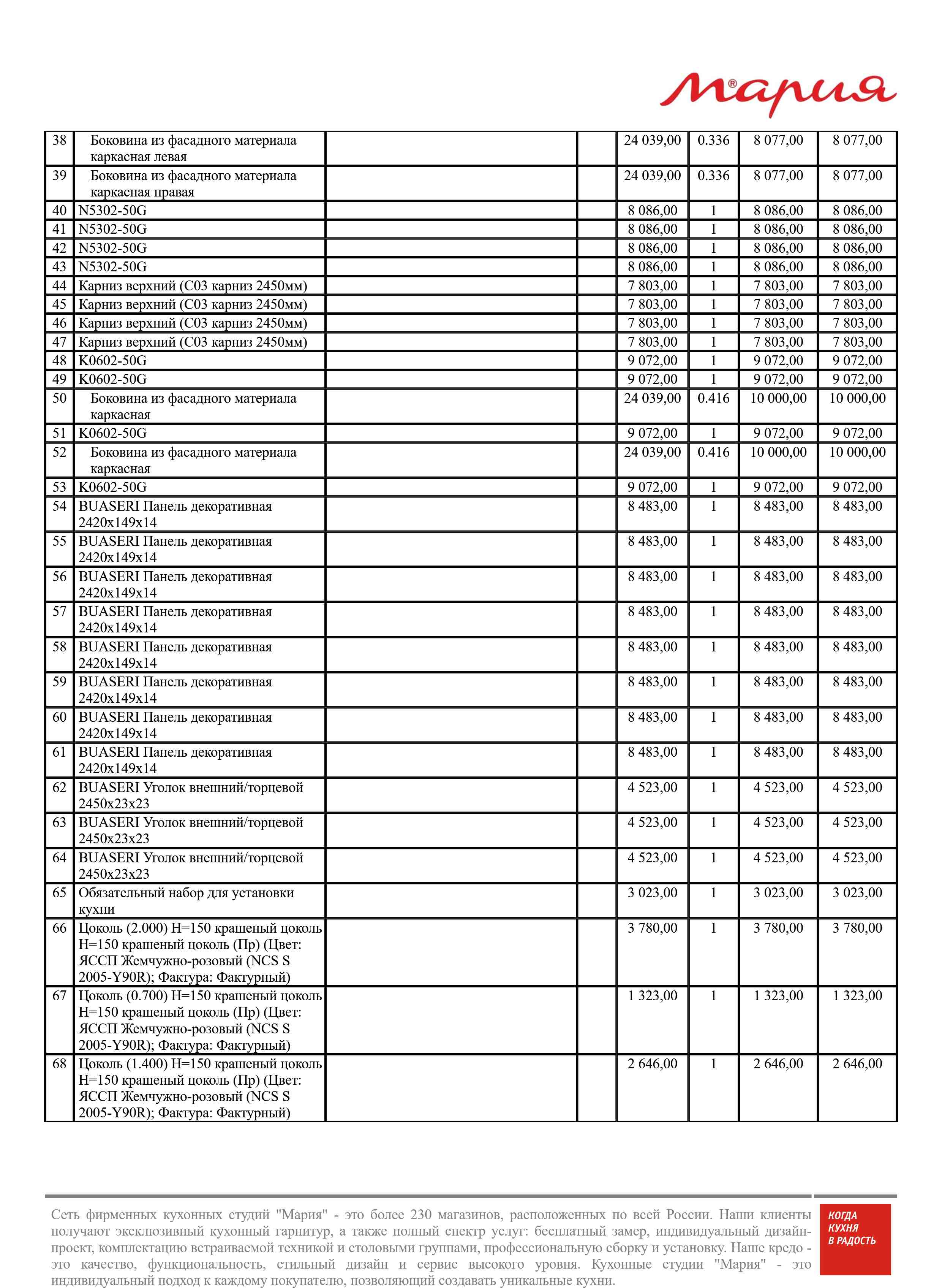 Стоимость данной кухни складывается из: