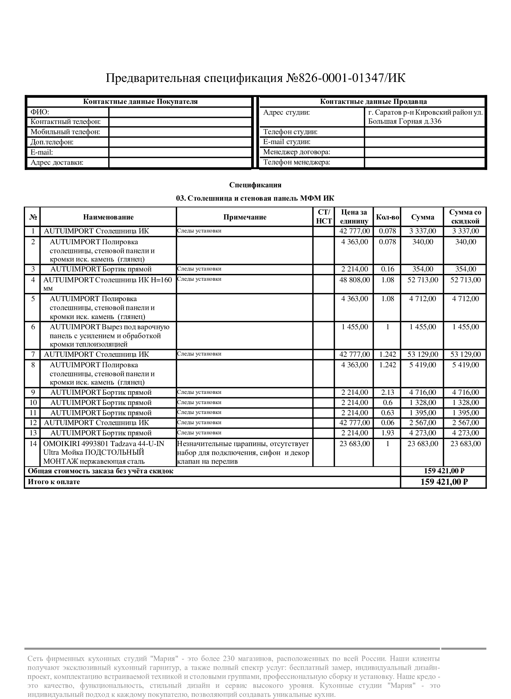 Стоимость данной кухни складывается из: