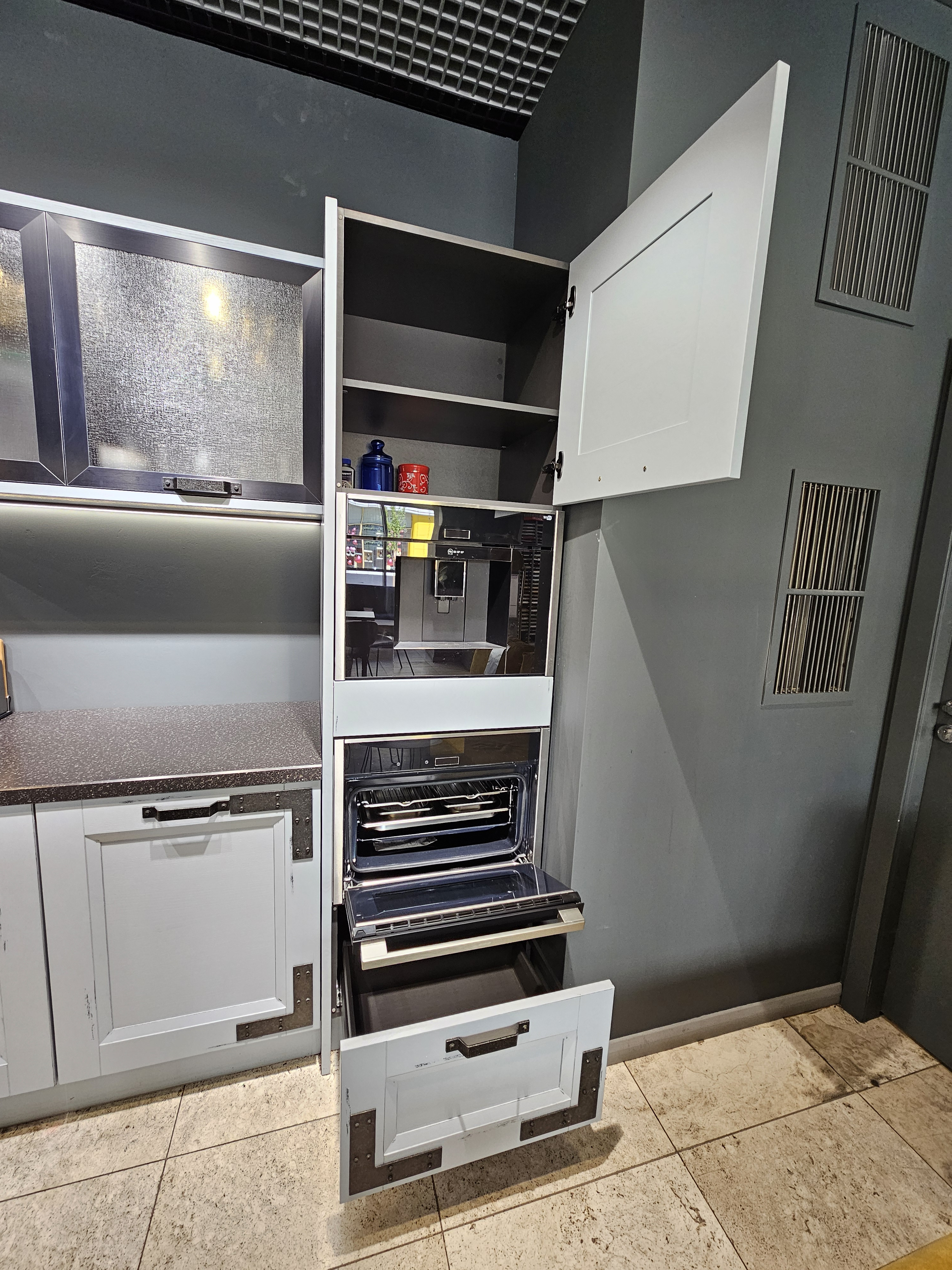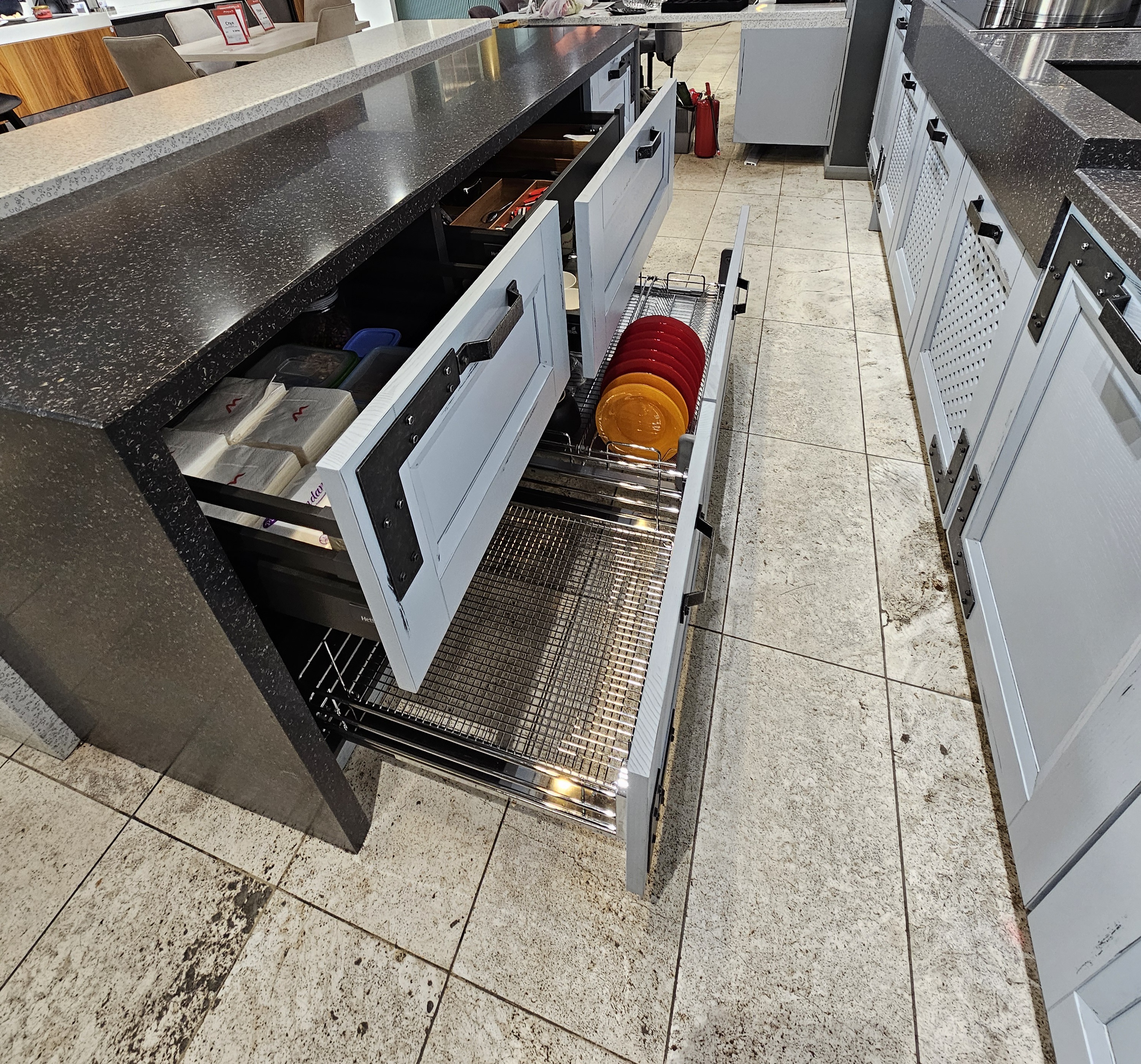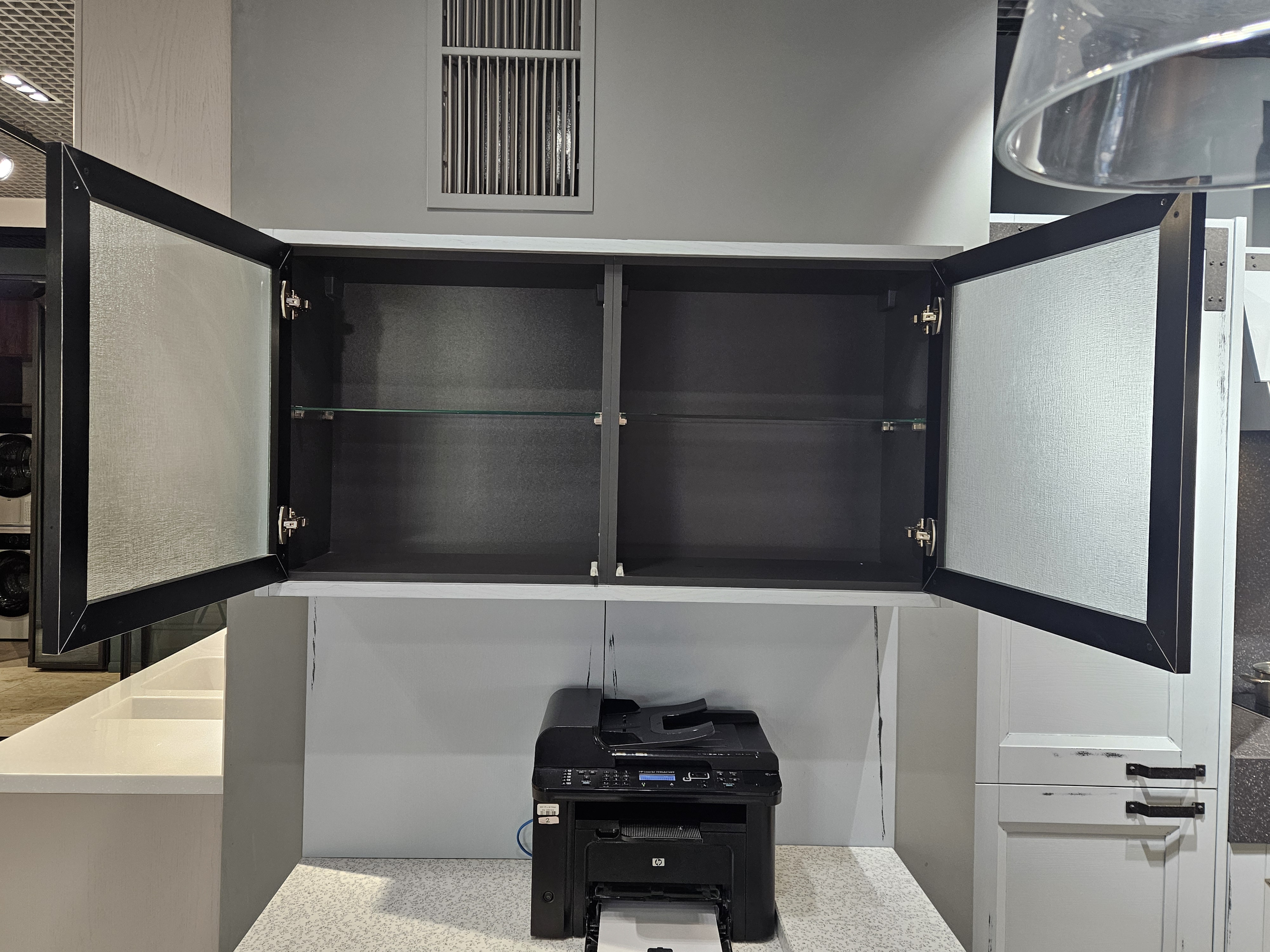 В модели используются шпонированные боковины, что придает модели законченный внешний вид и позволяет использовать большое количество стильных открытых модулей.