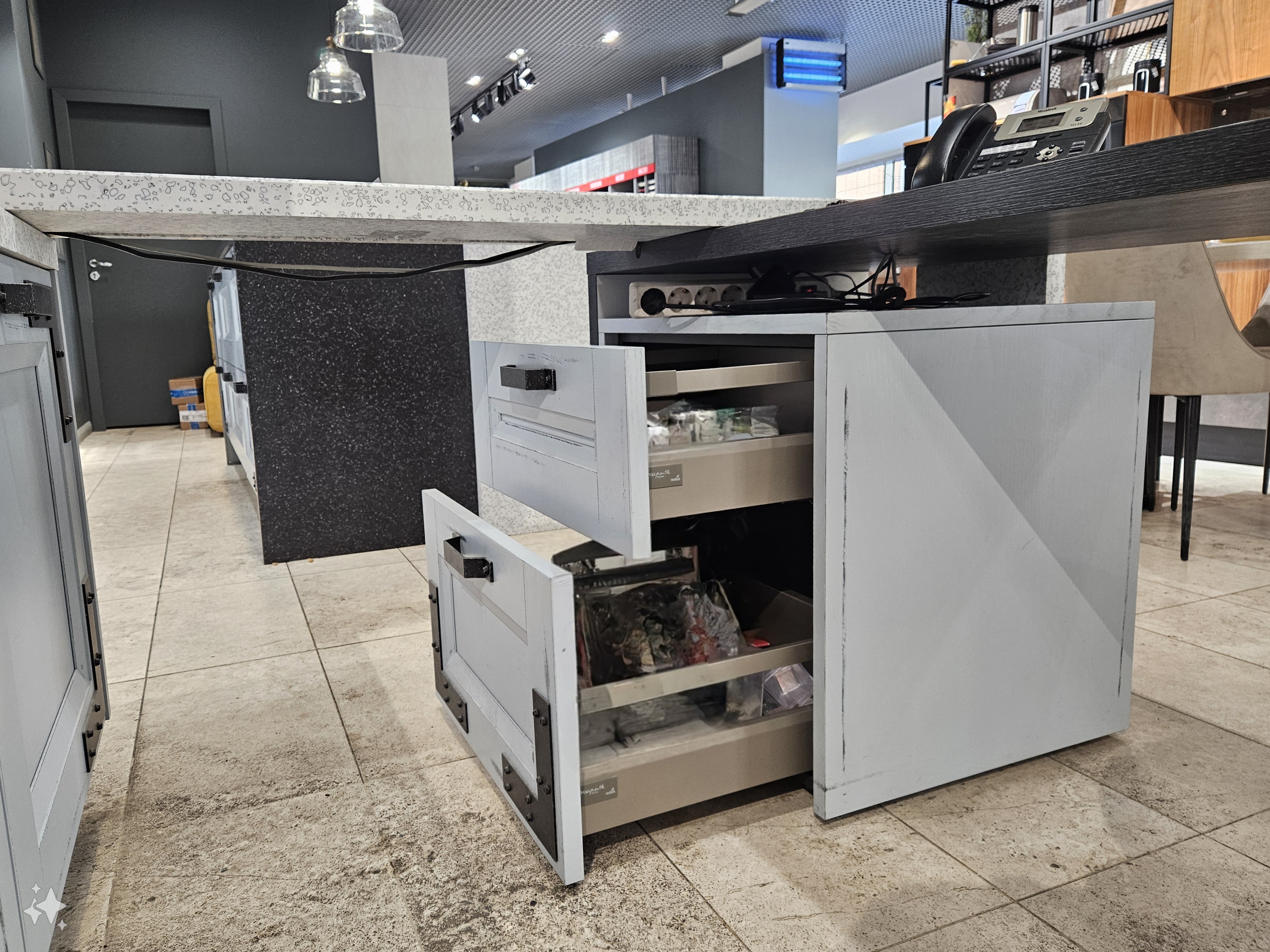 При покупке данного КГ, необходимо будет оформить платный дозаказ комплекта для склейки столешницы из искусственного камня, через менеджера студии Мария (который свяжется с вами сразу после приобретения КГ).