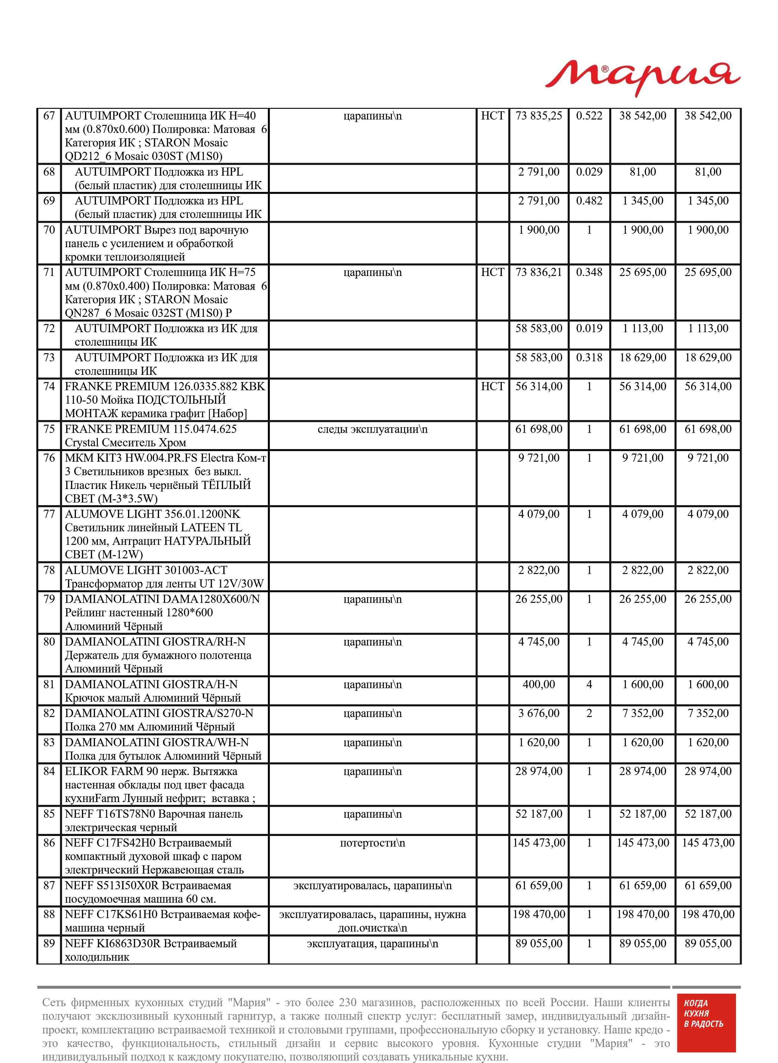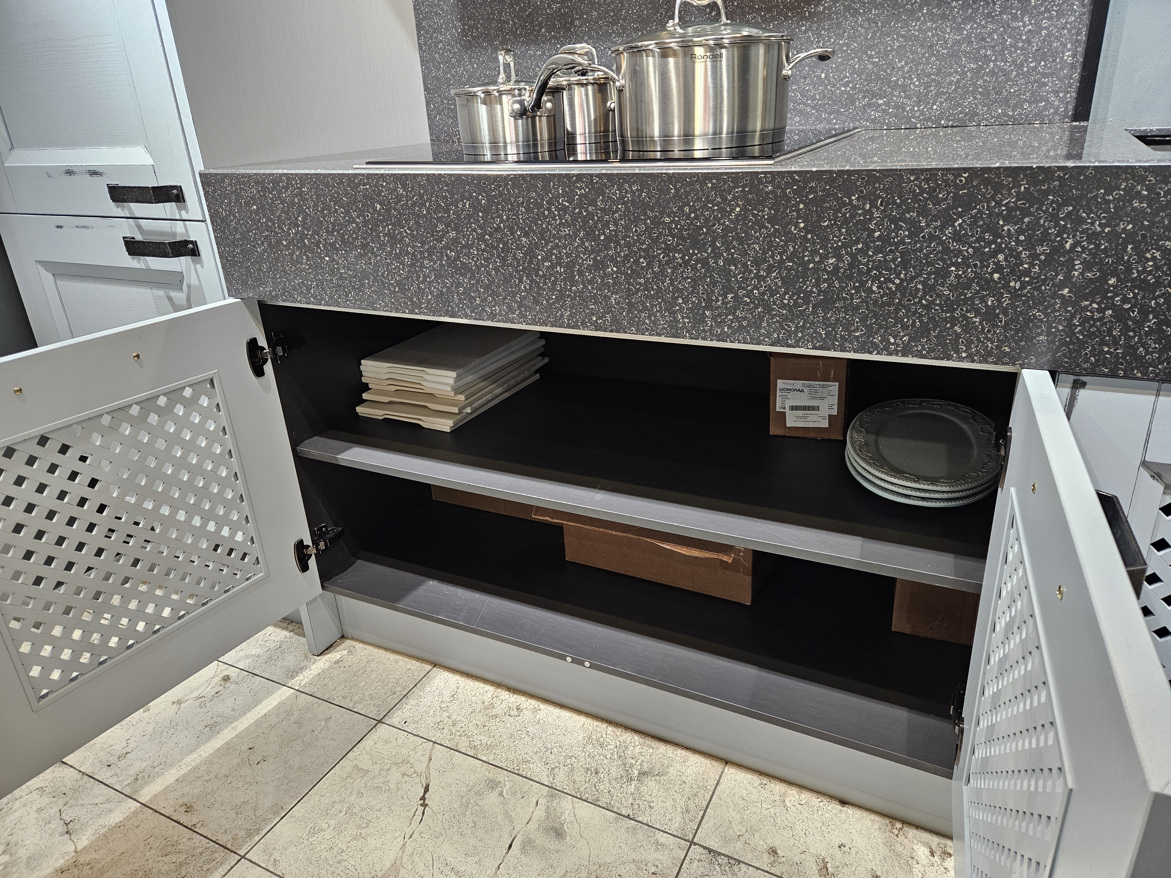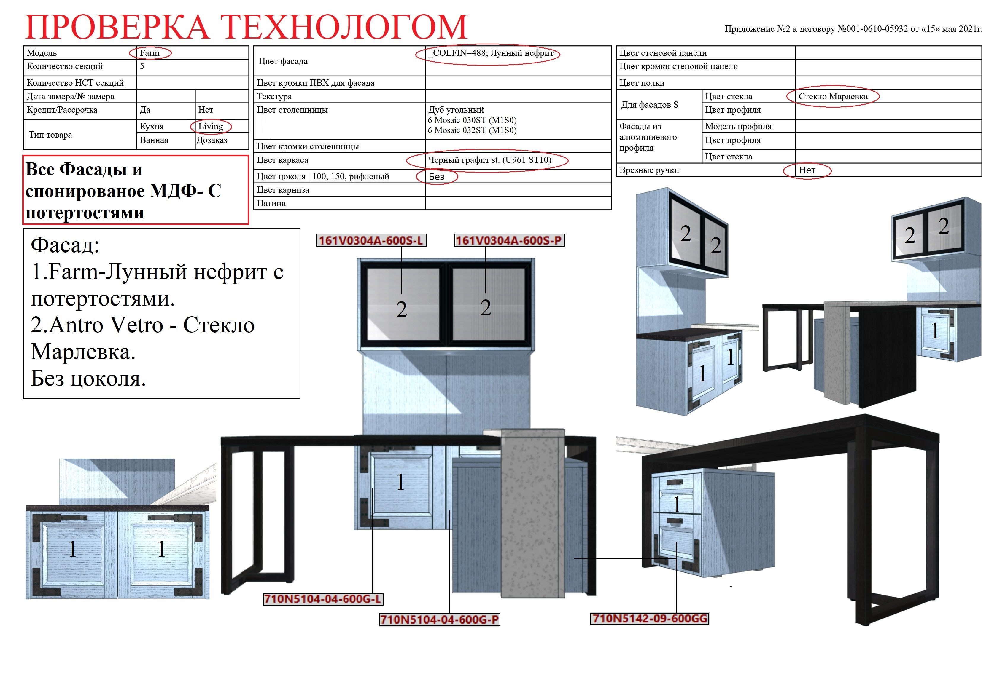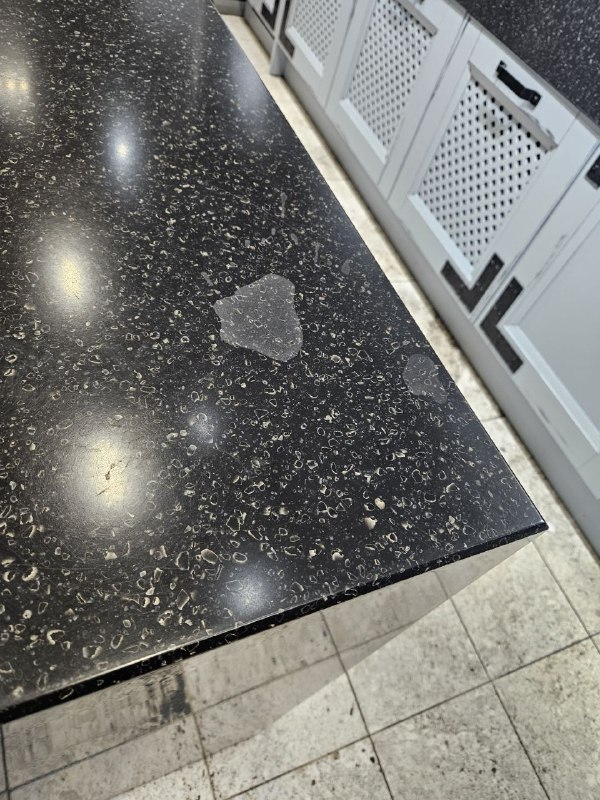 Внешний вид, описание дефектов: Потертости, сколы, царапины. Кухня в активной эксплуатации, подробные дефекты см. в спецификации. Стулья и аксессуары не входят в данный комплект кухонного гарнитура. На столешнице пятна от химии (см. фото).