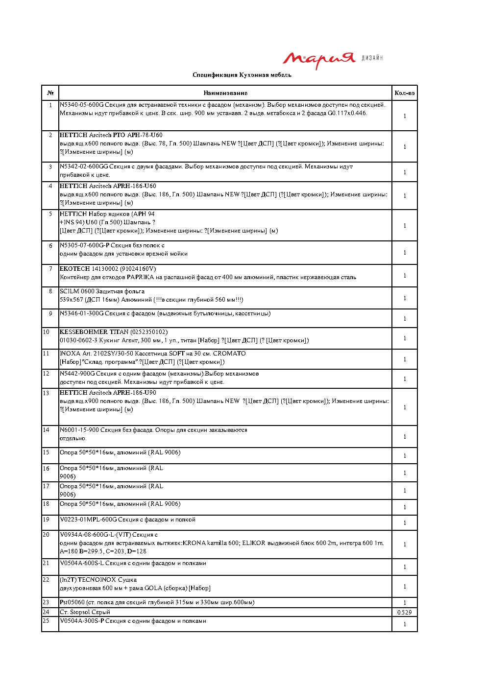 Более подробная спецификация кухни - в характеристиках товара.