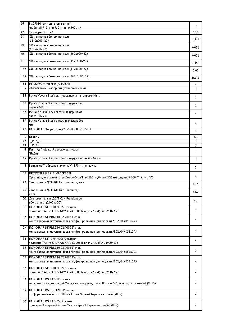 - секции, фасады, комплектующие
