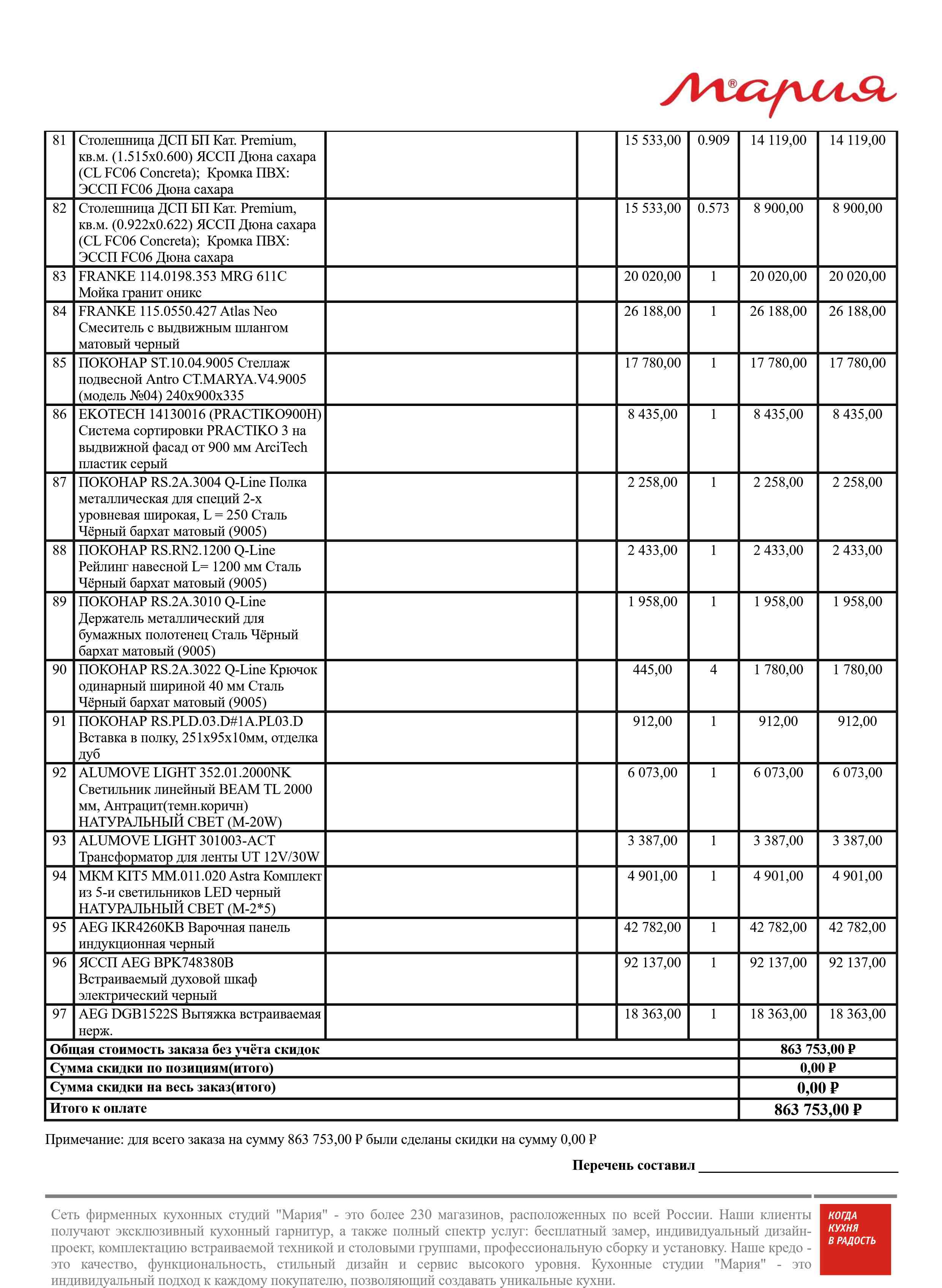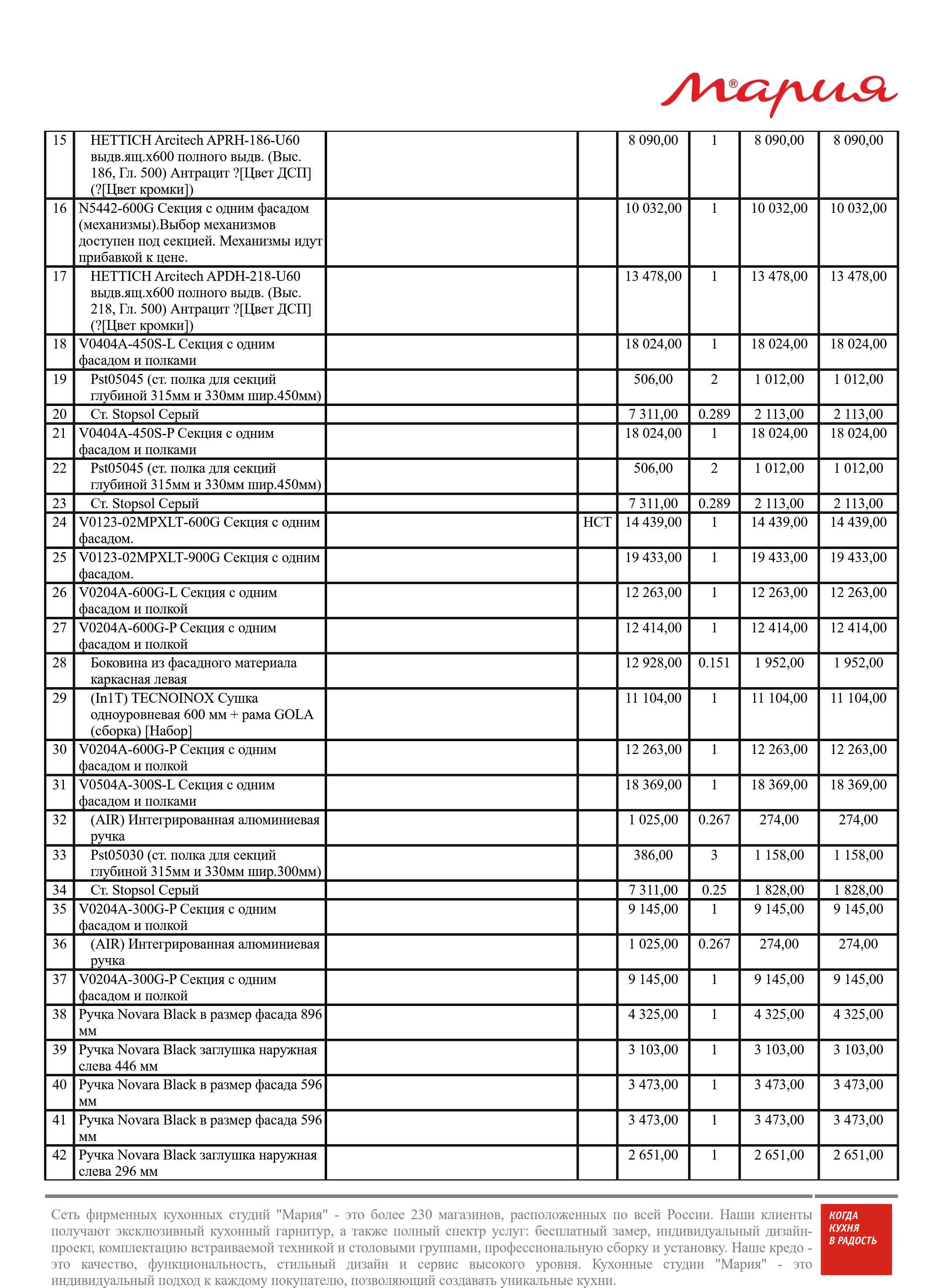 Стоимость данной кухни складывается из: