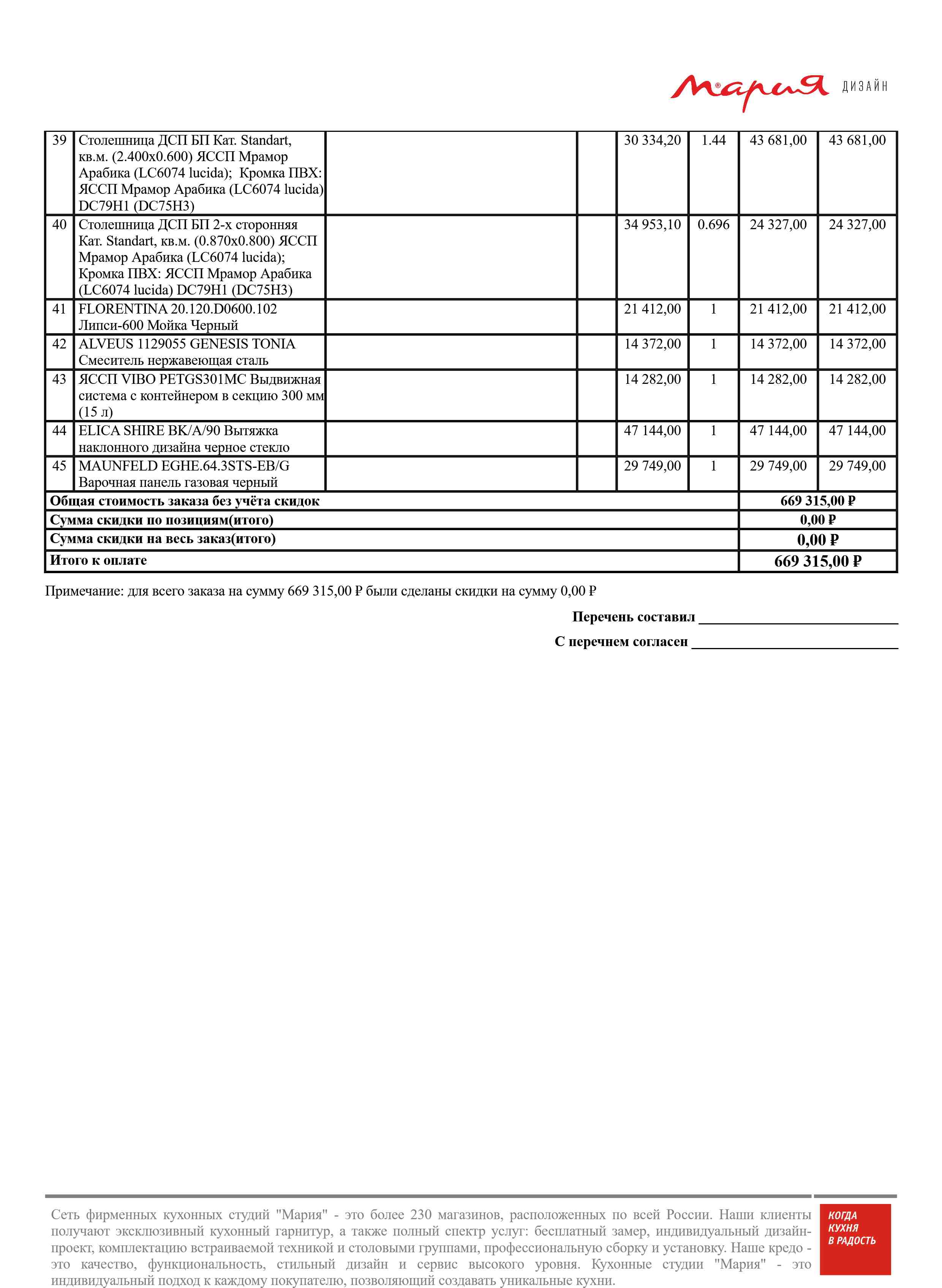 Стоимость данной кухни складывается из: