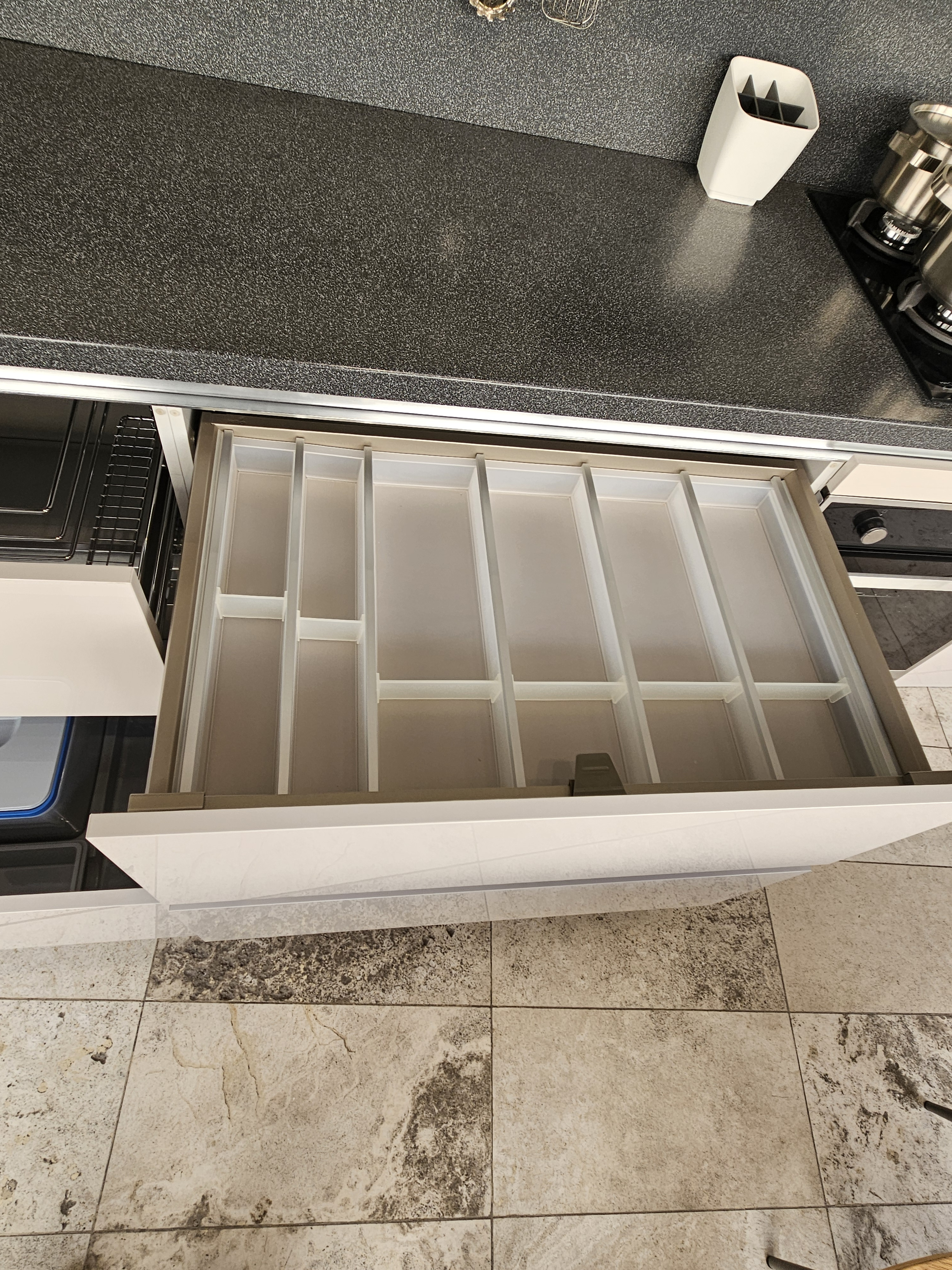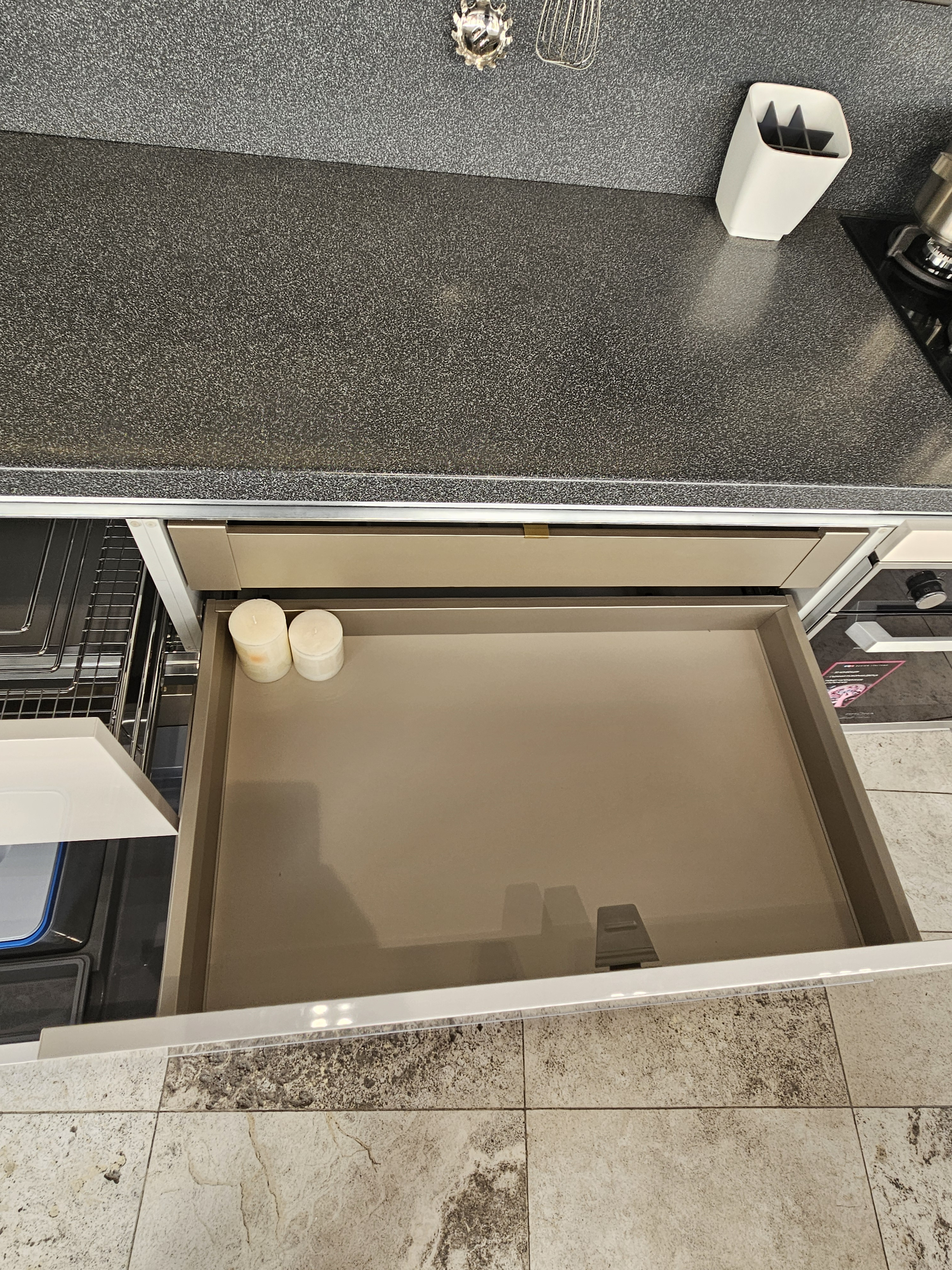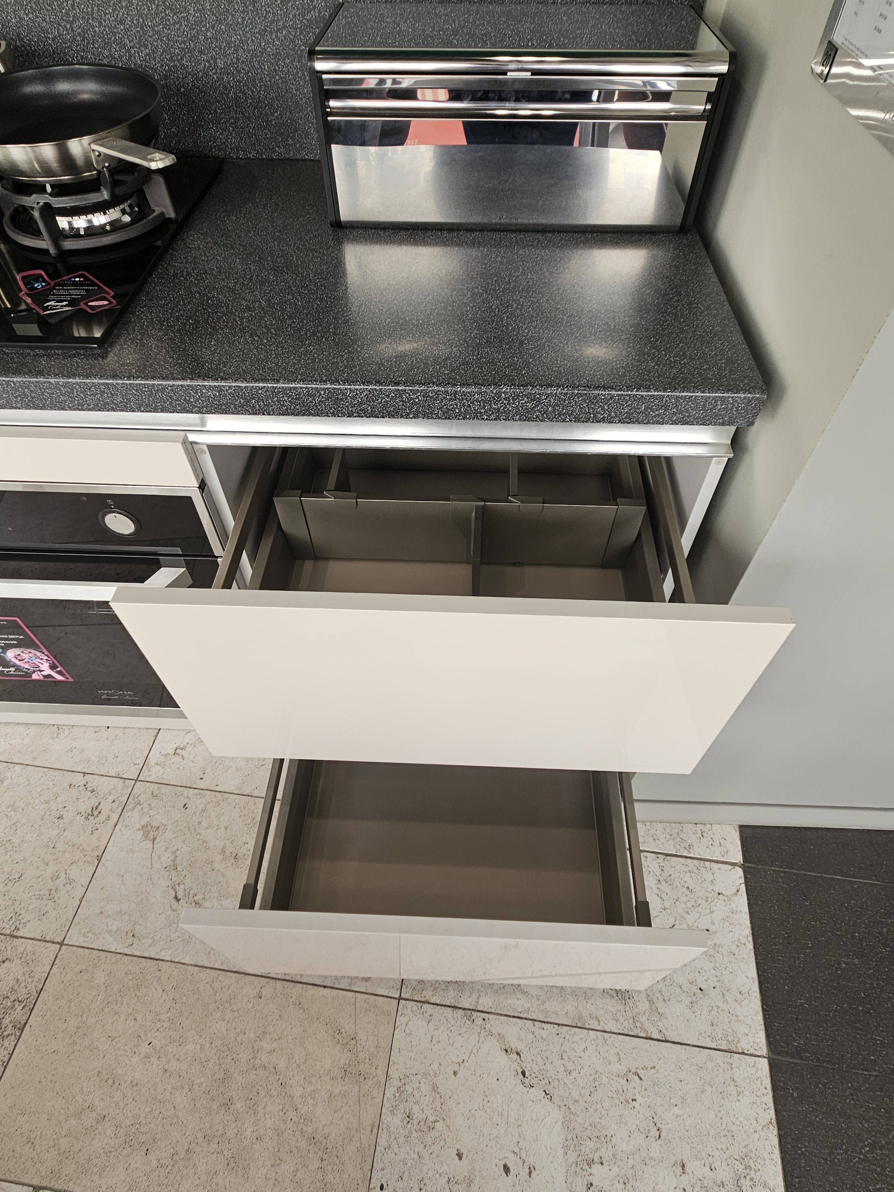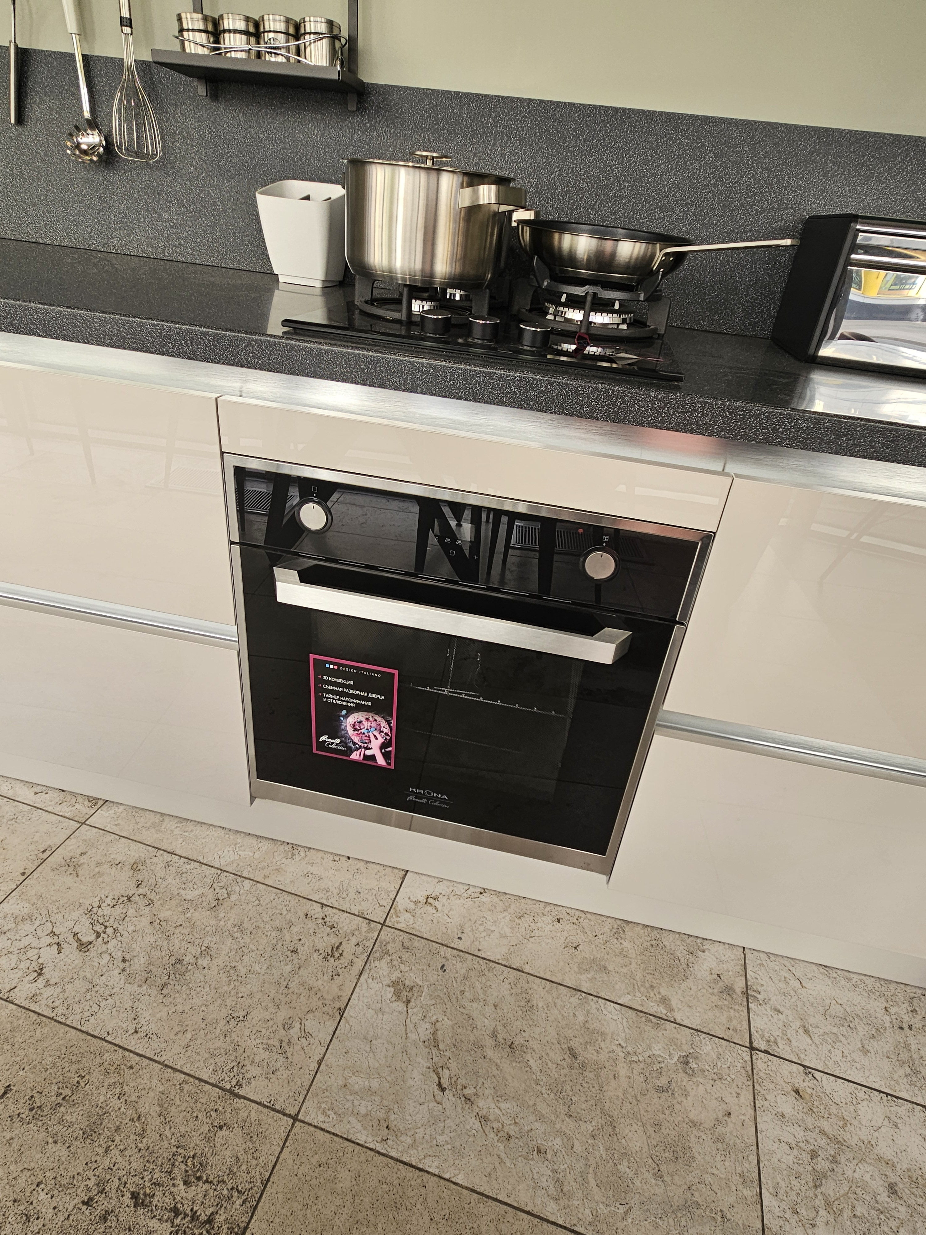 Внешний вид, описание дефектов: Незначительные потертости, сколы, царапины. На варочной панели отсутствует одна крышка конфорки. Аксессуары не входят в данный комплект кухонного гарнитура.