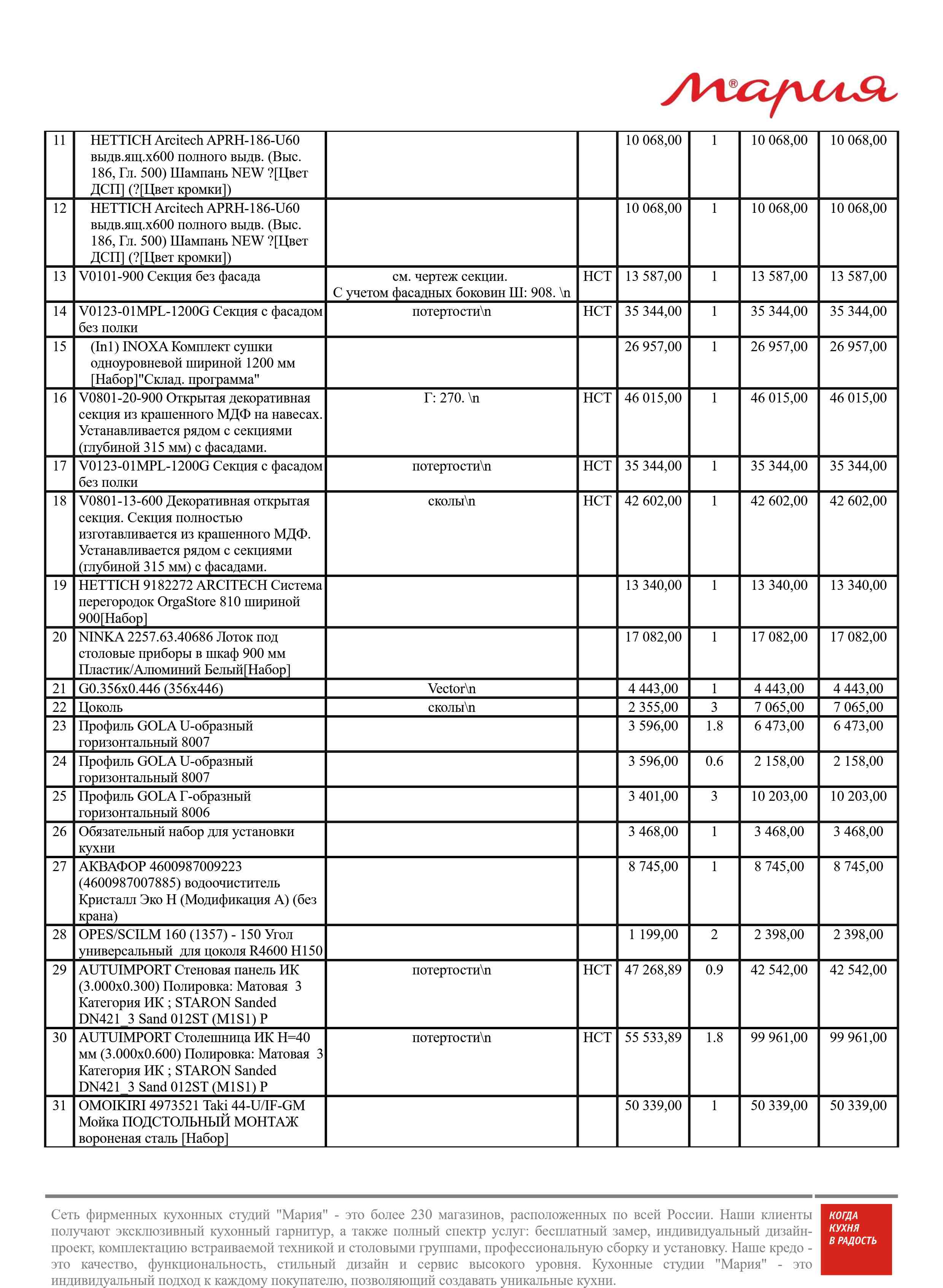 - секции, фасады, комплектующие – 307 864 р.