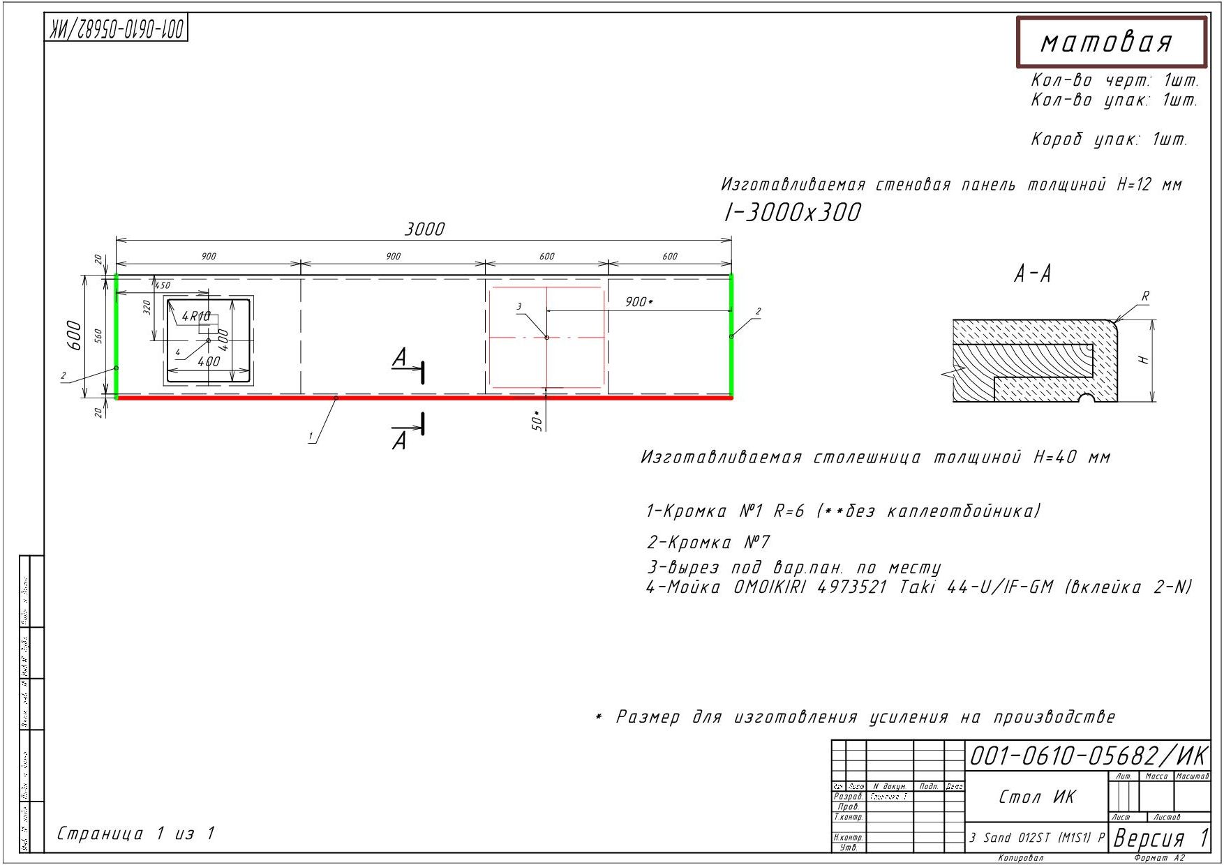 При покупке данного КГ, необходимо будет оформить платный дозаказ комплекта для склейки столешницы из искусственного камня, через менеджера студии Мария (который свяжется с вами сразу после приобретения КГ).