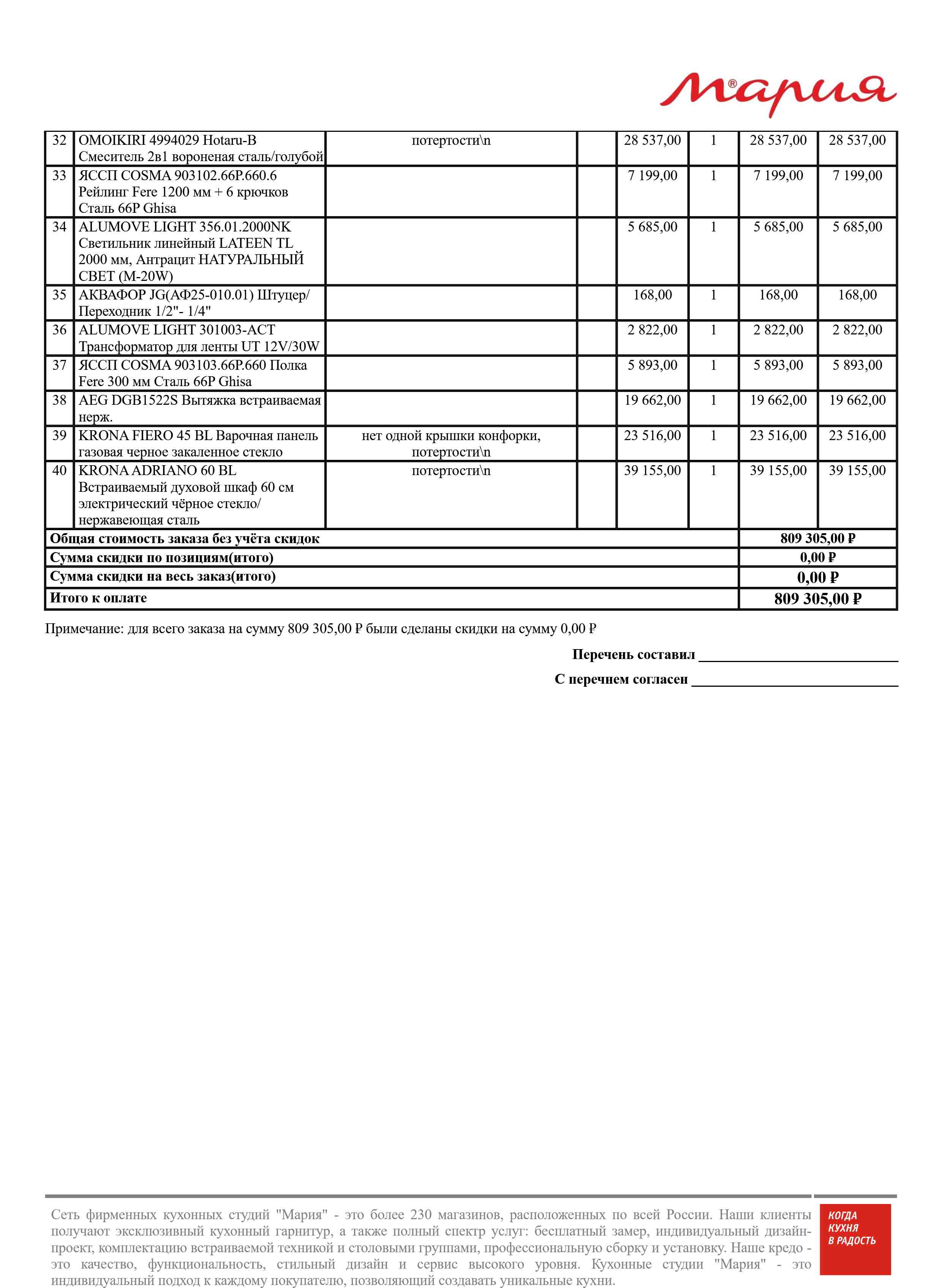 Стоимость данной кухни складывается из: